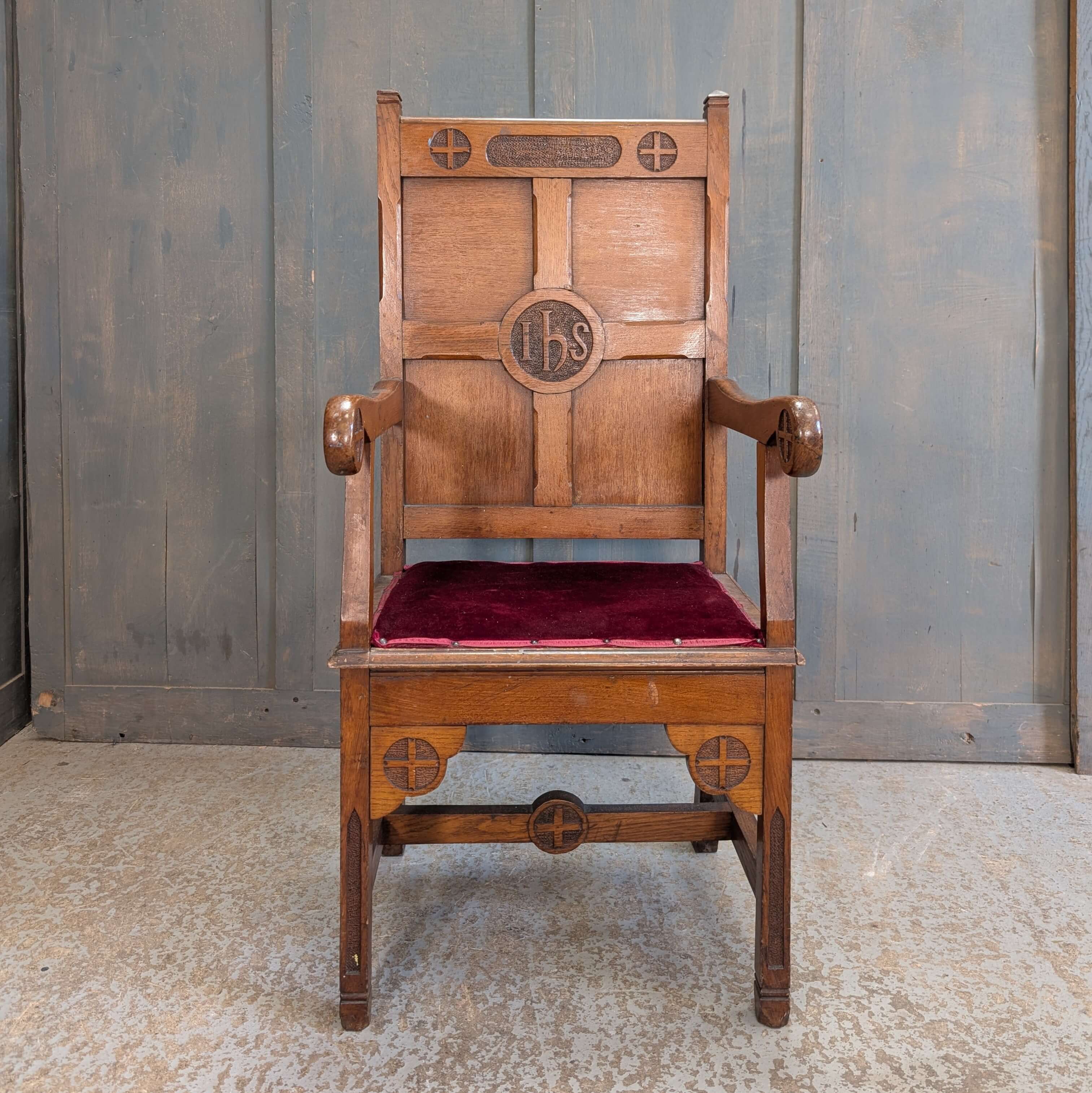 Our product shown on this page IHS 1910’s Antique Oak Gothic Clergy Armchair from St Andrew’s Liverpool is currently available for hire.