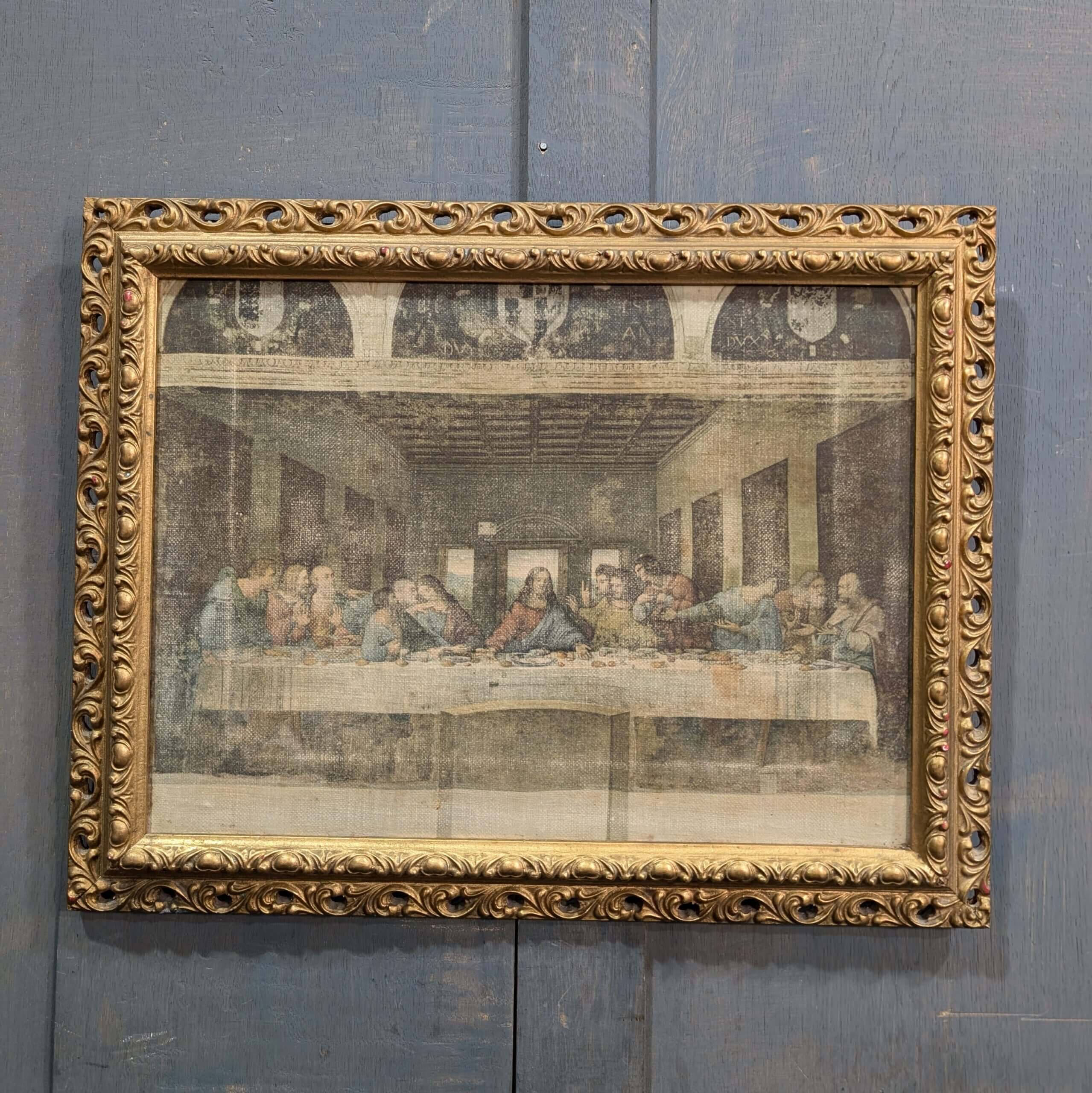 Our product shown on this page Interesting Gold Framed Faded Vintage Last Supper printed on Coarse Grain Linen (SOLD) is currently available for hire.