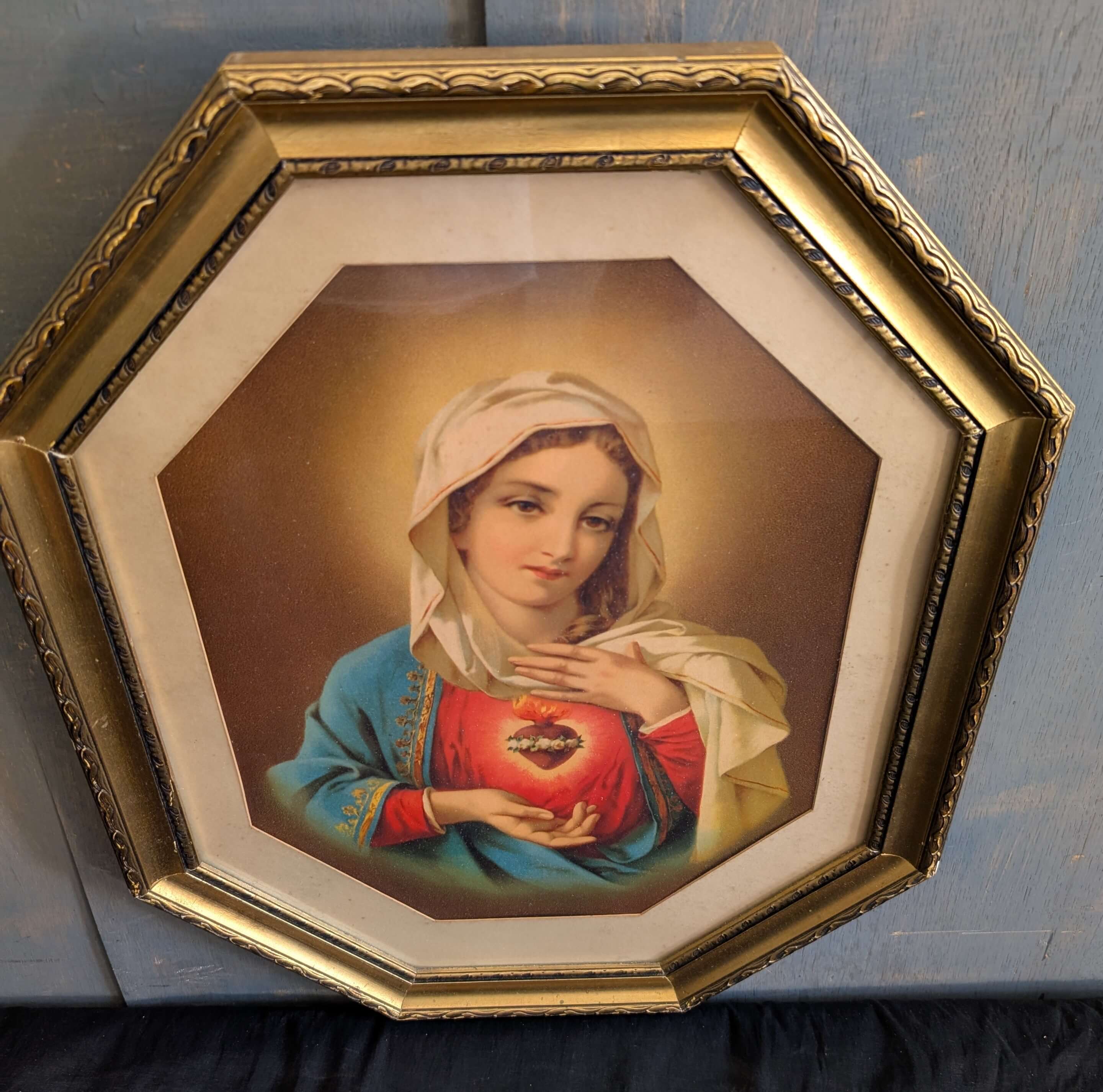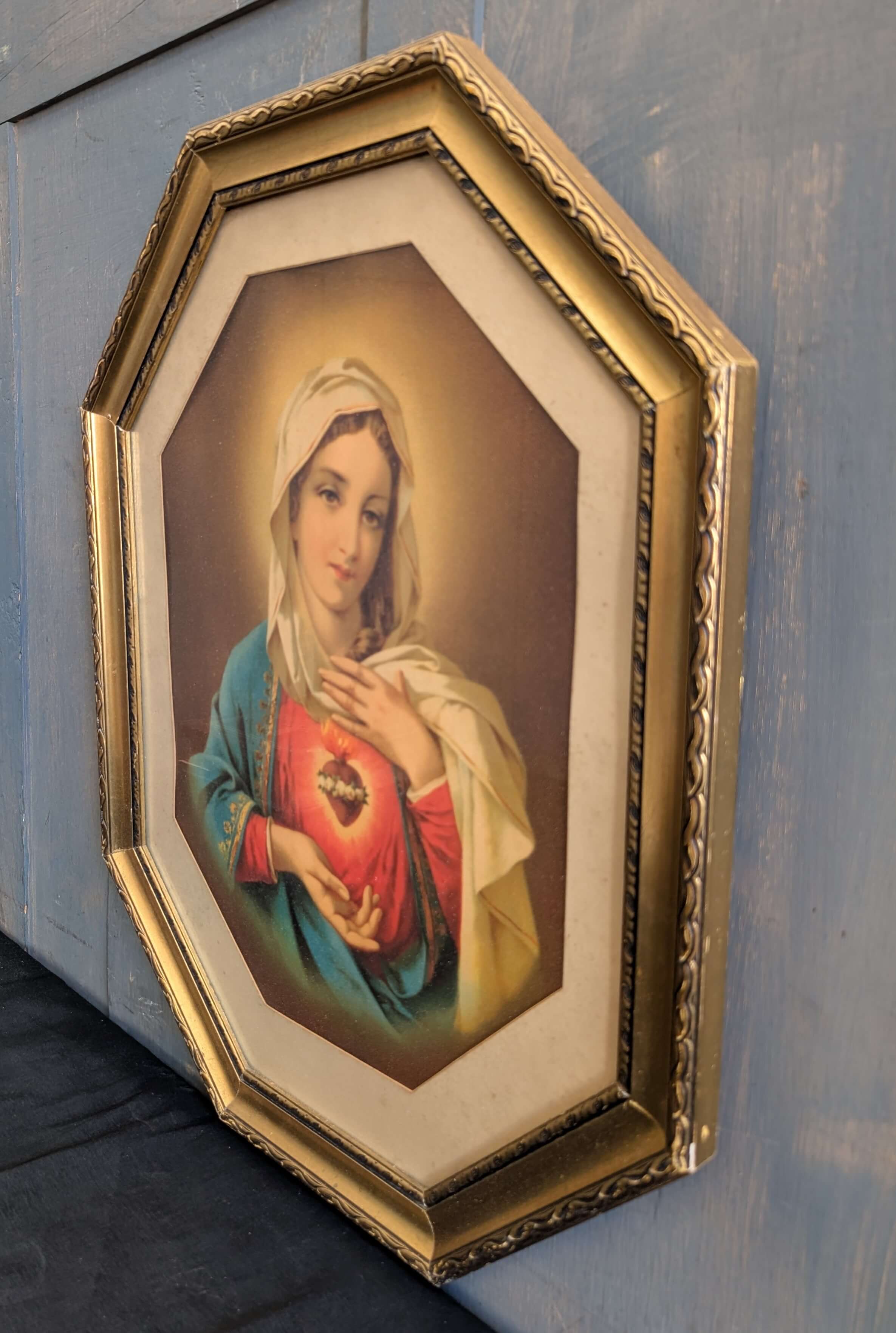 Our product shown on this page Italian Octagonal Gold Framed Colour Print of the Immaculate Heart of Mary (SOLD) is currently available for hire.
