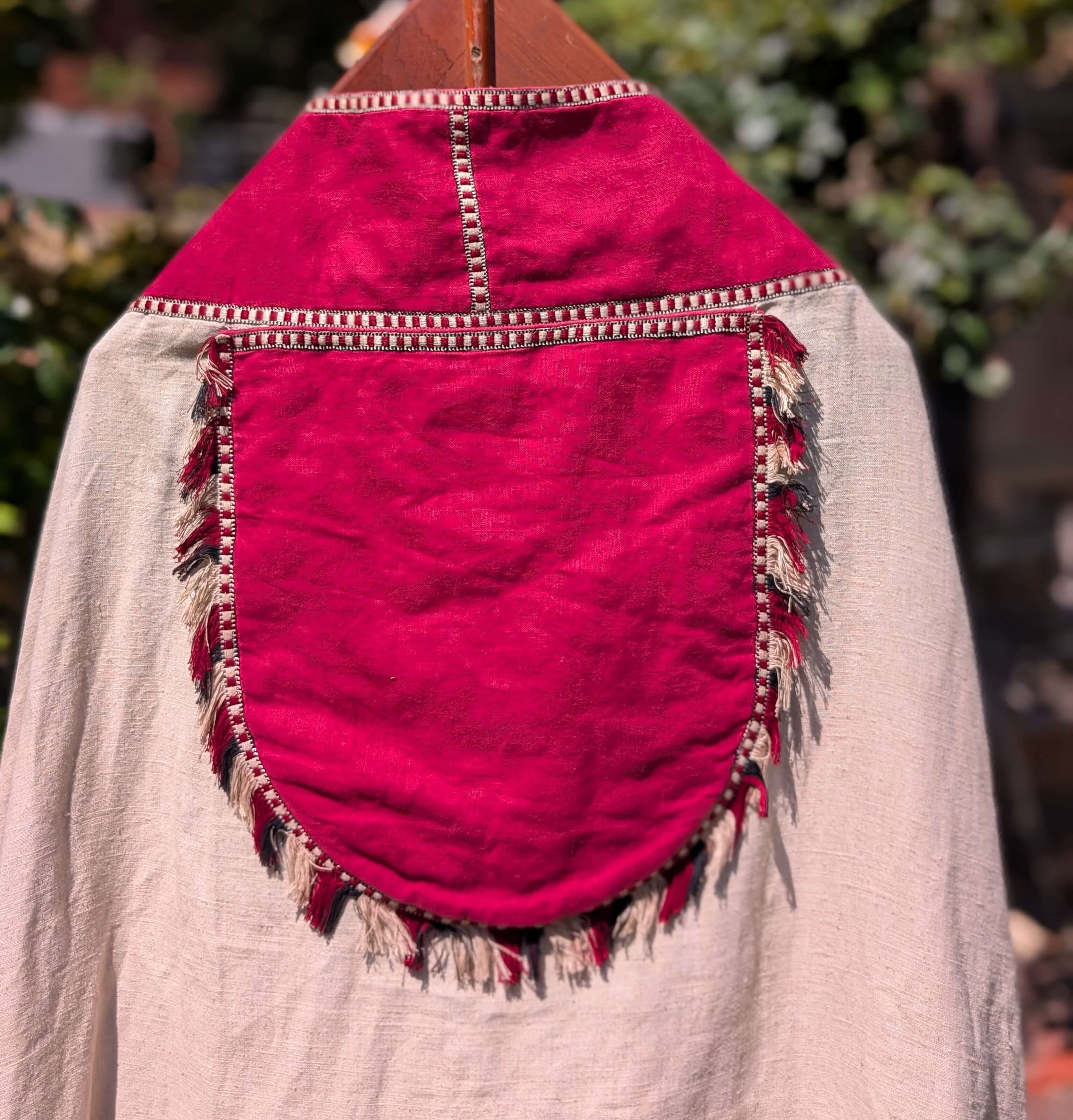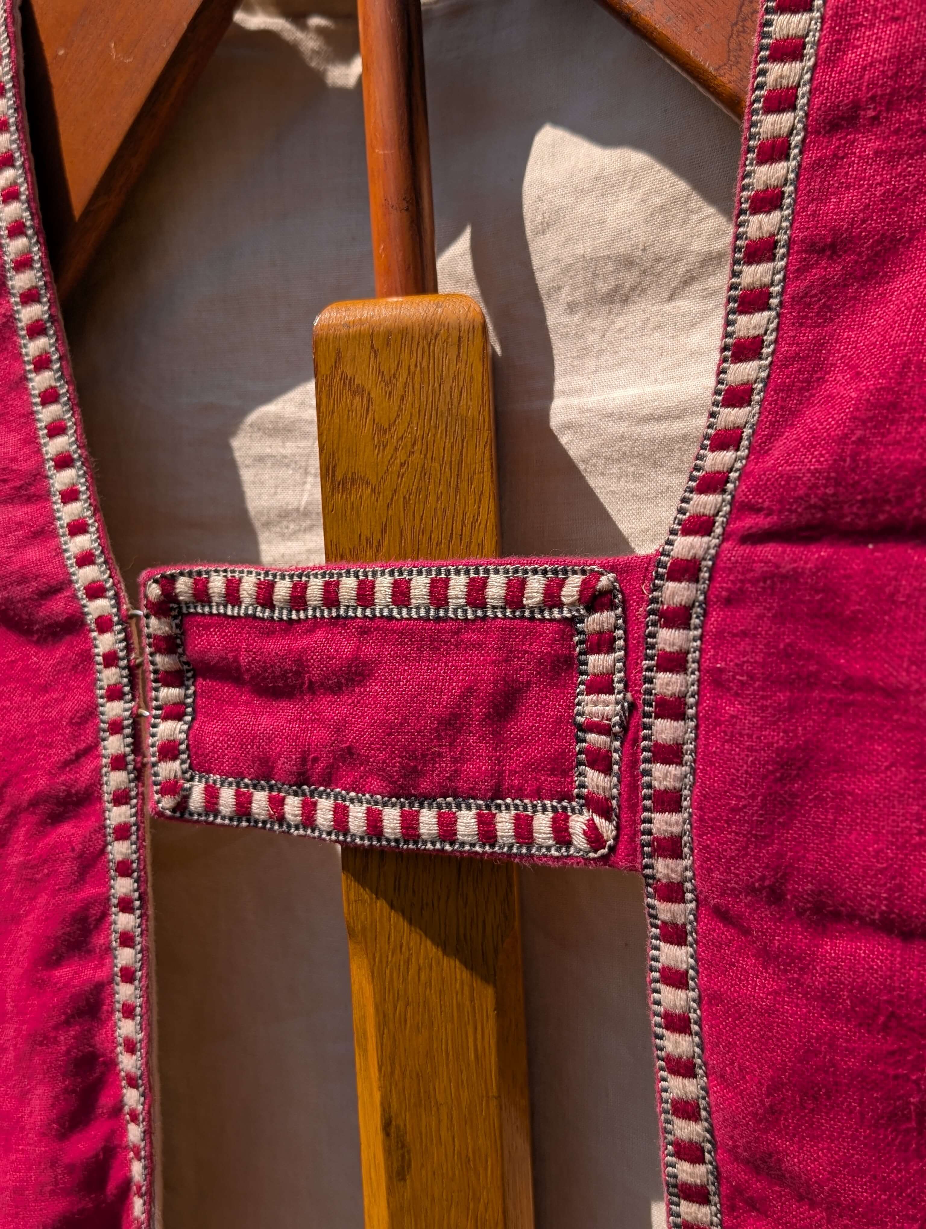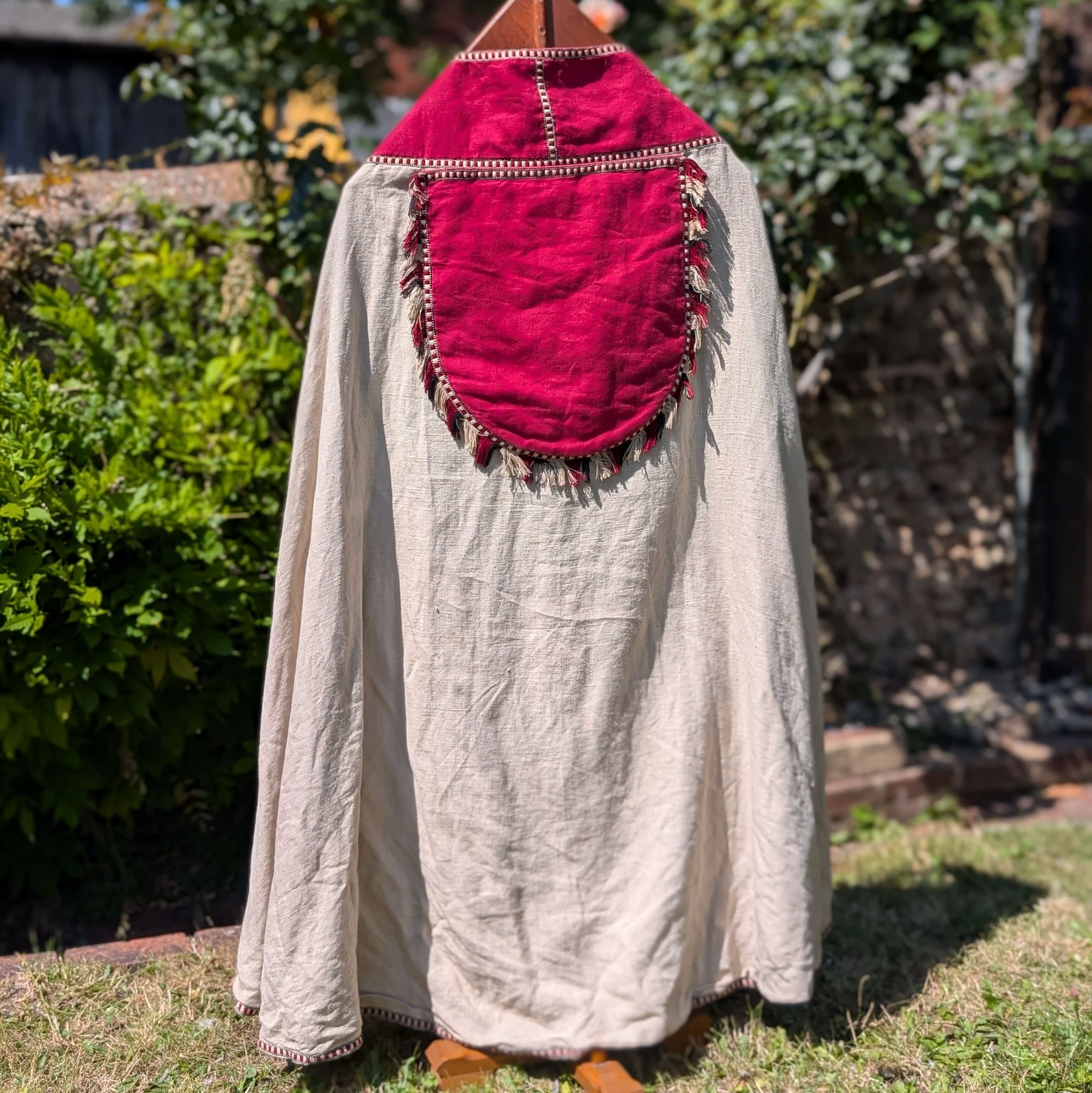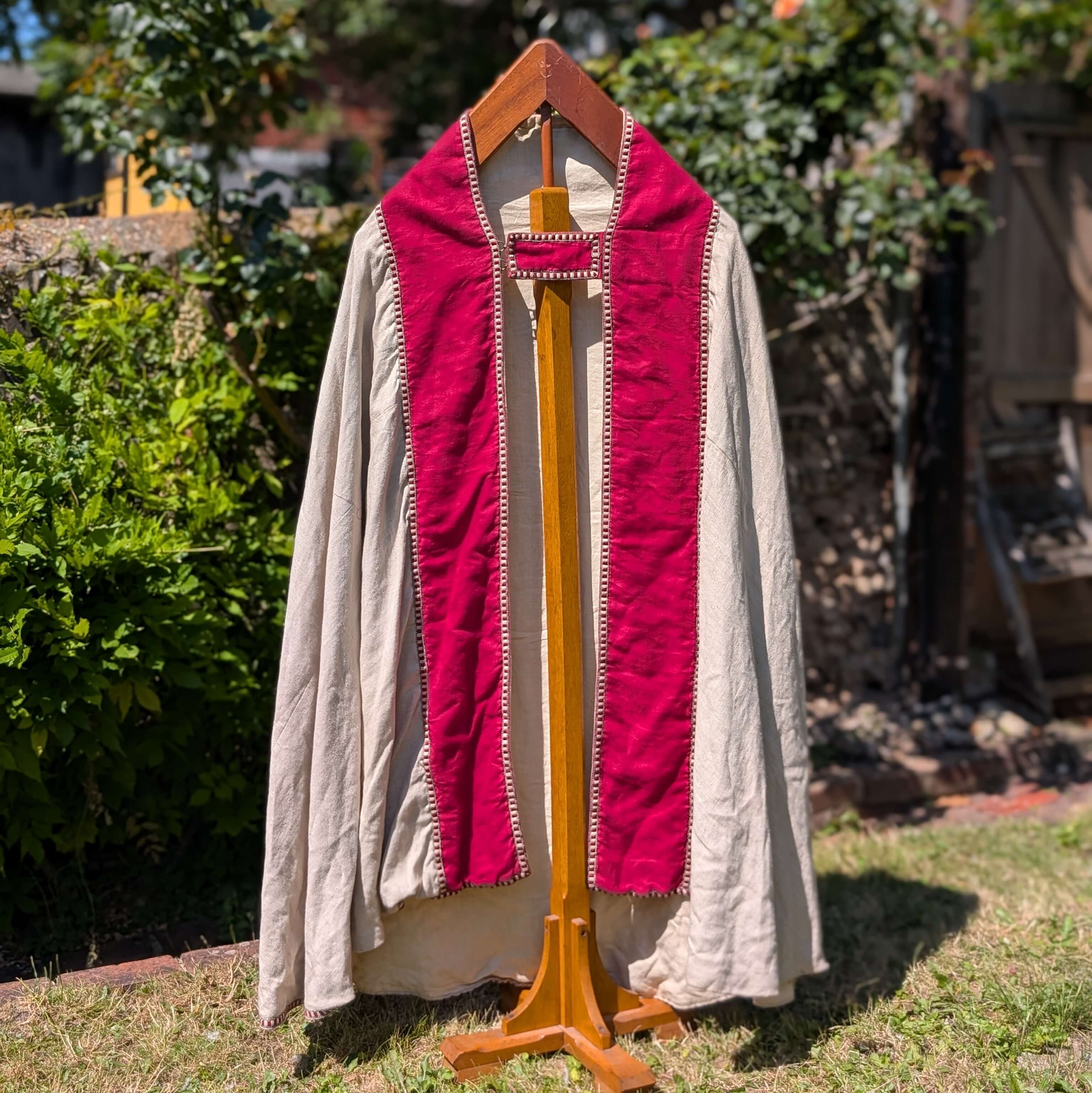 Our product shown on this page Large 1950’s Mid Century Vintage Red & Oatmeal Linen Cope is currently available for hire.