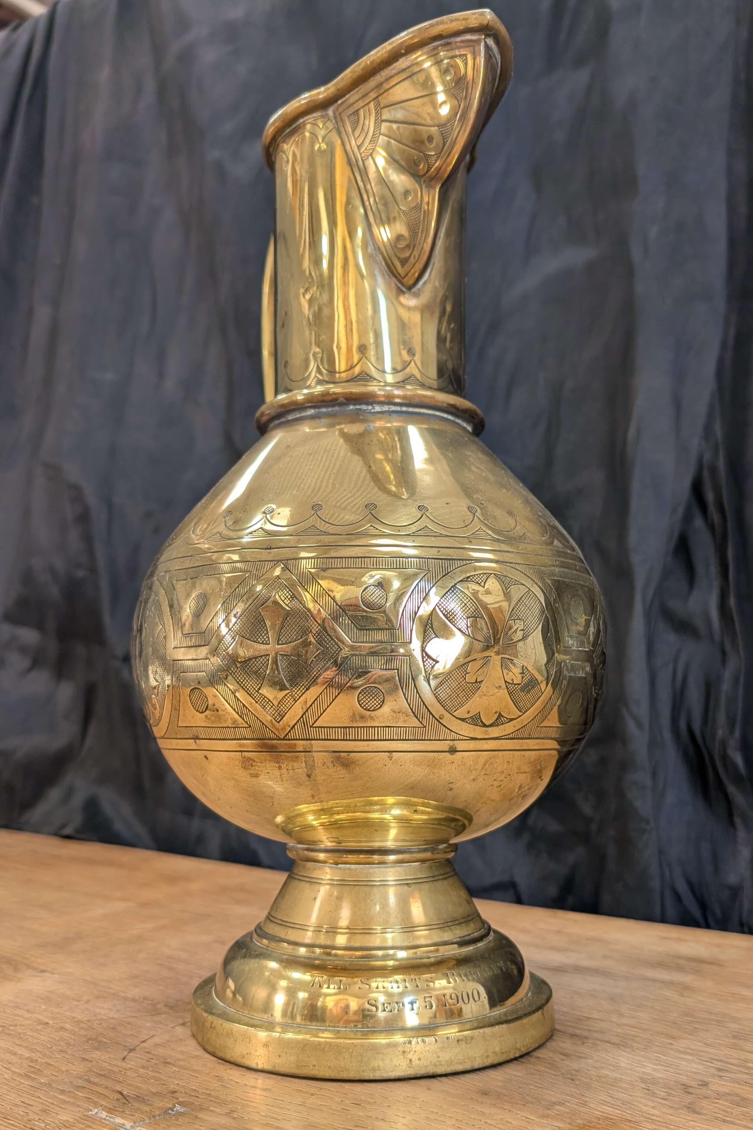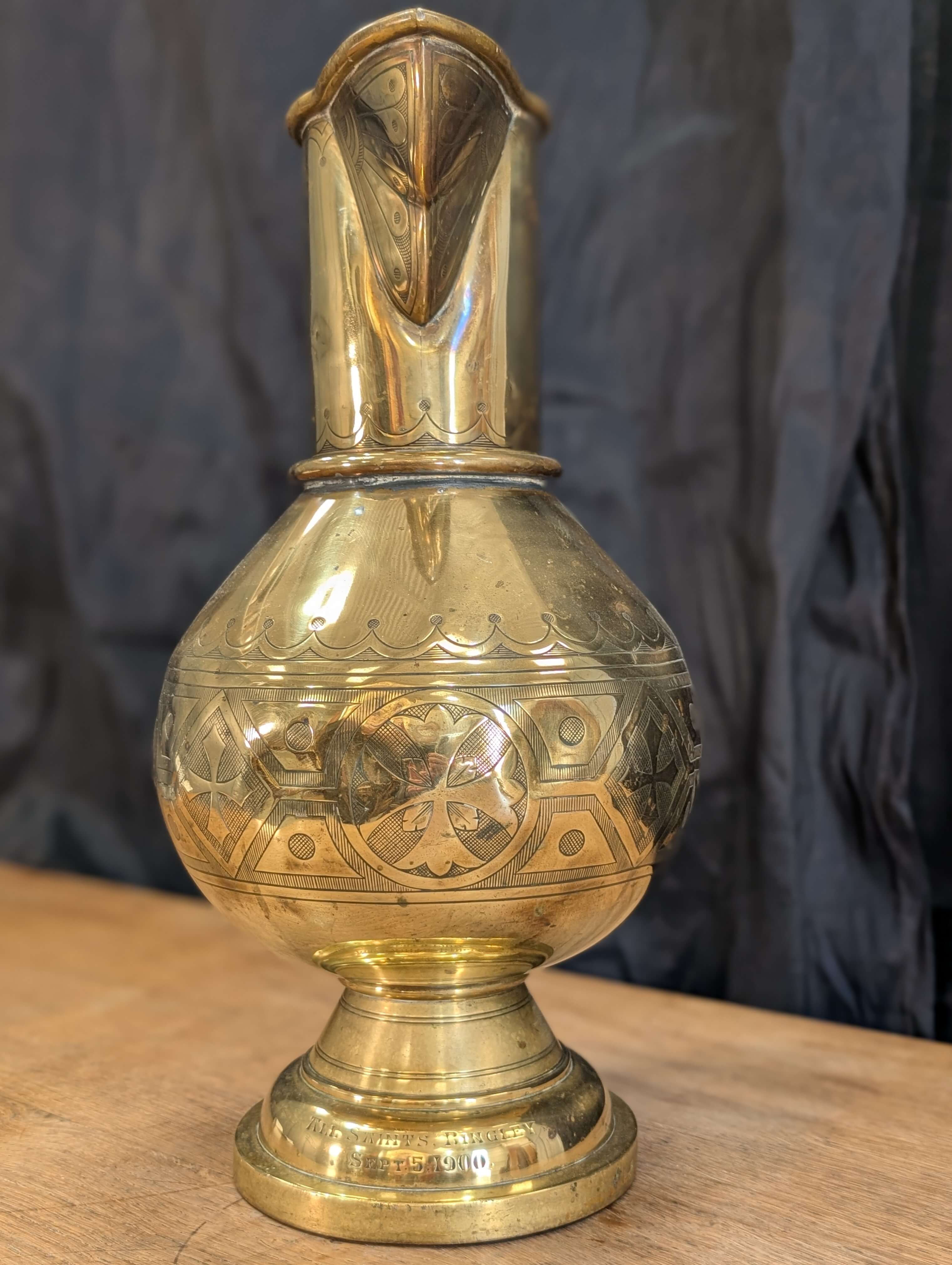Our product shown on this page Large and Rare 1900 Jones and Willis Solid Brass Water Jug Ewer is currently available for hire.
