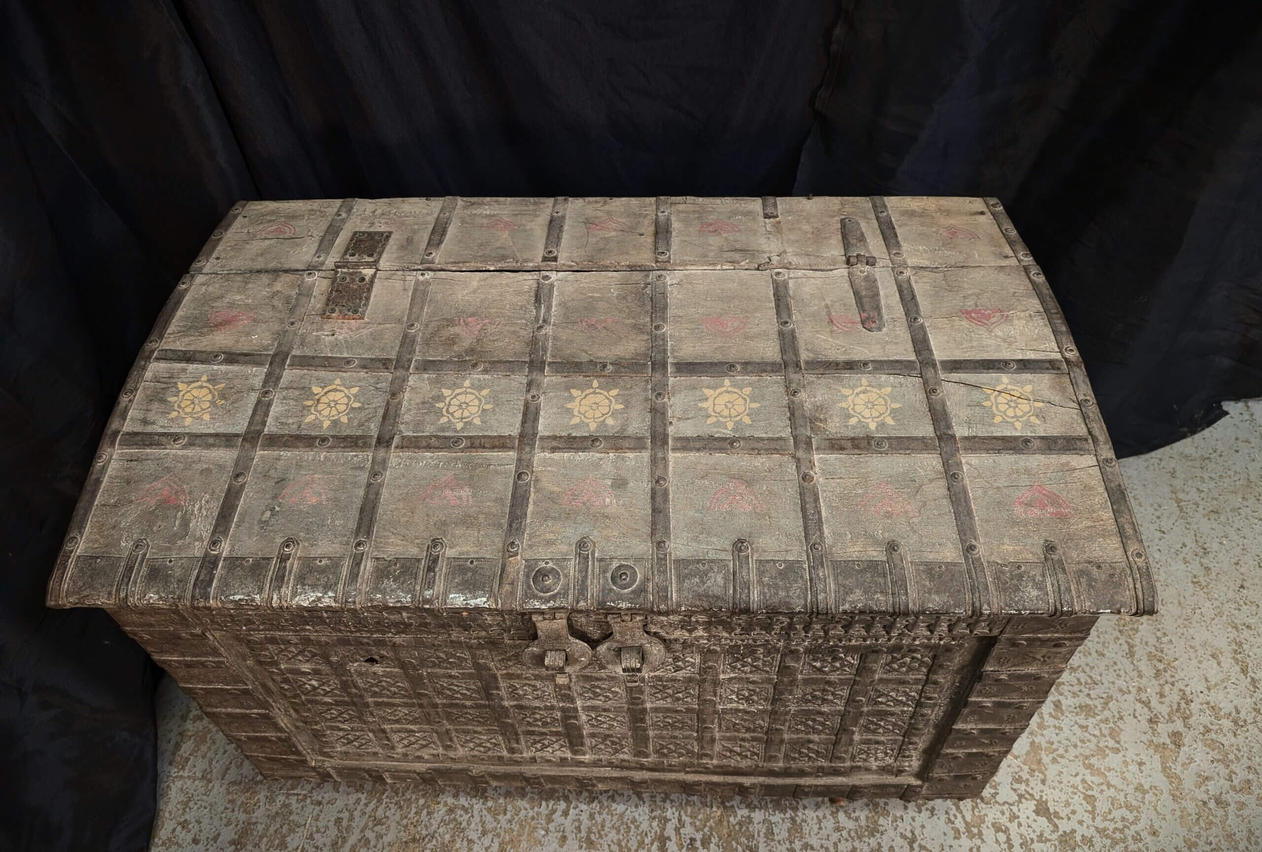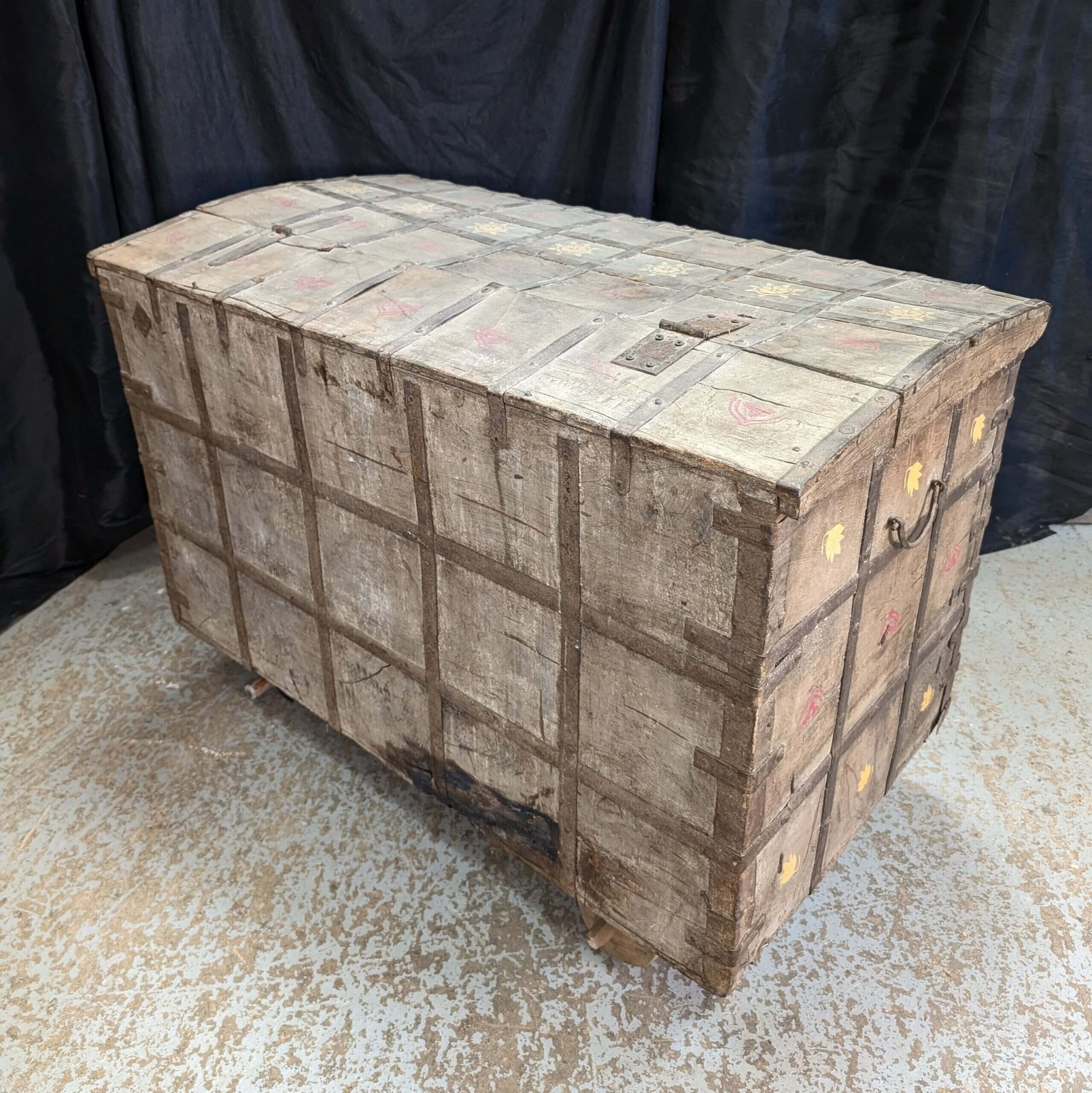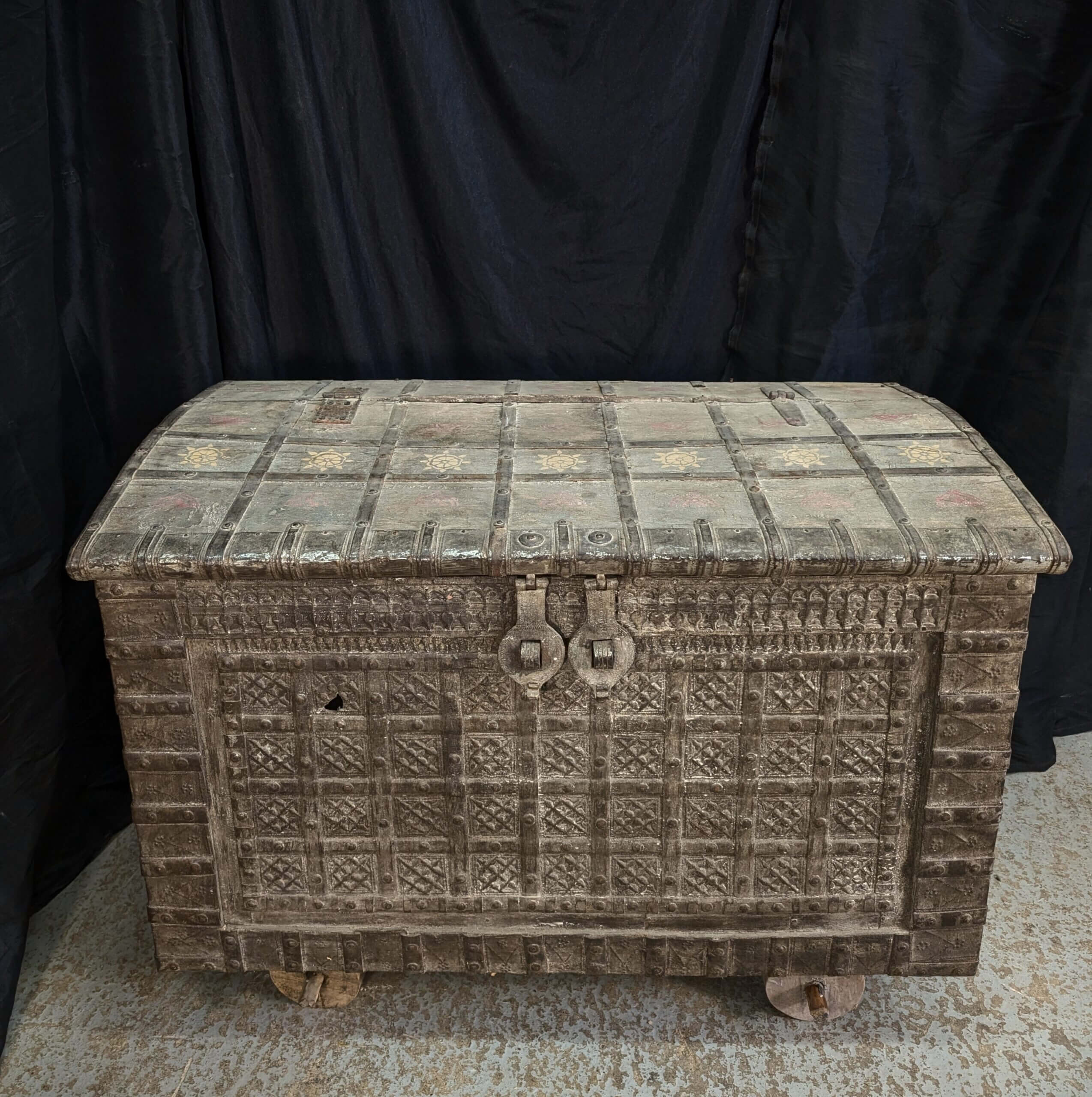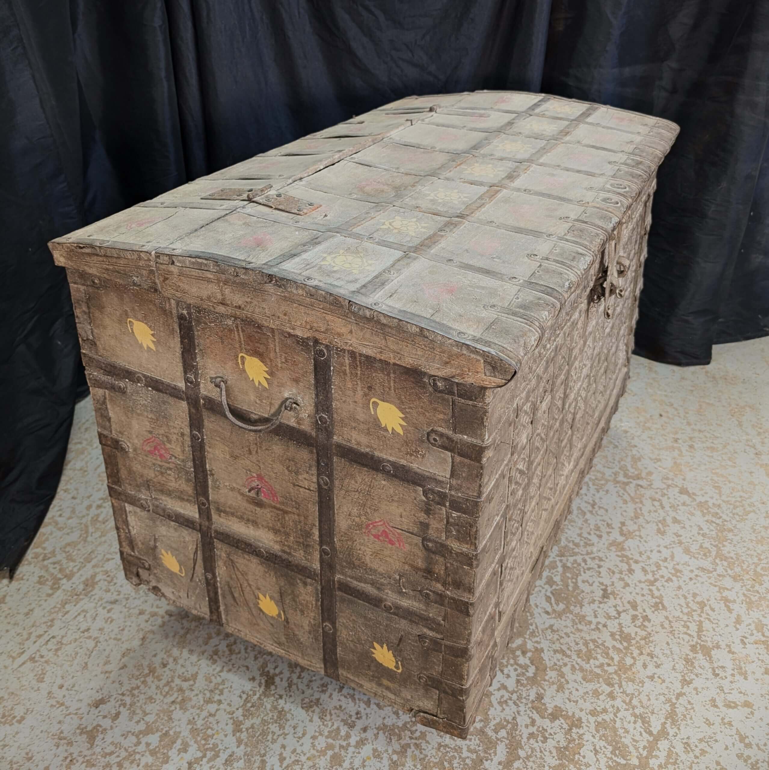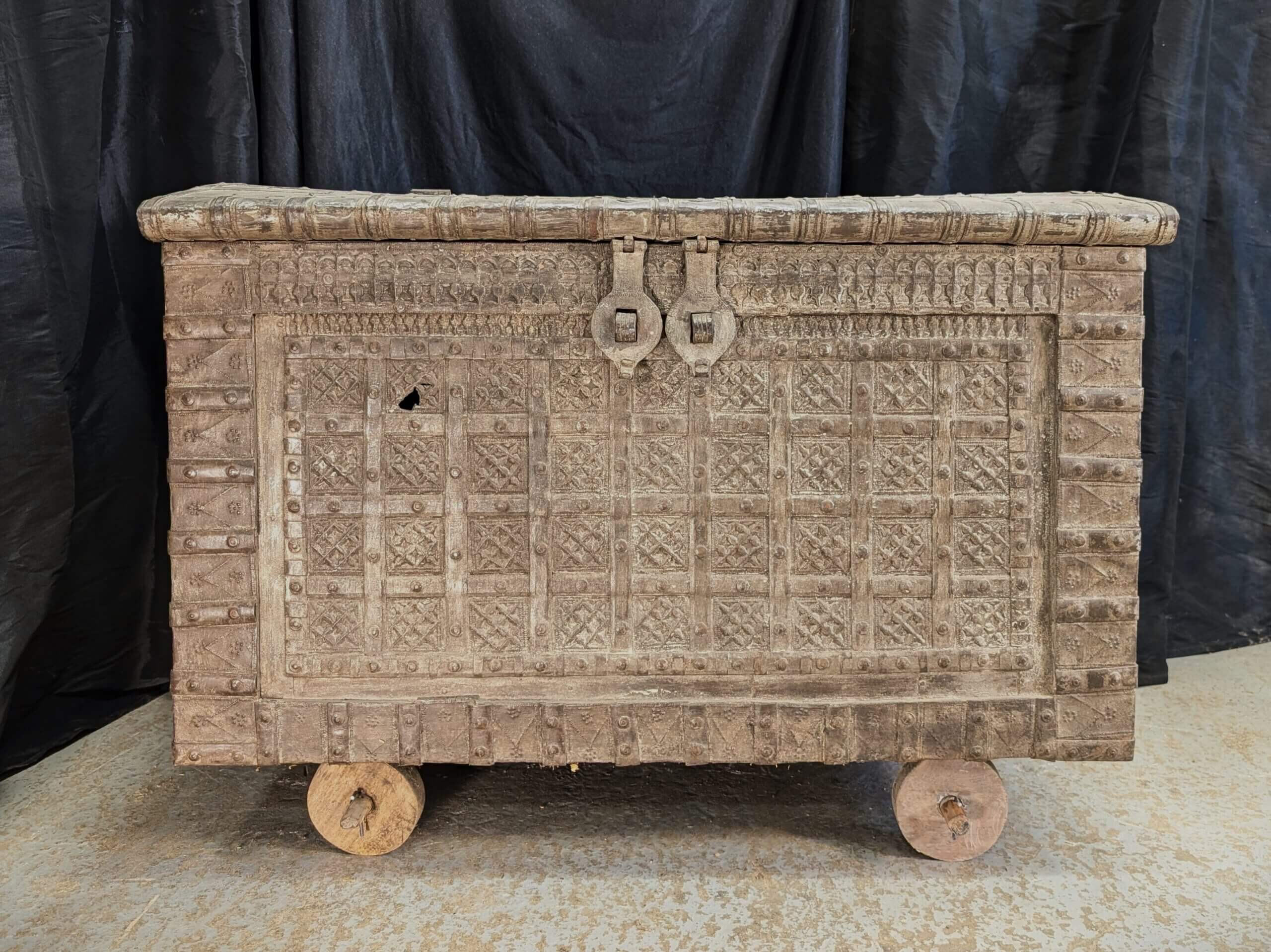 Our product shown on this page Large Heavyweight Wheeled Indian Metalwork Casket Chest (SOLD) is currently available for hire.