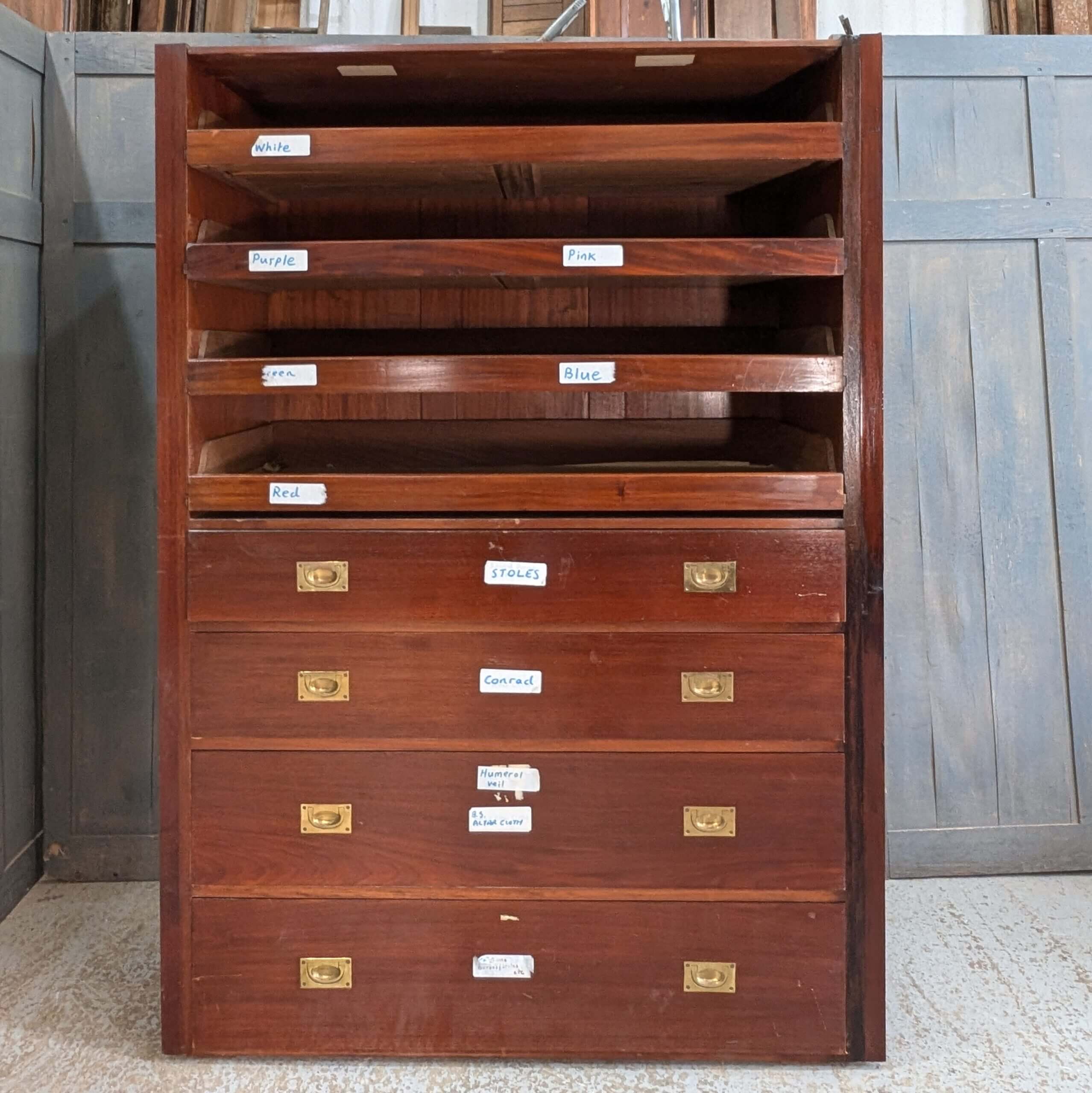 Our product shown on this page Large Mahogany Religious Textile Press Chest of Drawers from Worth Abbey (SOLD) is currently available for hire.