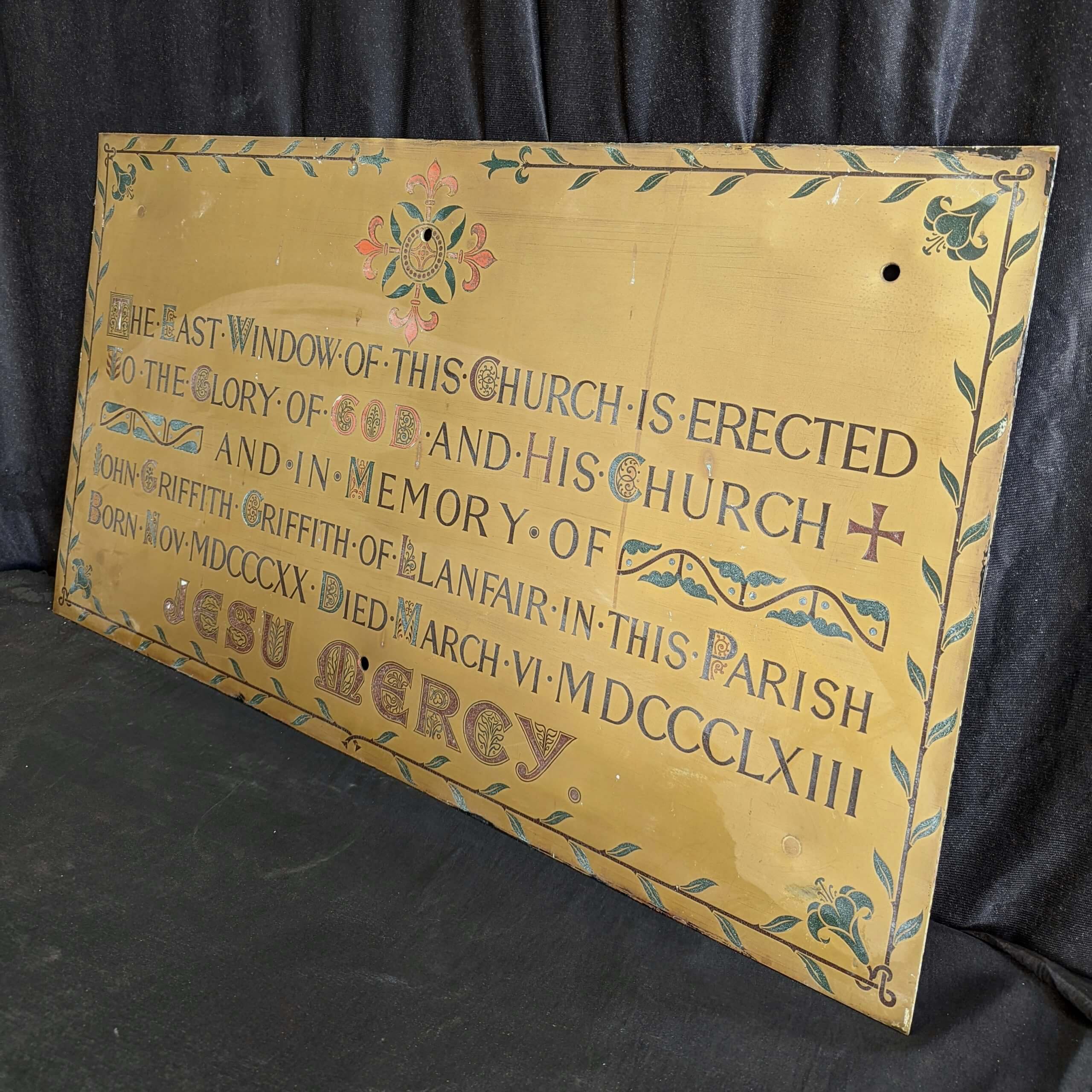 Our product shown on this page Large Ornate Brass Welsh Church Memorial Plaque dated 1863 in memory of John Griffith Griffith SALE (SOLD) is currently available for hire.