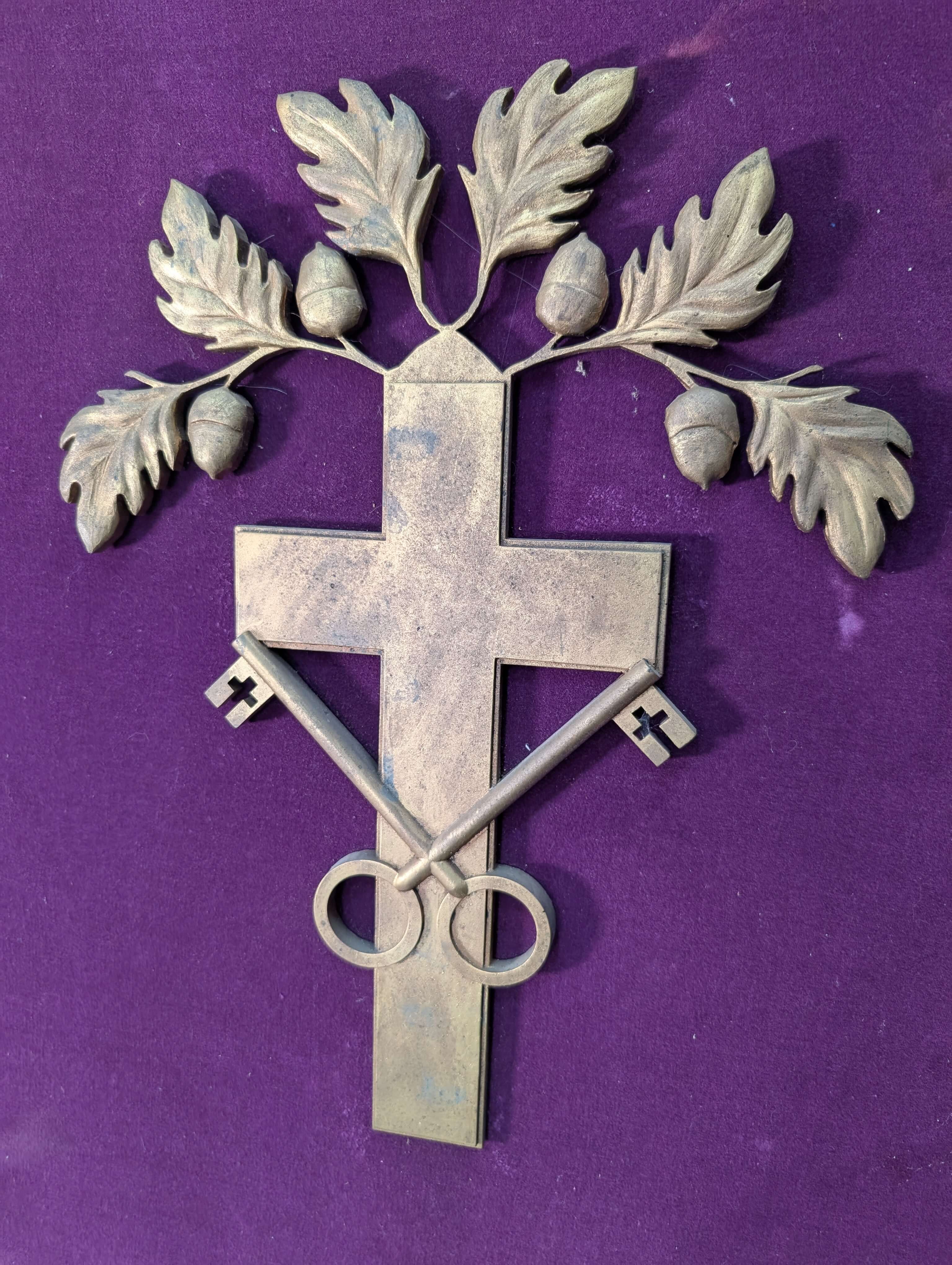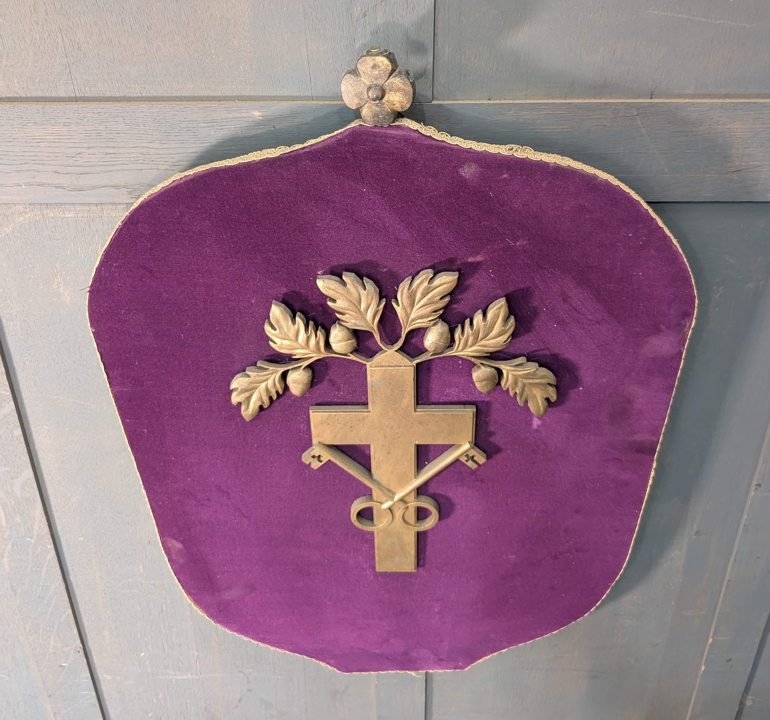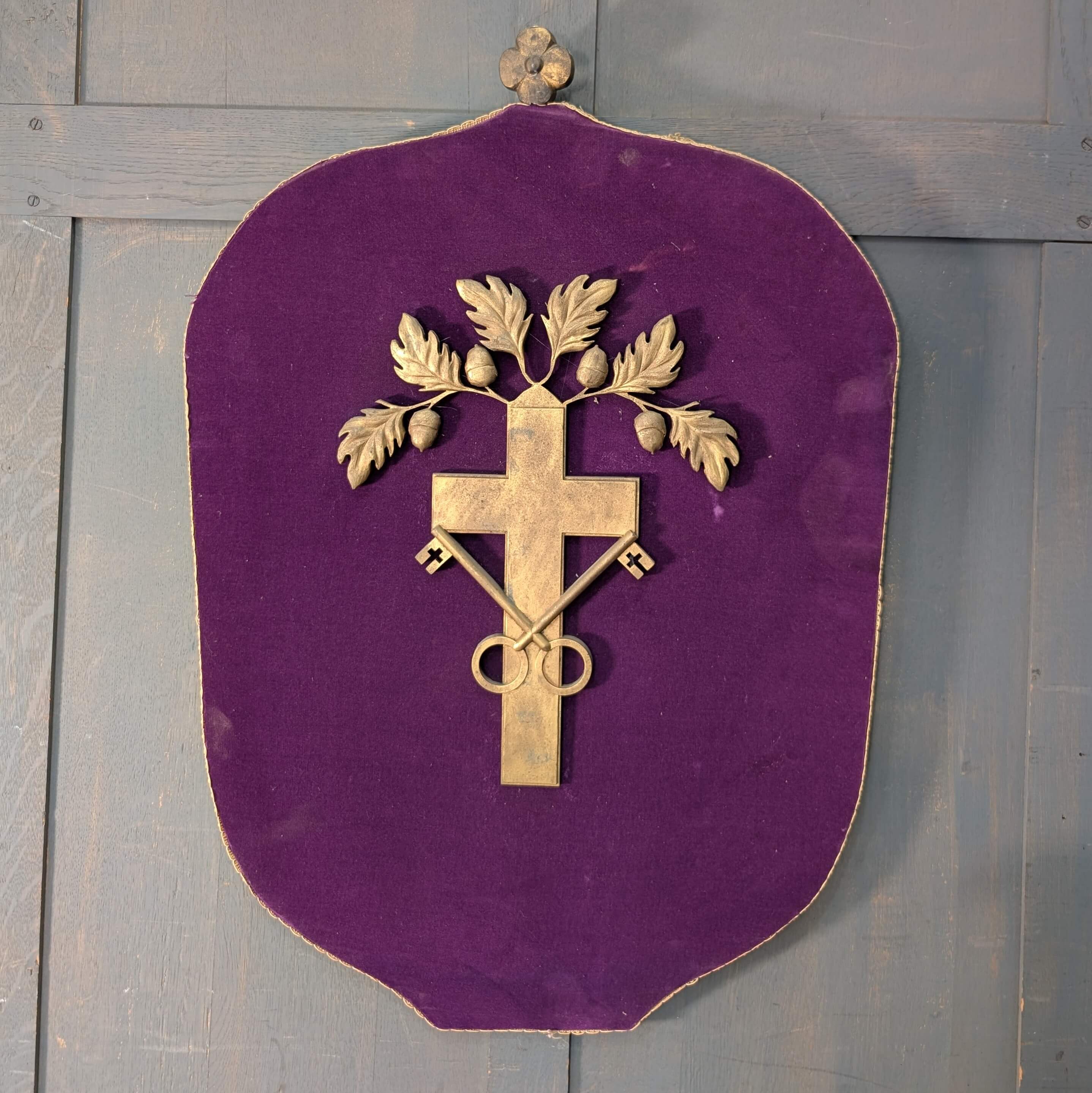 Our product shown on this page Large Purple Velvet Shield with Variation of St Peter’s Cross with Acorns is currently available for hire.