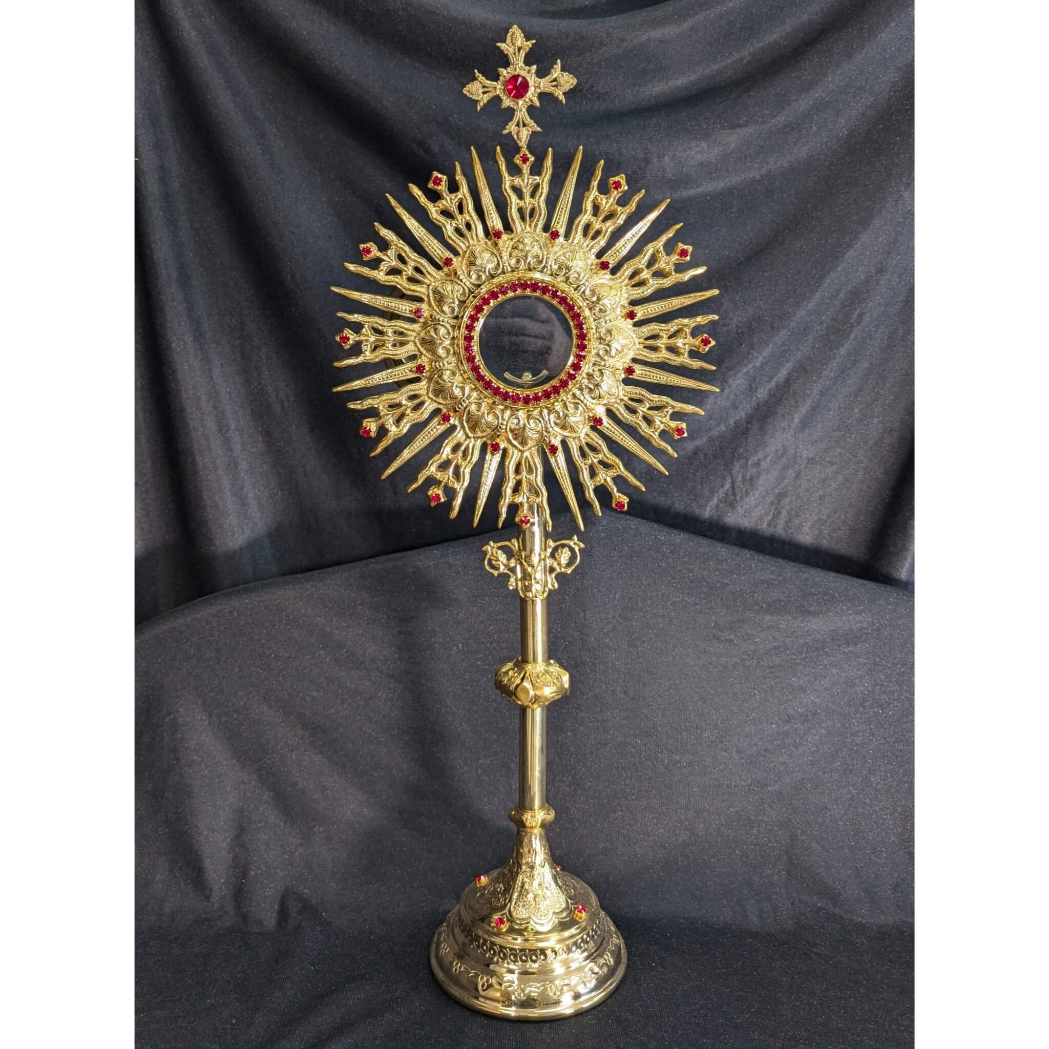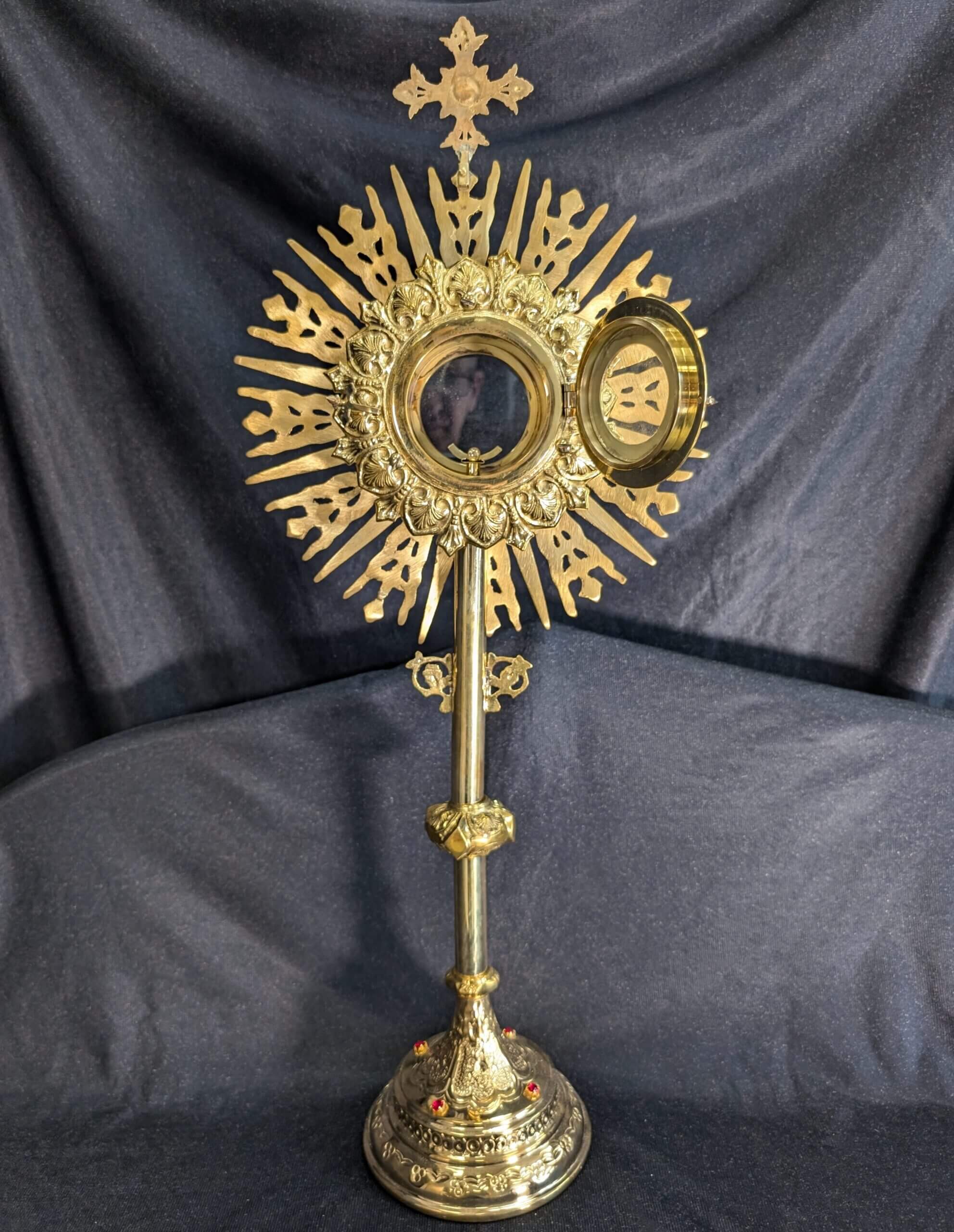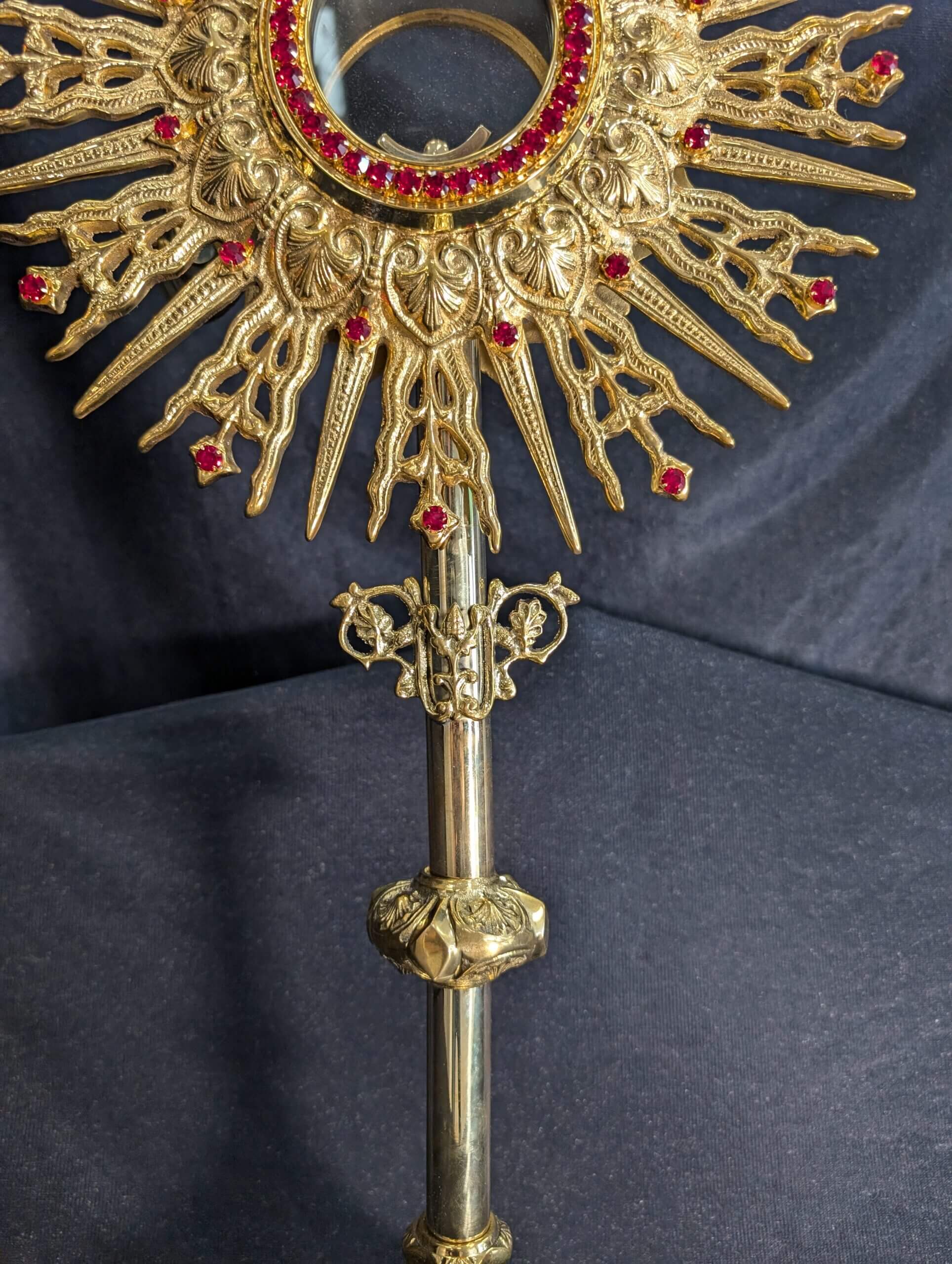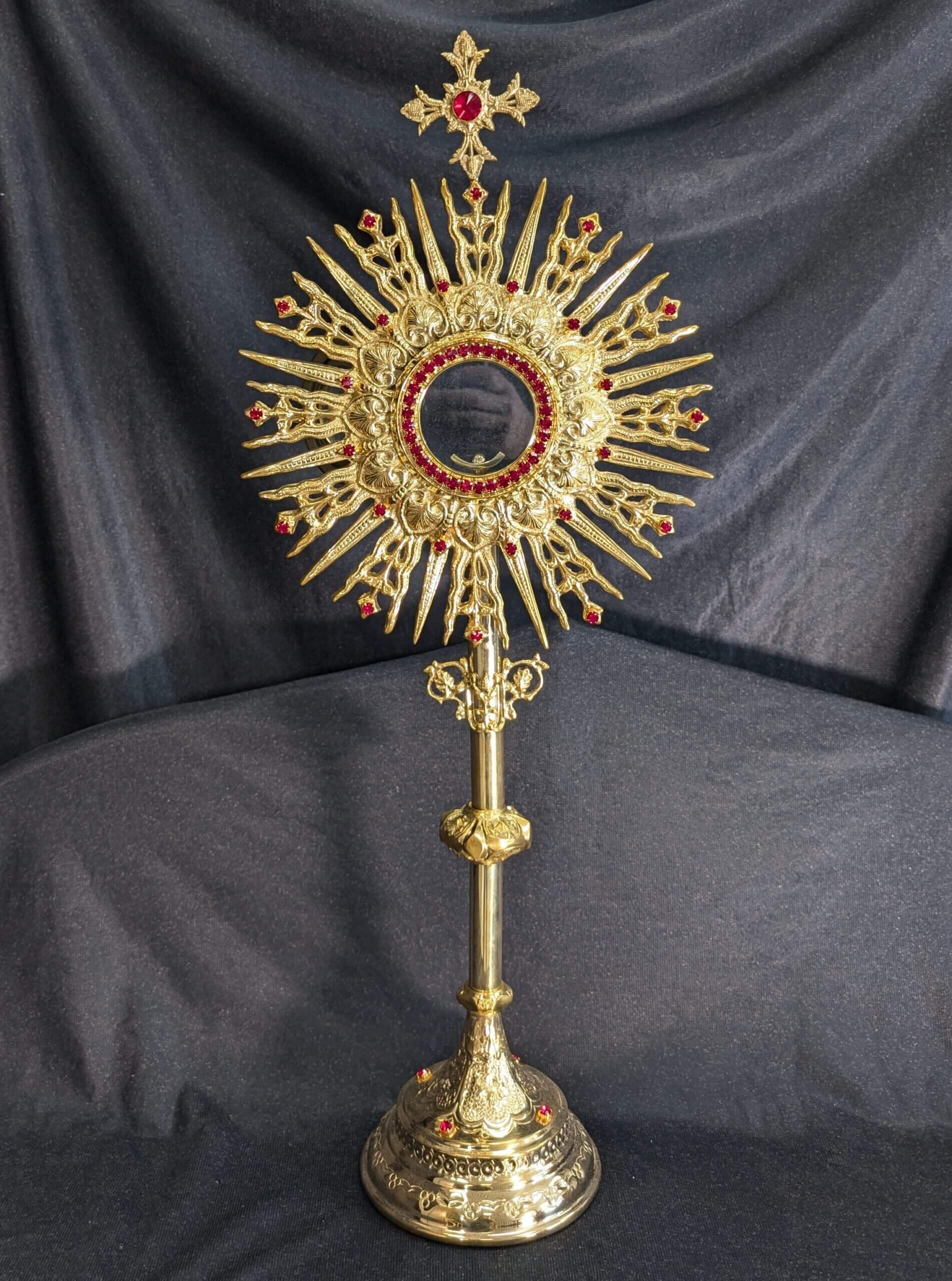 Our product shown on this page Large Spectacular Bejewelled Gilt Brass Monstrance is currently available for hire.