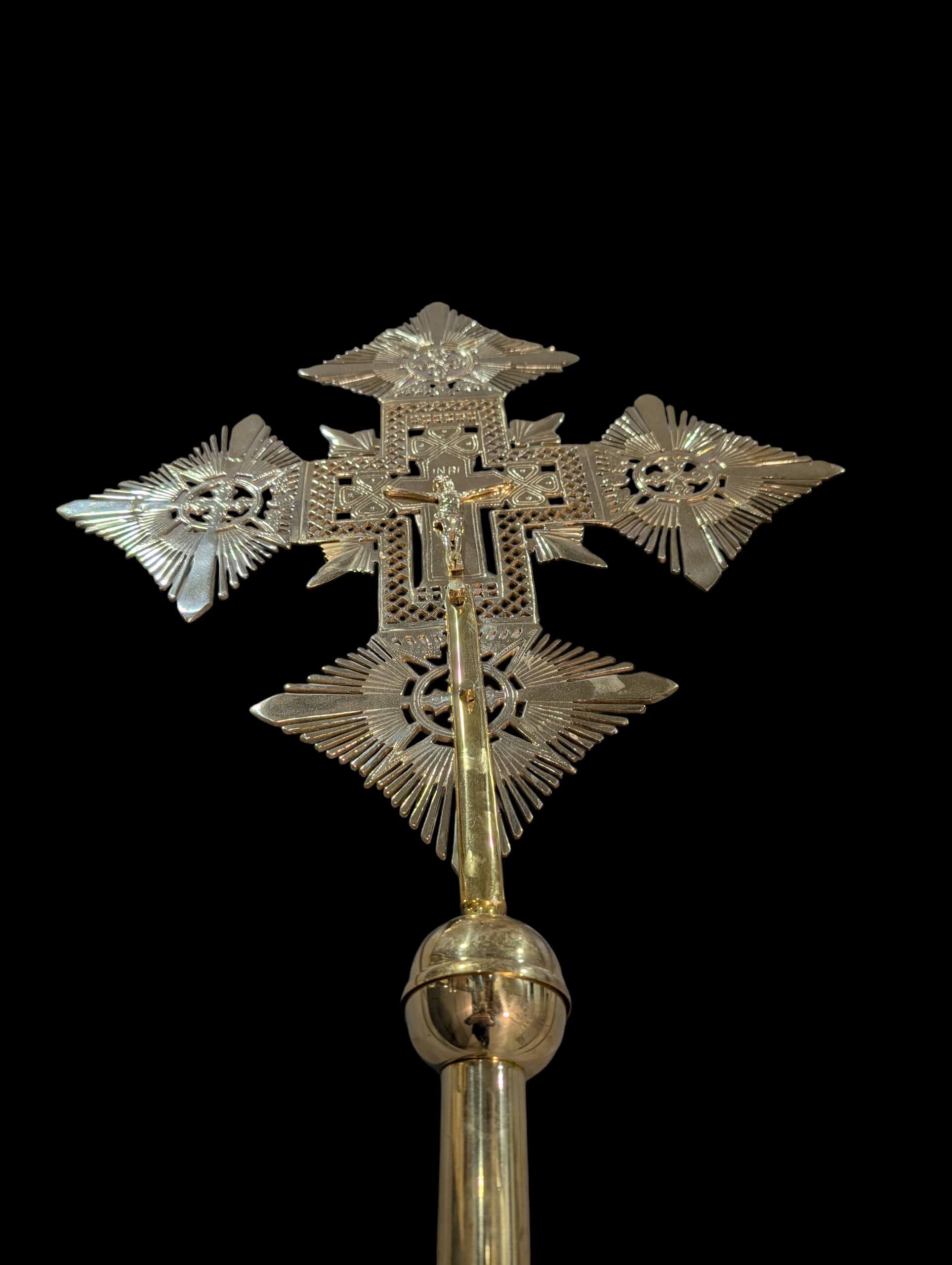 Our product shown on this page Large Striking Brass Coptic Styled Processional Cross is currently available for hire.