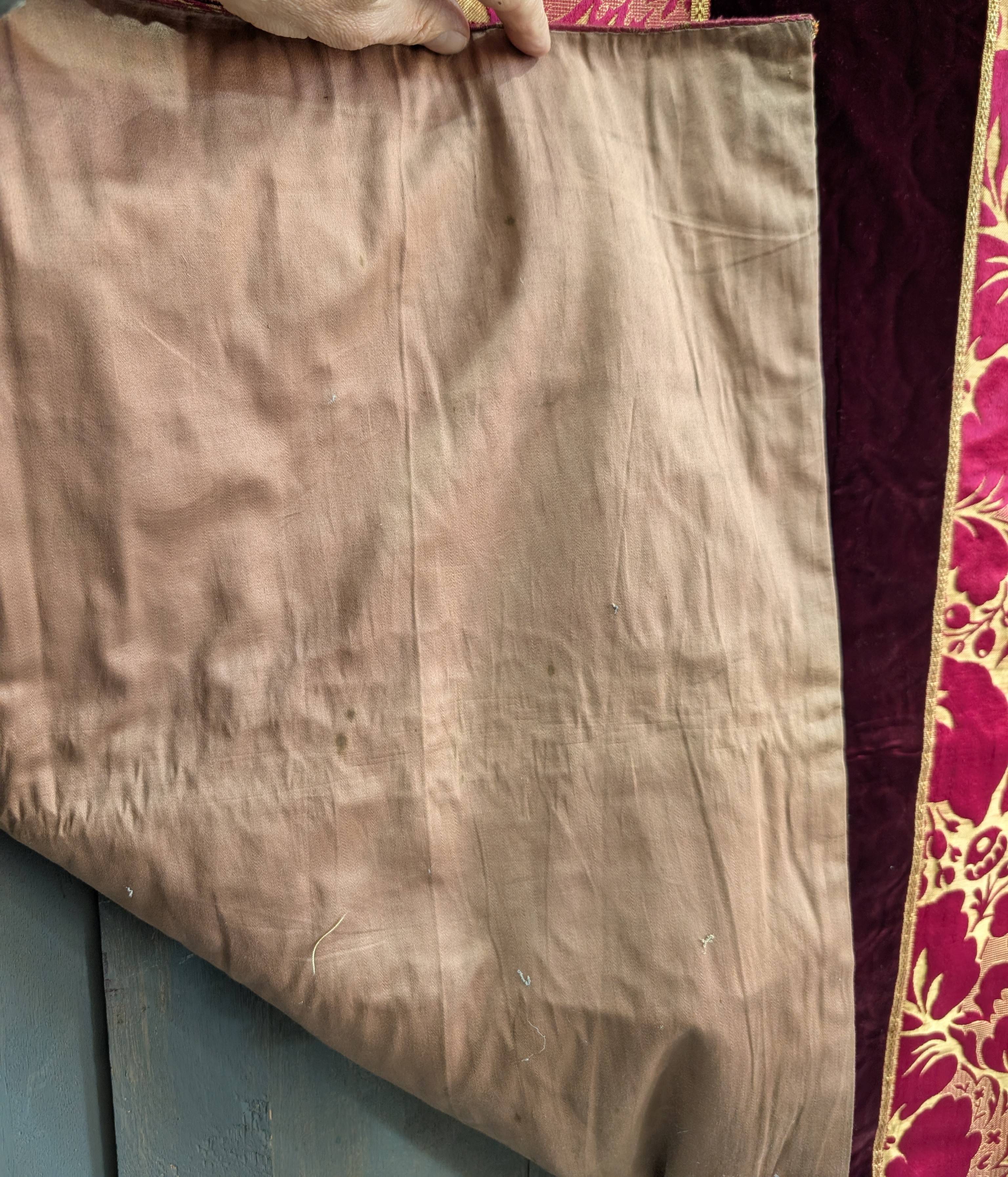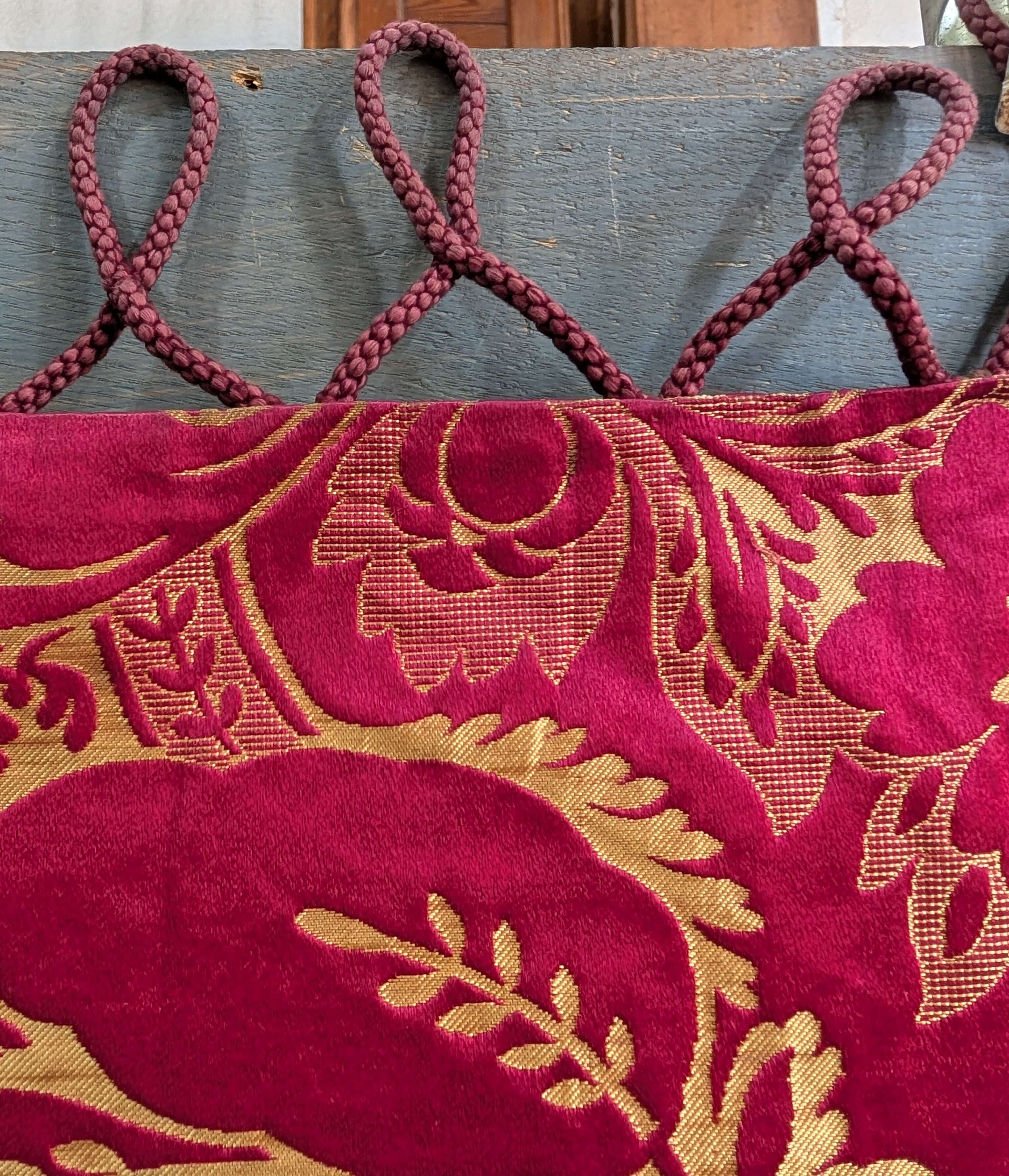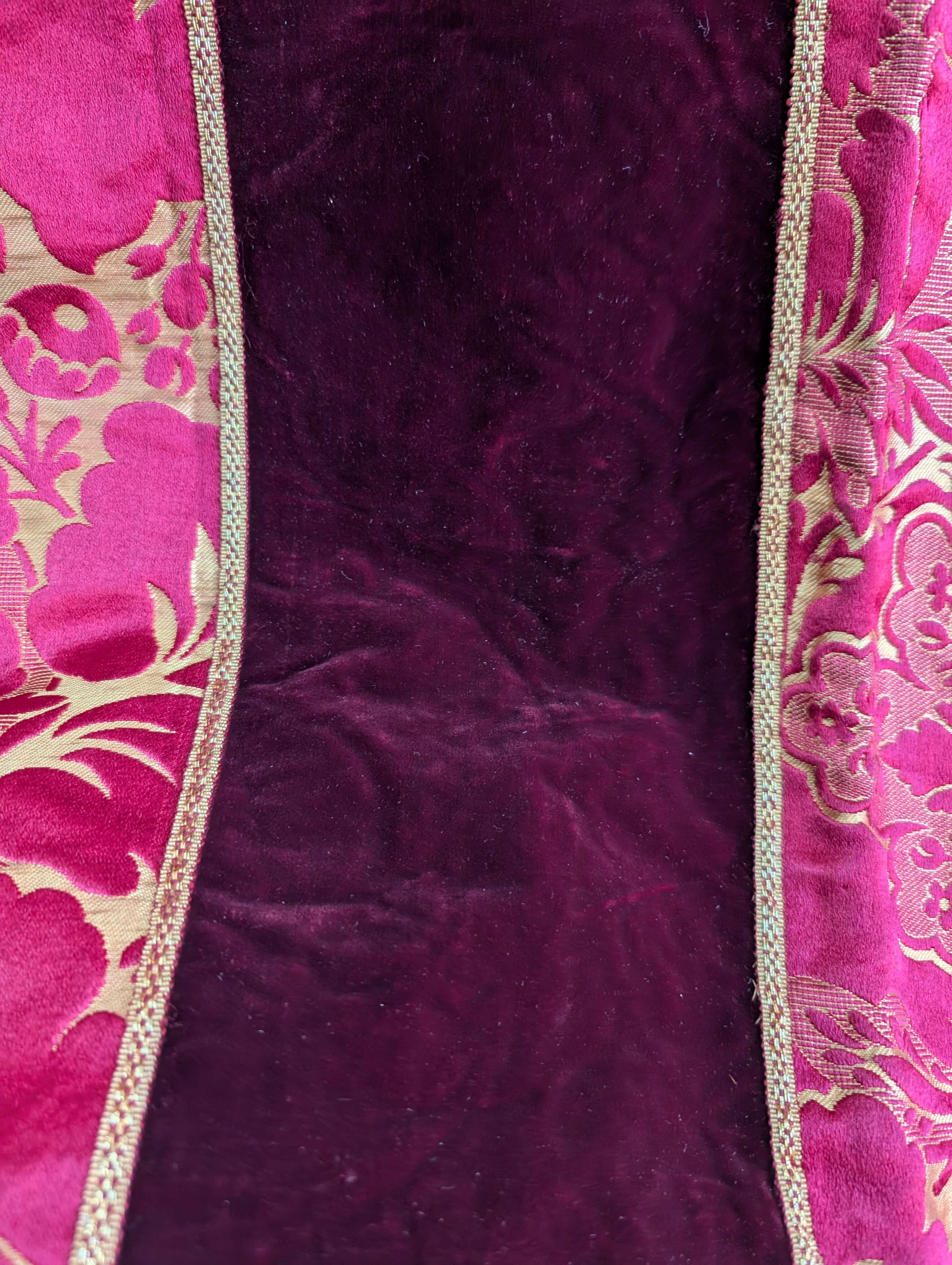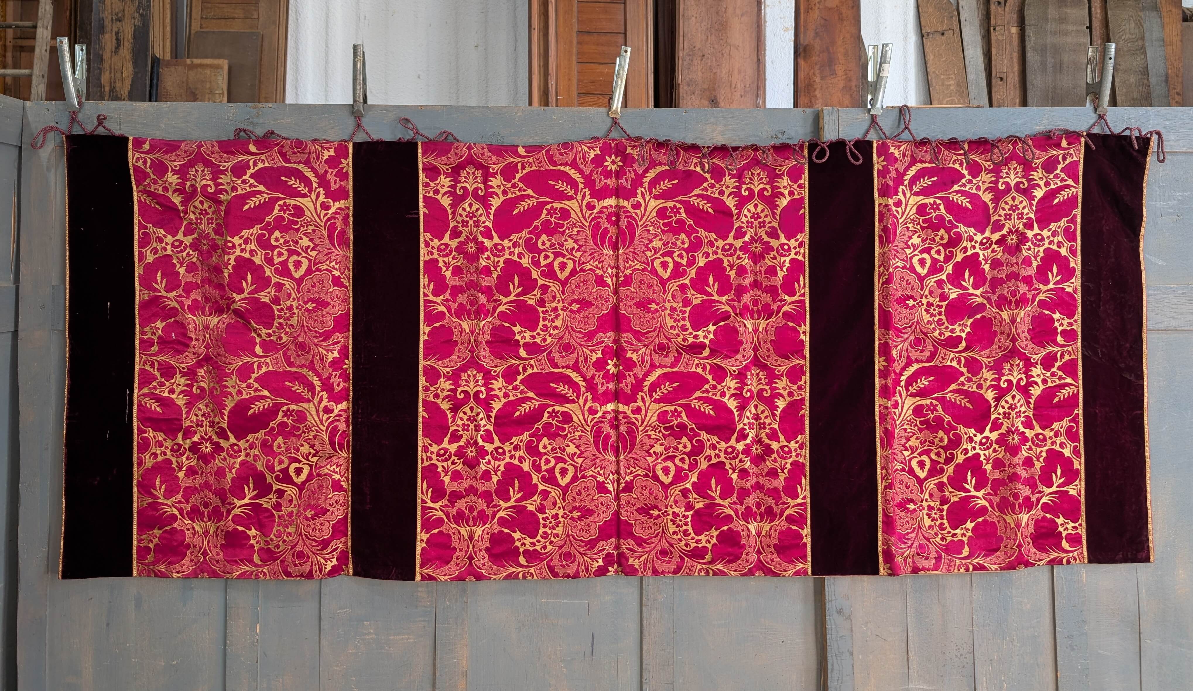 Our product shown on this page Large Sumptuous Rich Red Brocade Damask Altar Frontal with Deep Red Velvet Panels is currently available for hire.