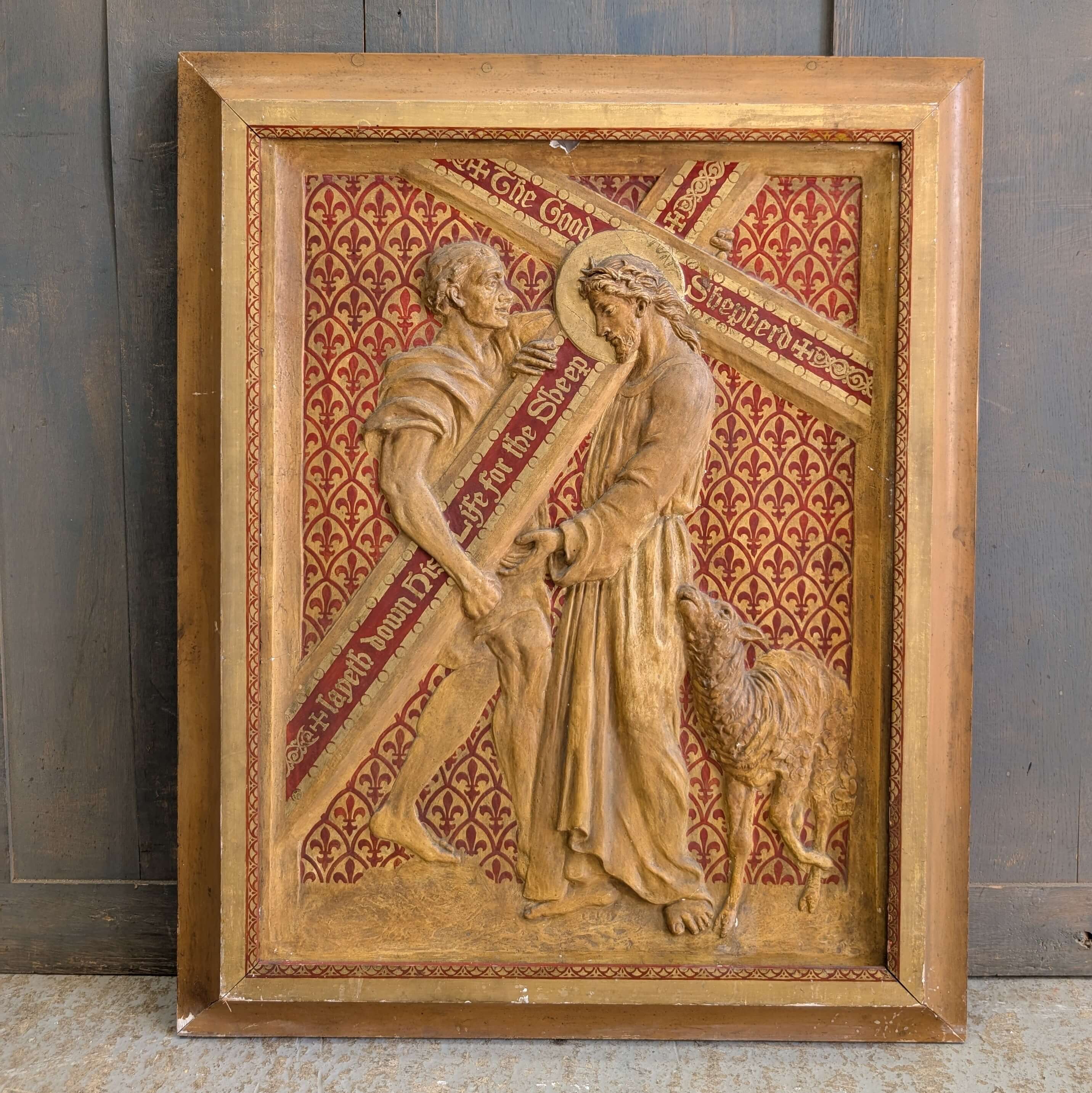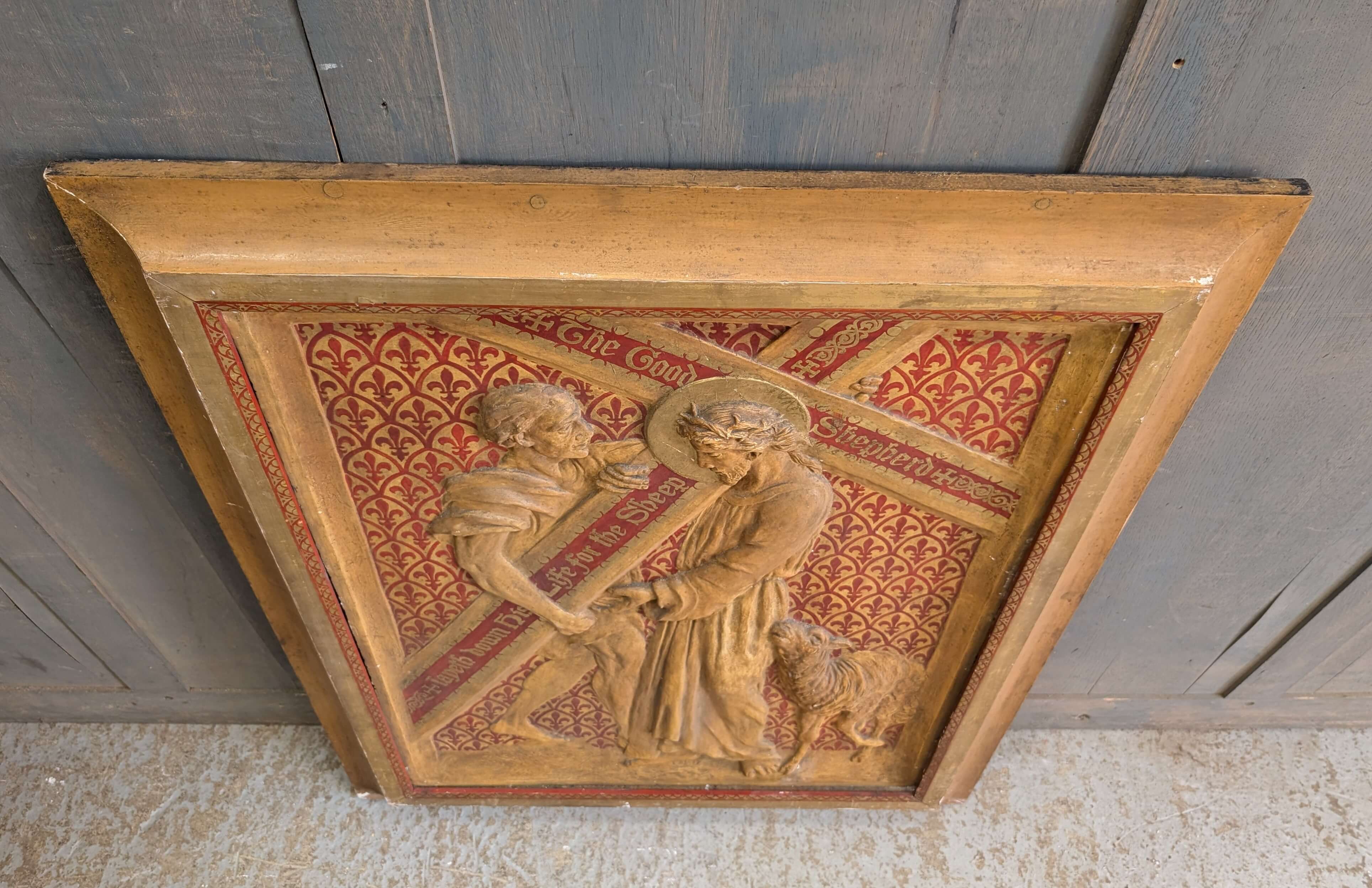 Our product shown on this page Large Vintage Framed Decorative Plaque Simon of Cyrene Helping Jesus is currently available for hire.