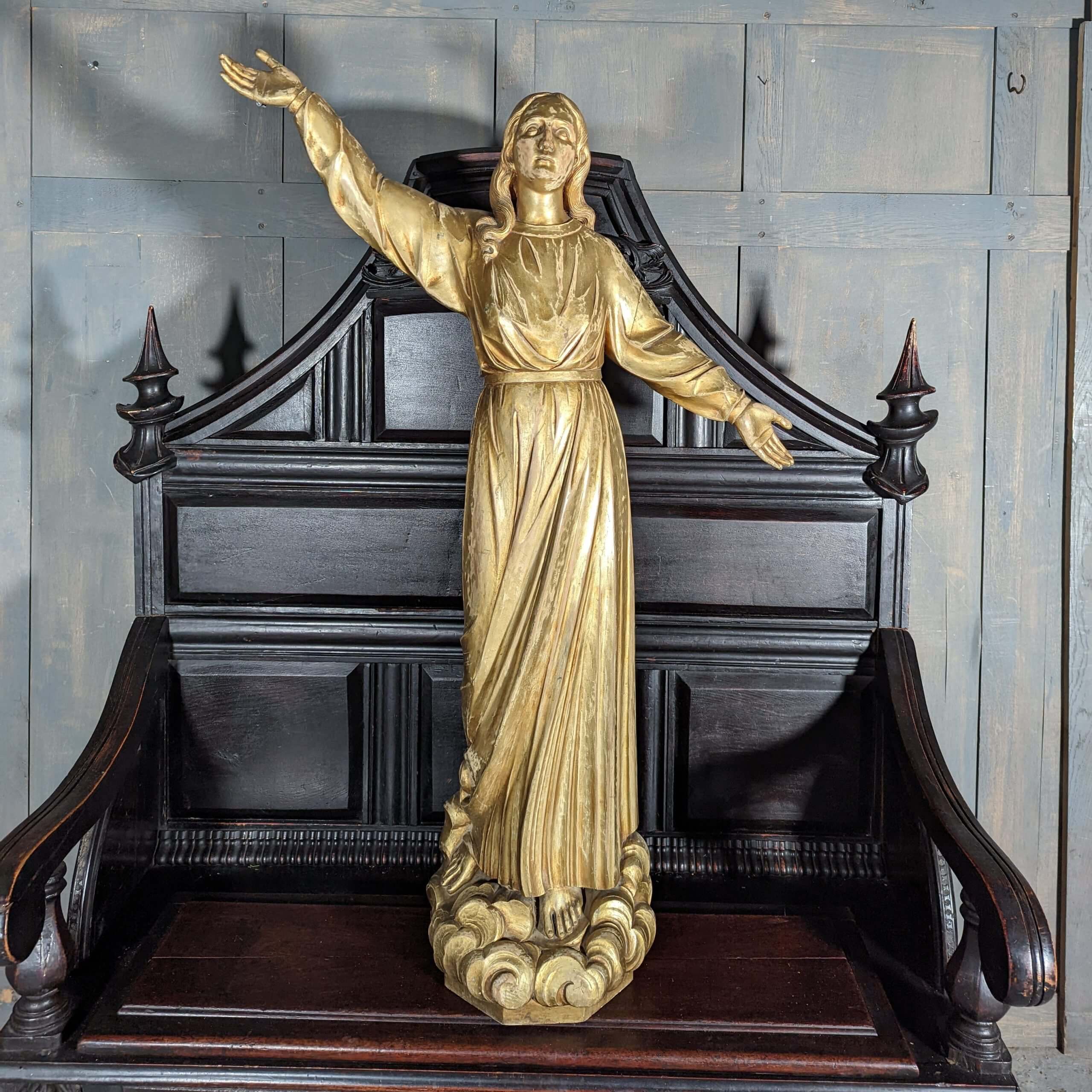 Our product shown on this page Large Vintage Gilt Finished Carved Oak Religious Statue The Immaculate Conception (SOLD) is currently available for hire.