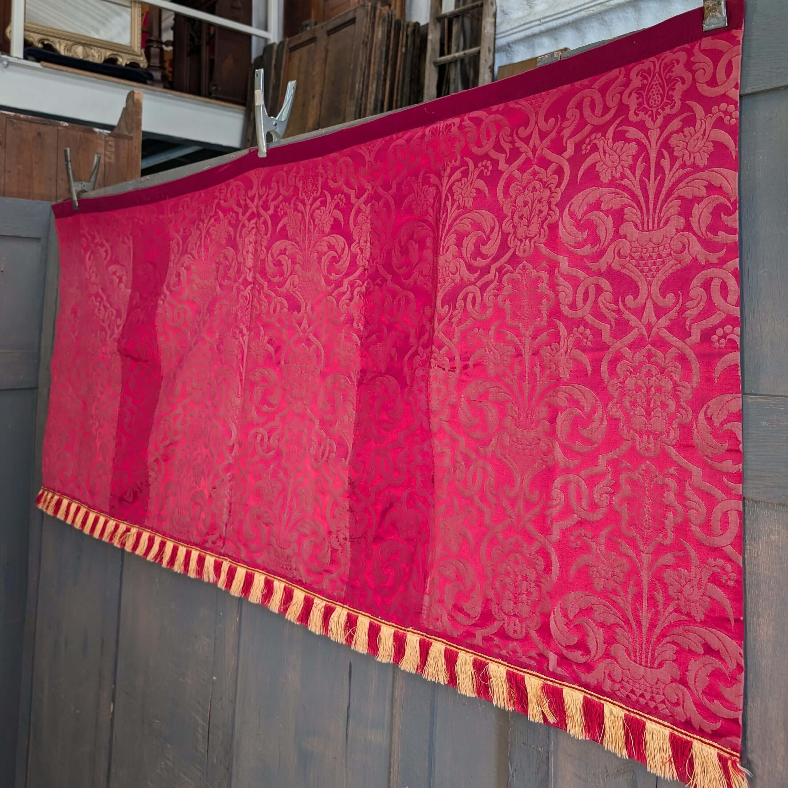 Our product shown on this page Large Vintage Red Damask Silk Altar Frontal with Fringe (SOLD) is currently available for hire.