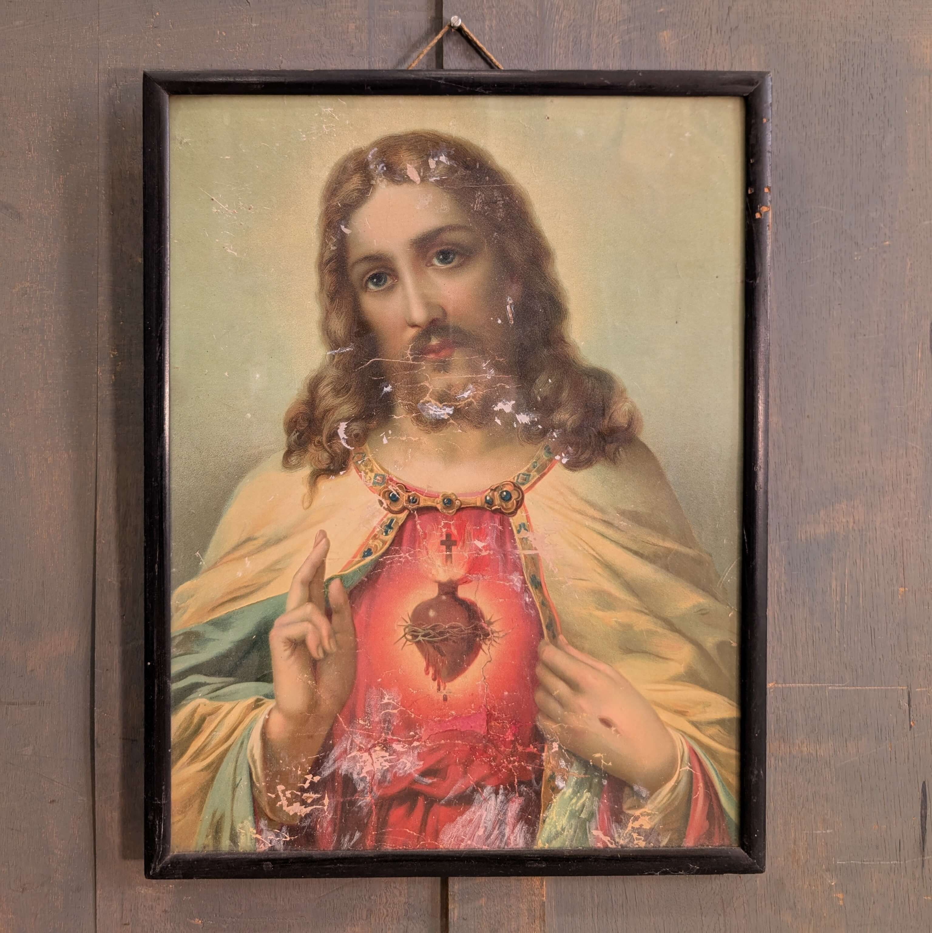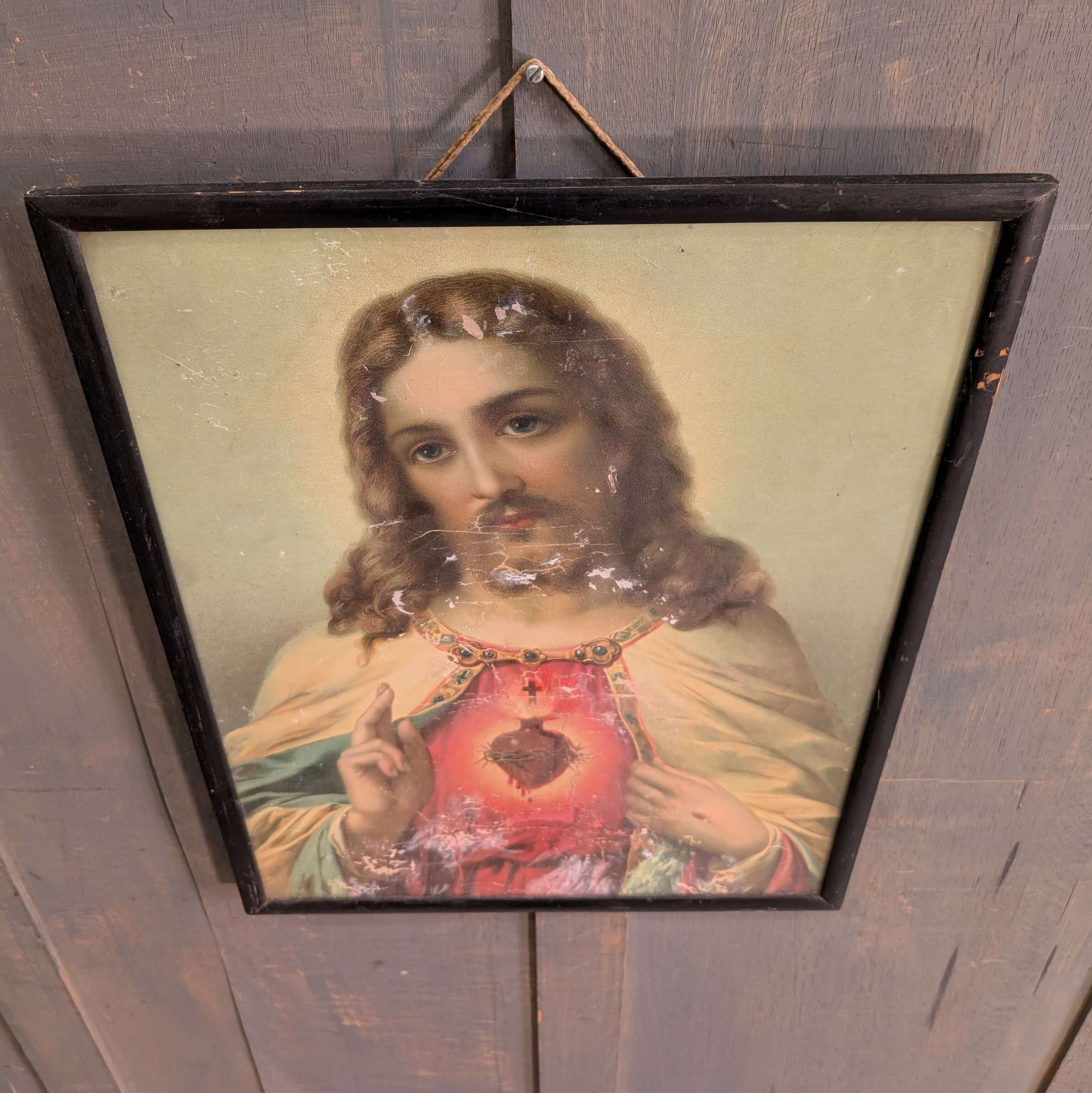 Our product shown on this page Larger Size French Antique Colour Lithograph of Christ the Sacred Heart is currently available for hire.