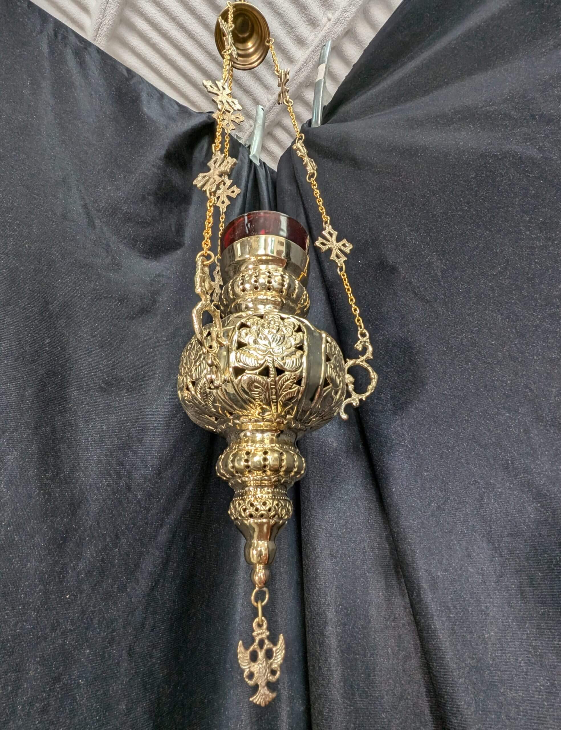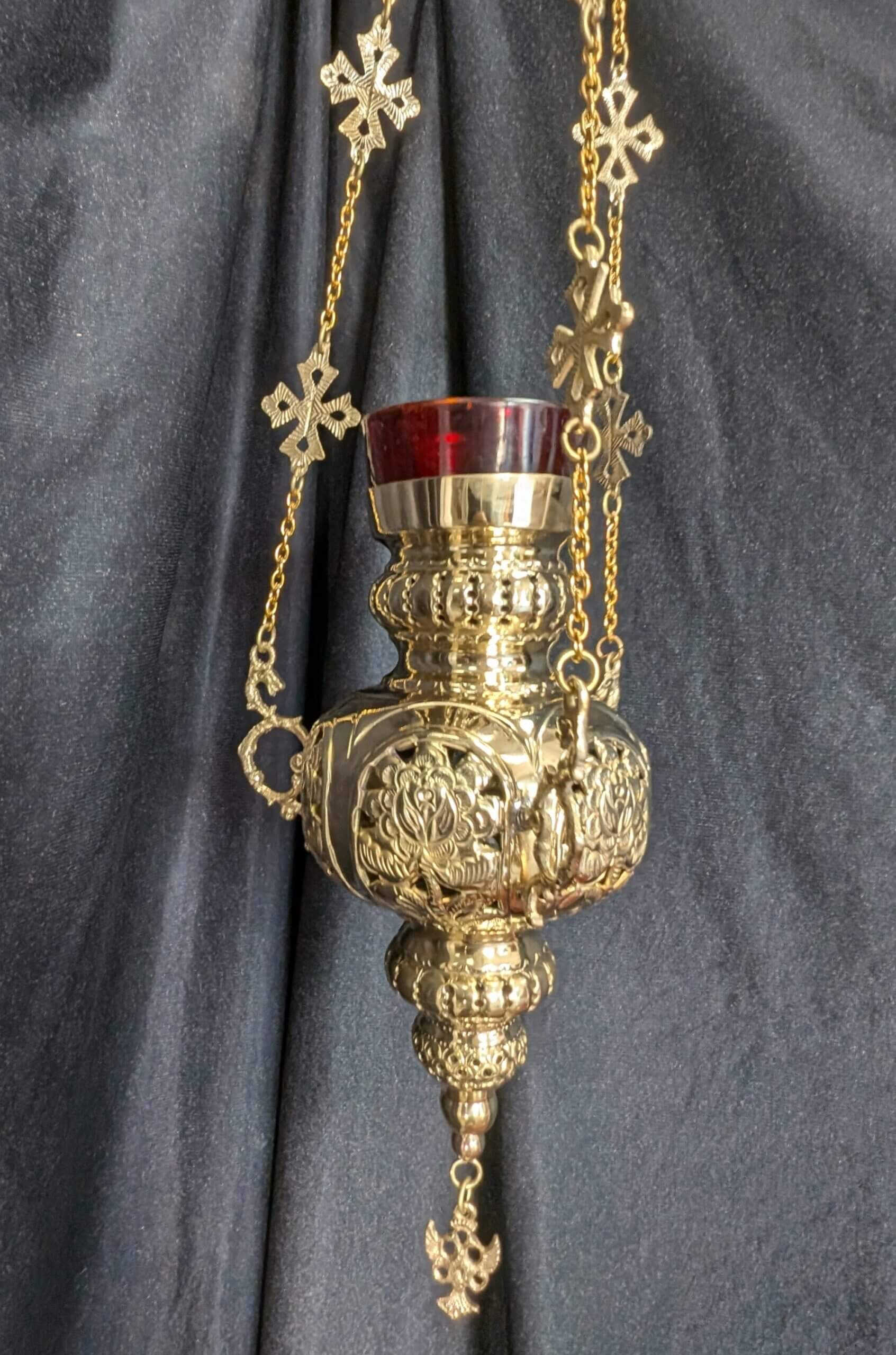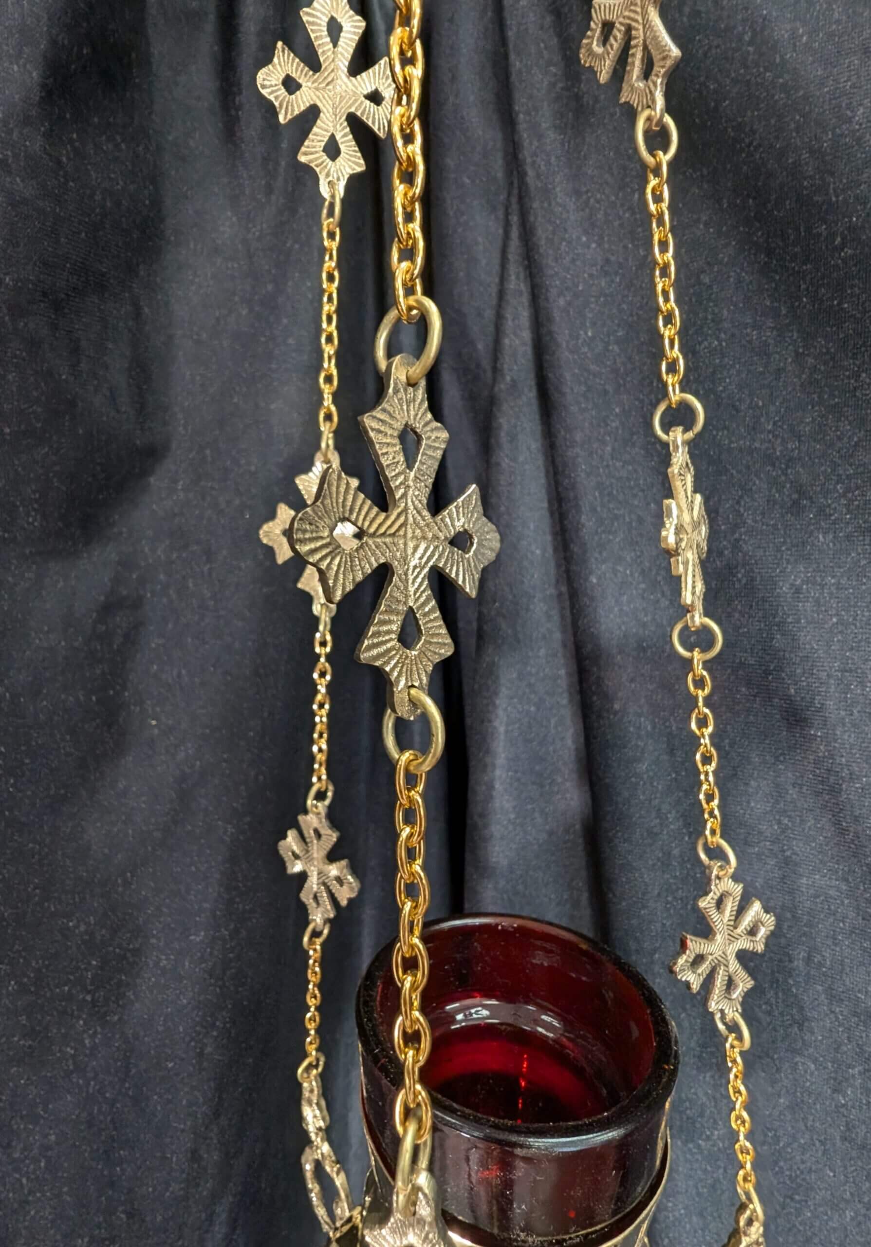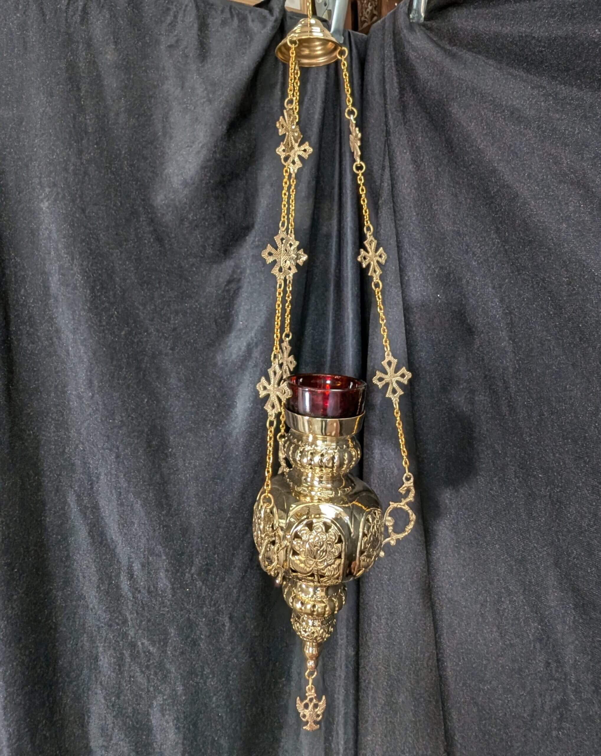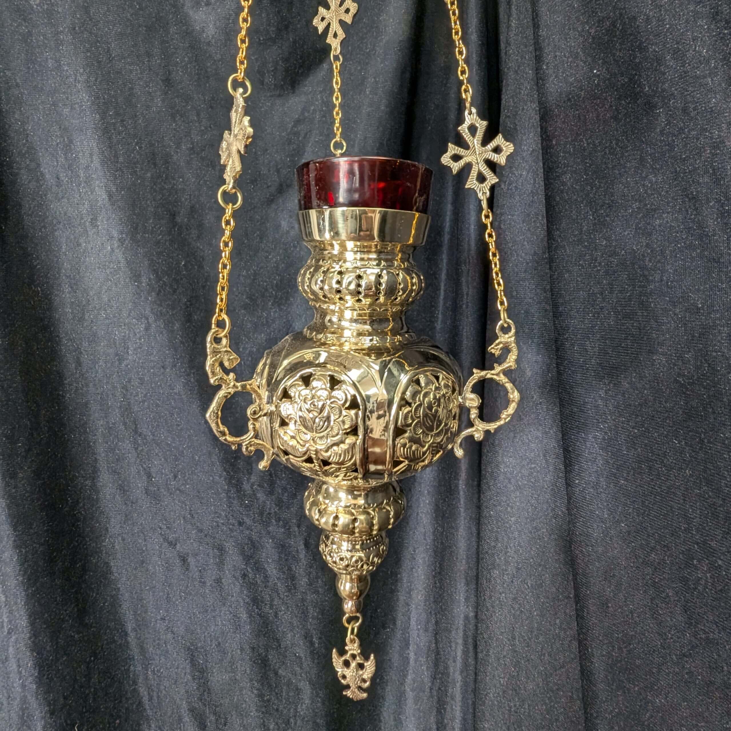 Our product shown on this page Larger Than Average Ornate ‘Holy Rose’ Vigil Sanctuary Lamp RESERVED is currently available for hire.