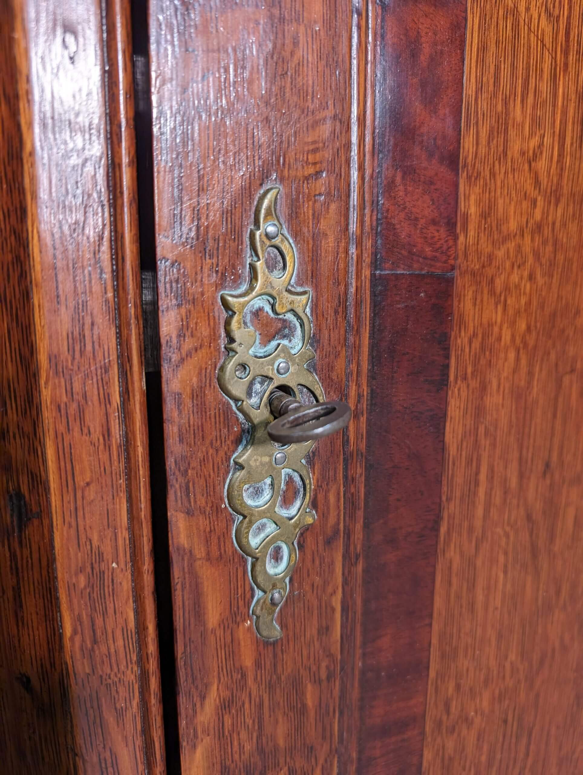 Our product shown on this page Late Georgian Tall Inlaid Oak Corner Cupboard With Working Lock is currently available for hire.