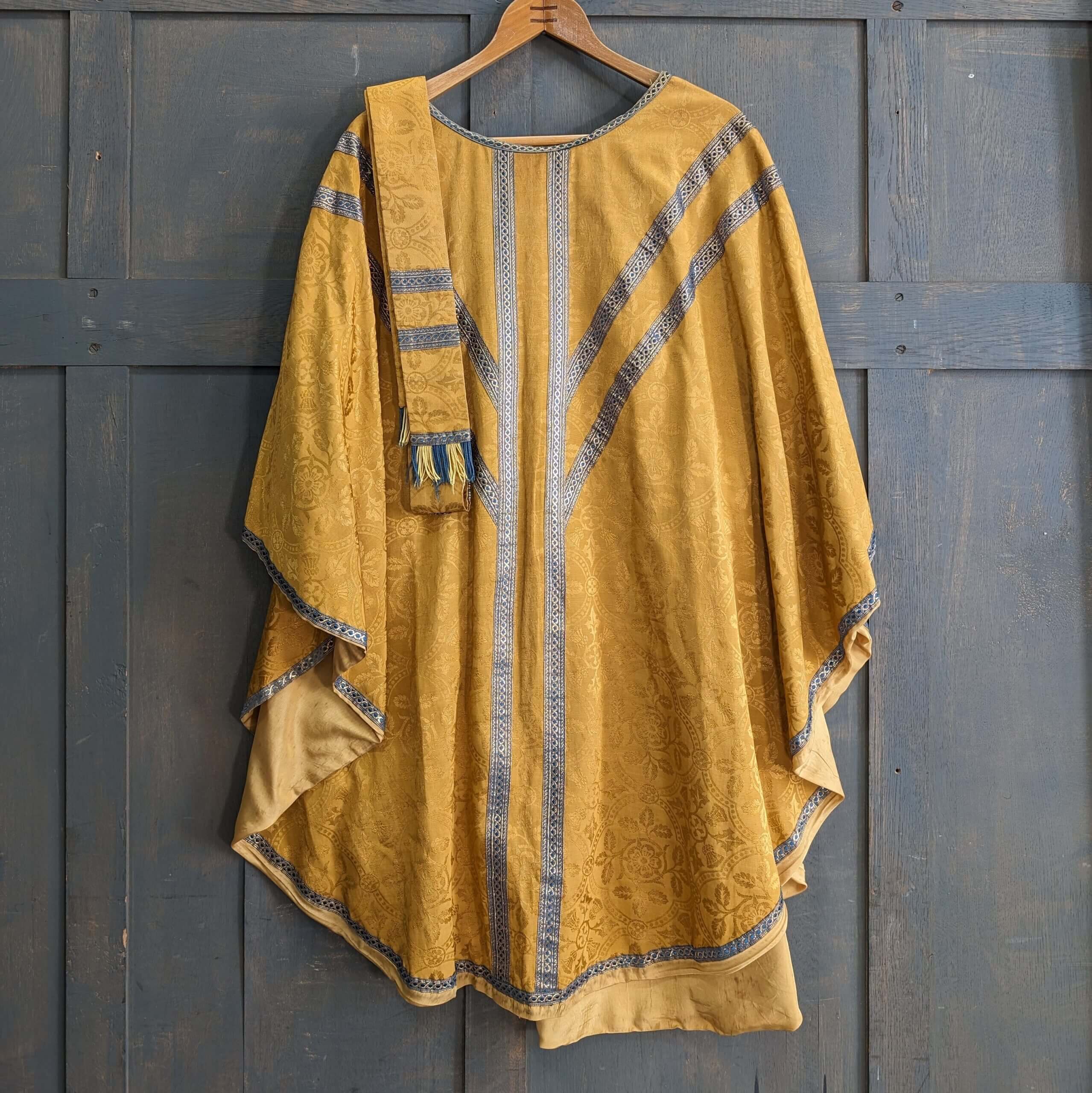 Lovely 1940’s Vintage Embroidered Umber & Gold Silk Damask Chasuble with Matching Stole (SOLD)