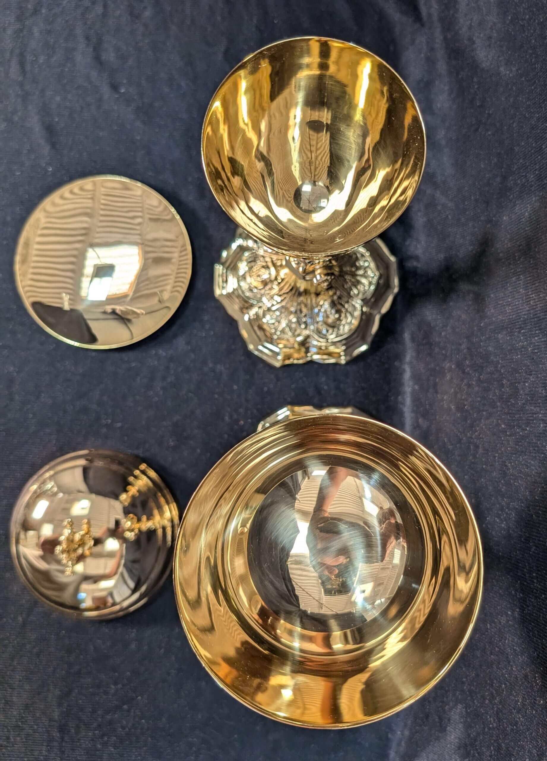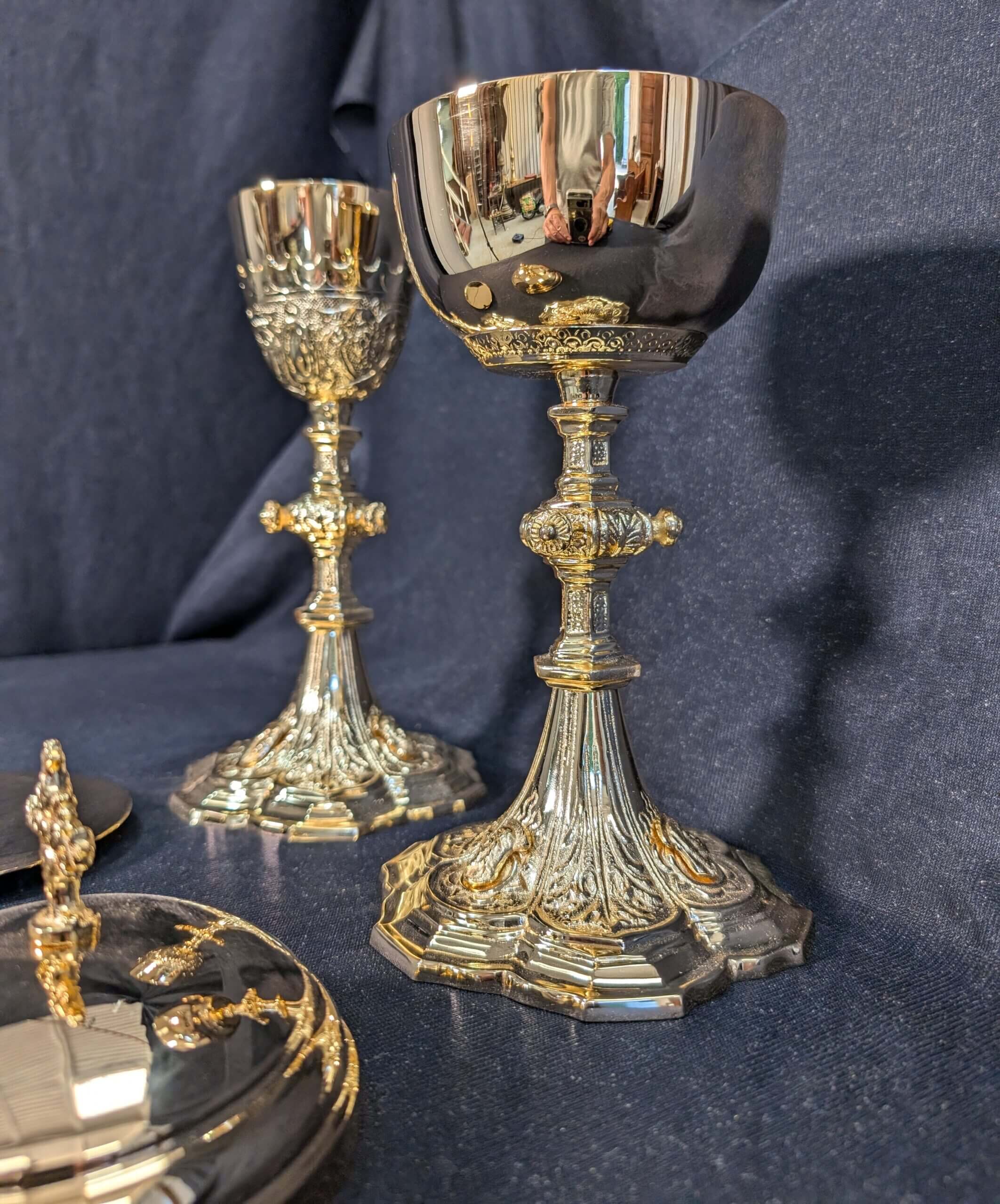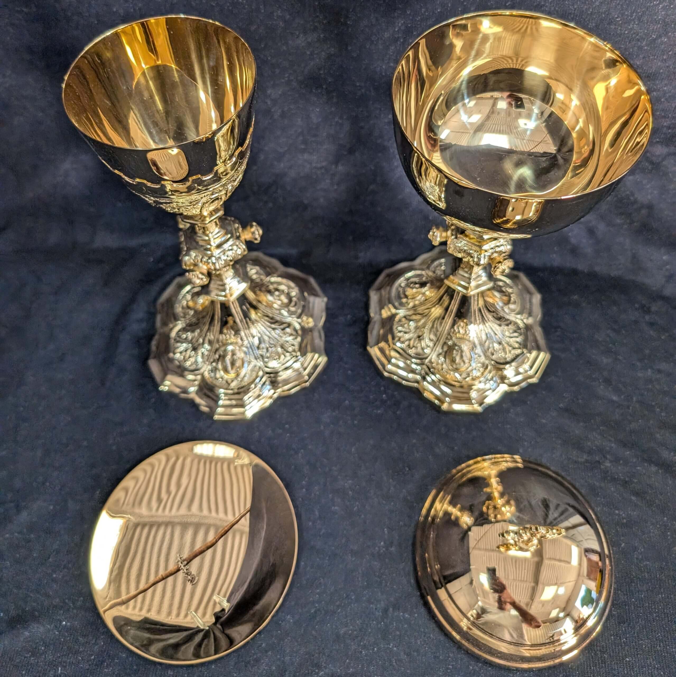 Our product shown on this page Matching Highly Decorative Gold Plated Church Chalice, Paten and Ciborium is currently available for hire.