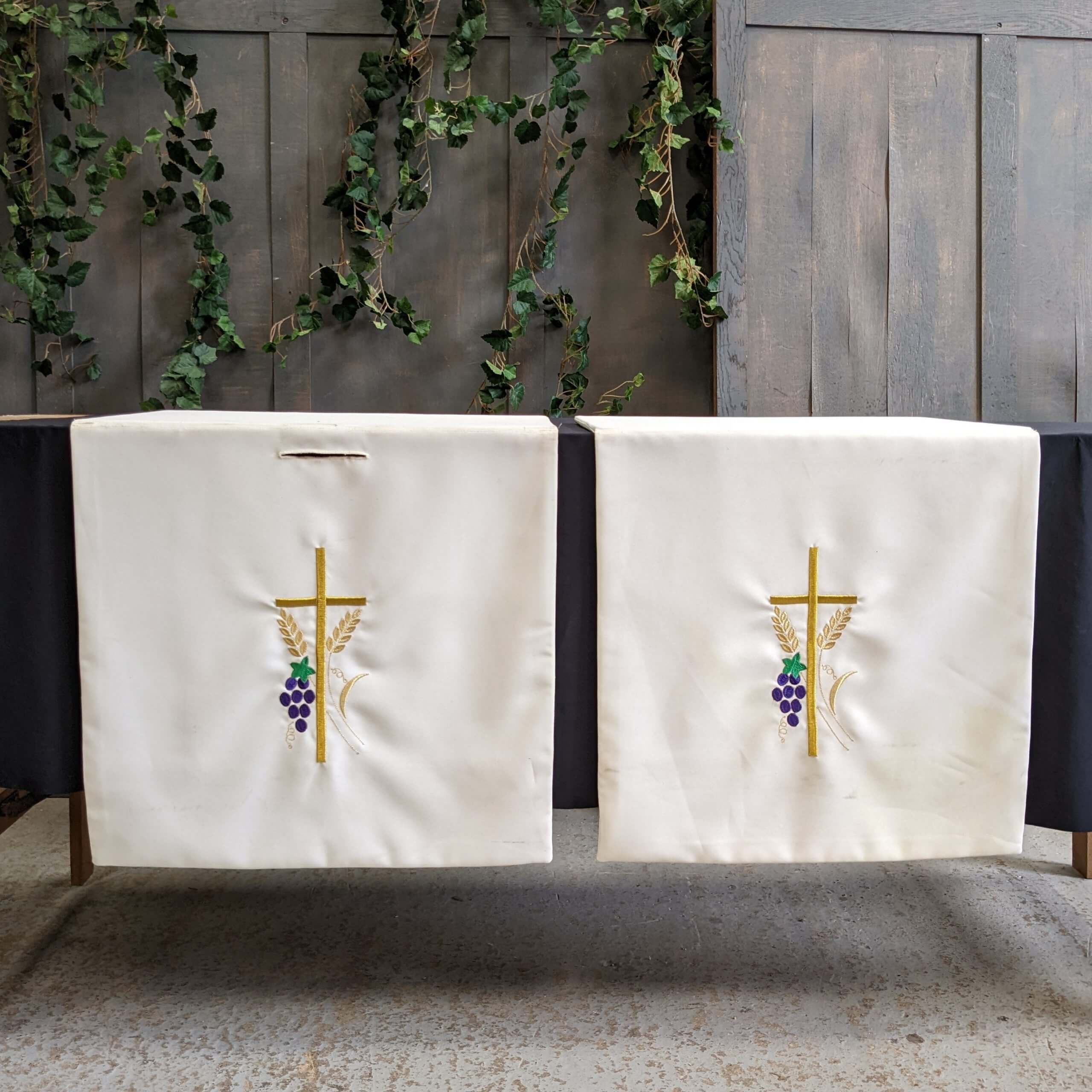 Our product shown on this page Matching Pair of White Modern Harvest Festival Lectern Hangings (SOLD) is currently available for hire.
