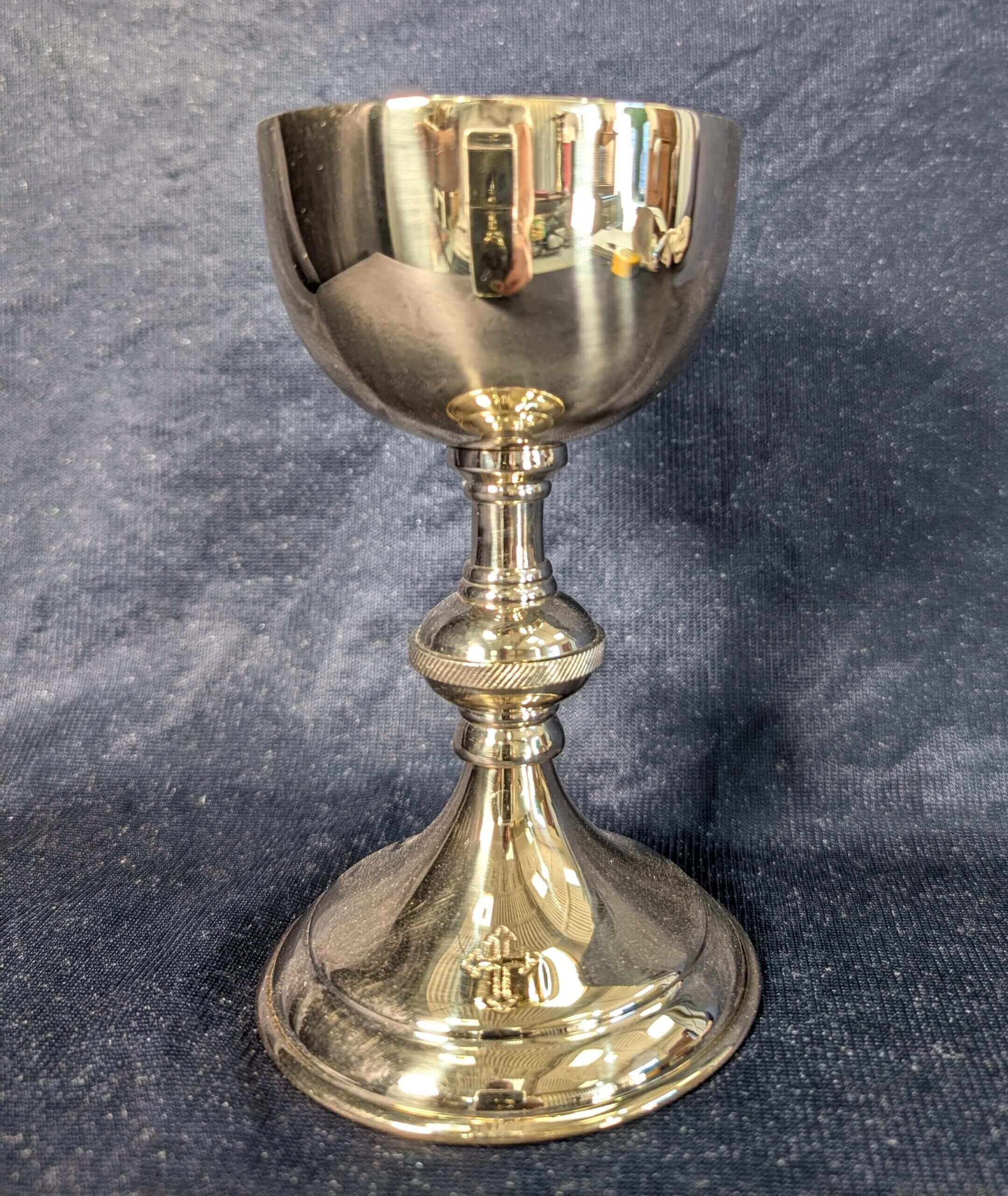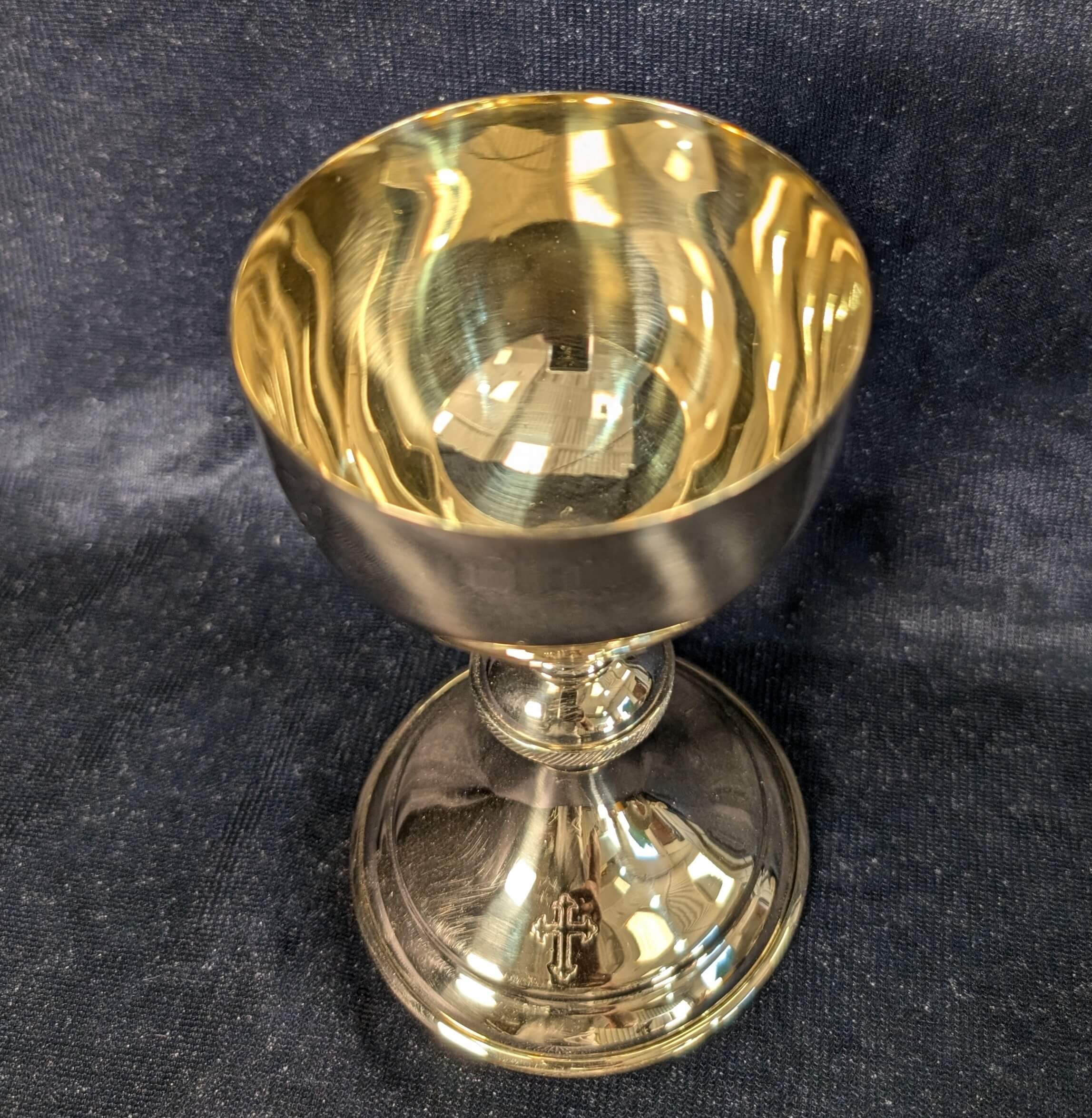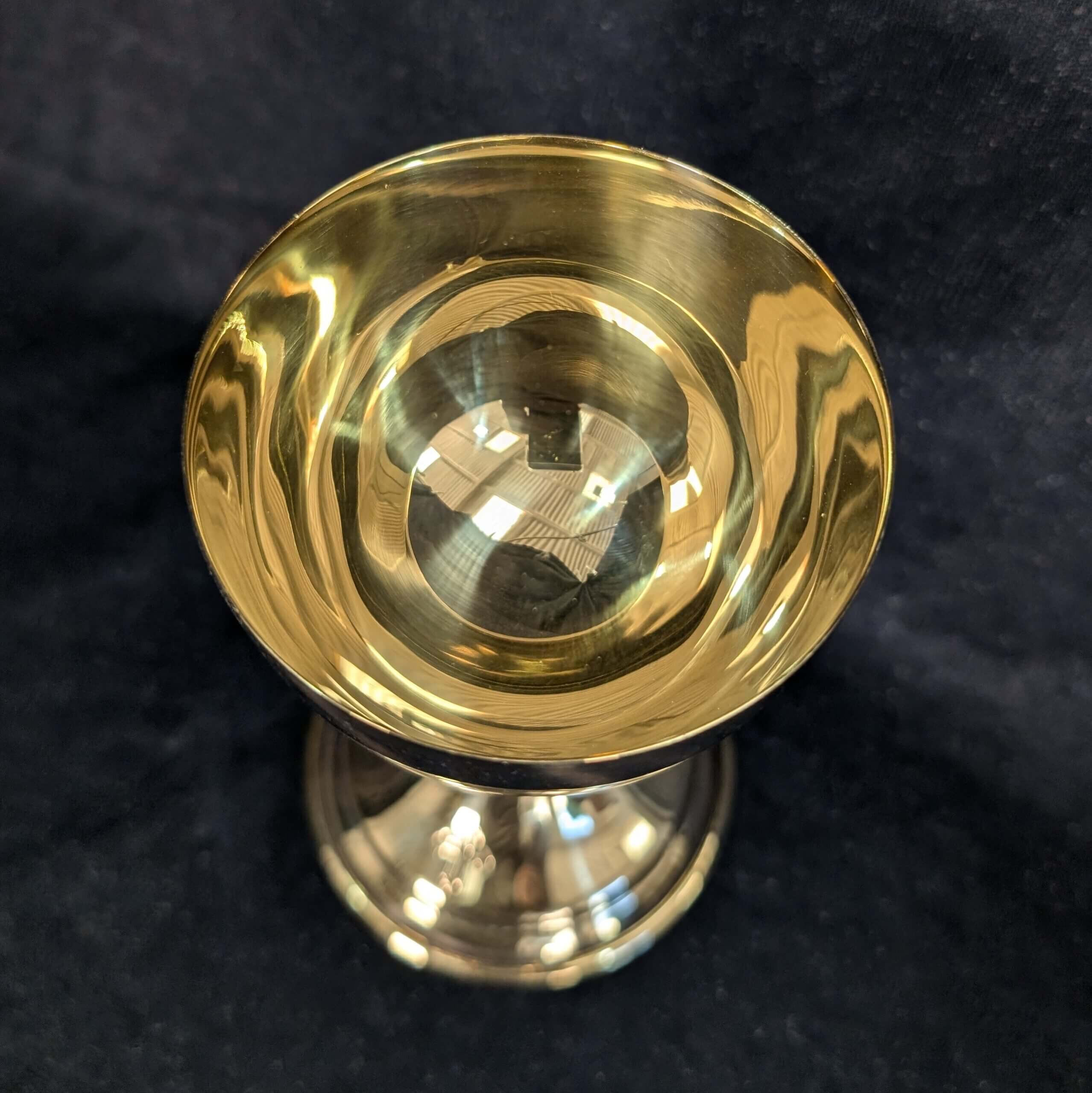 Our product shown on this page Medium Size Gilt Brass Classical Shaped Church Chalice with Embossed Cross is currently available for hire.
