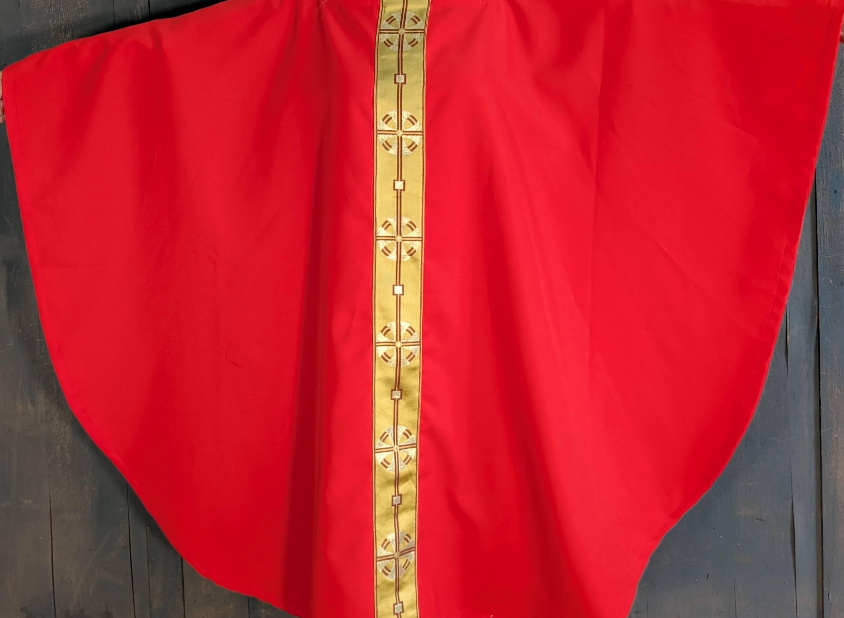 Our product shown on this page Medium Size Red Chasuble with Broad Gold Orphreys is currently available for hire.