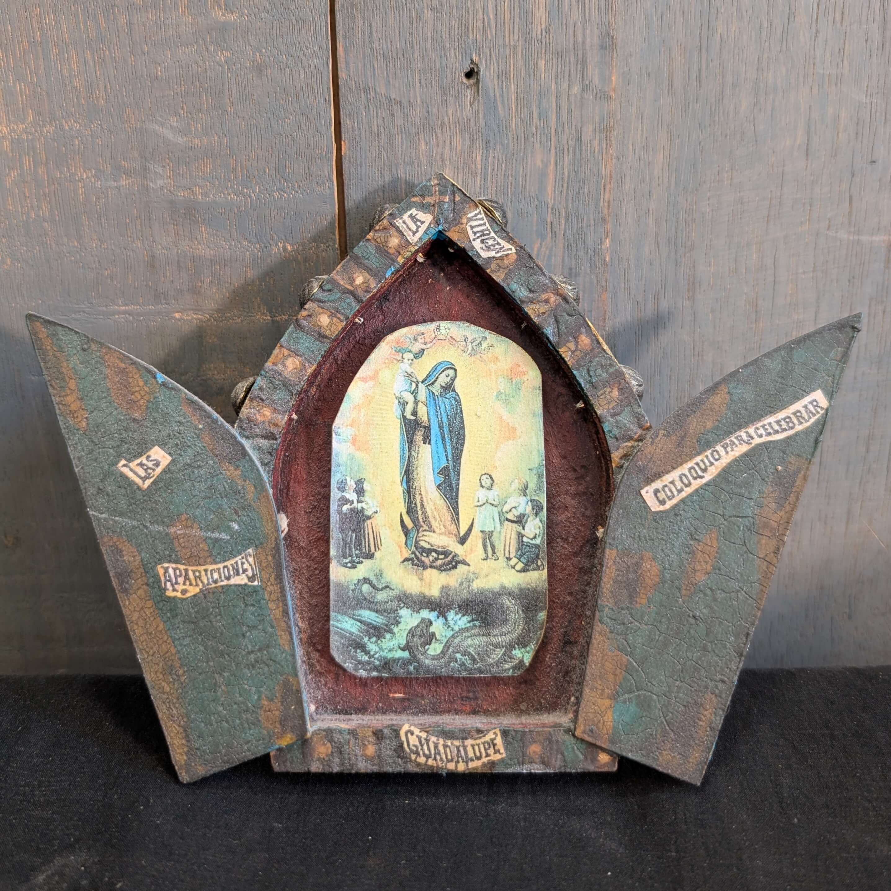 Our product shown on this page Mexican Folk Art Travel Shrine of Our Lady of Guadalupe (SOLD) is currently available for hire.
