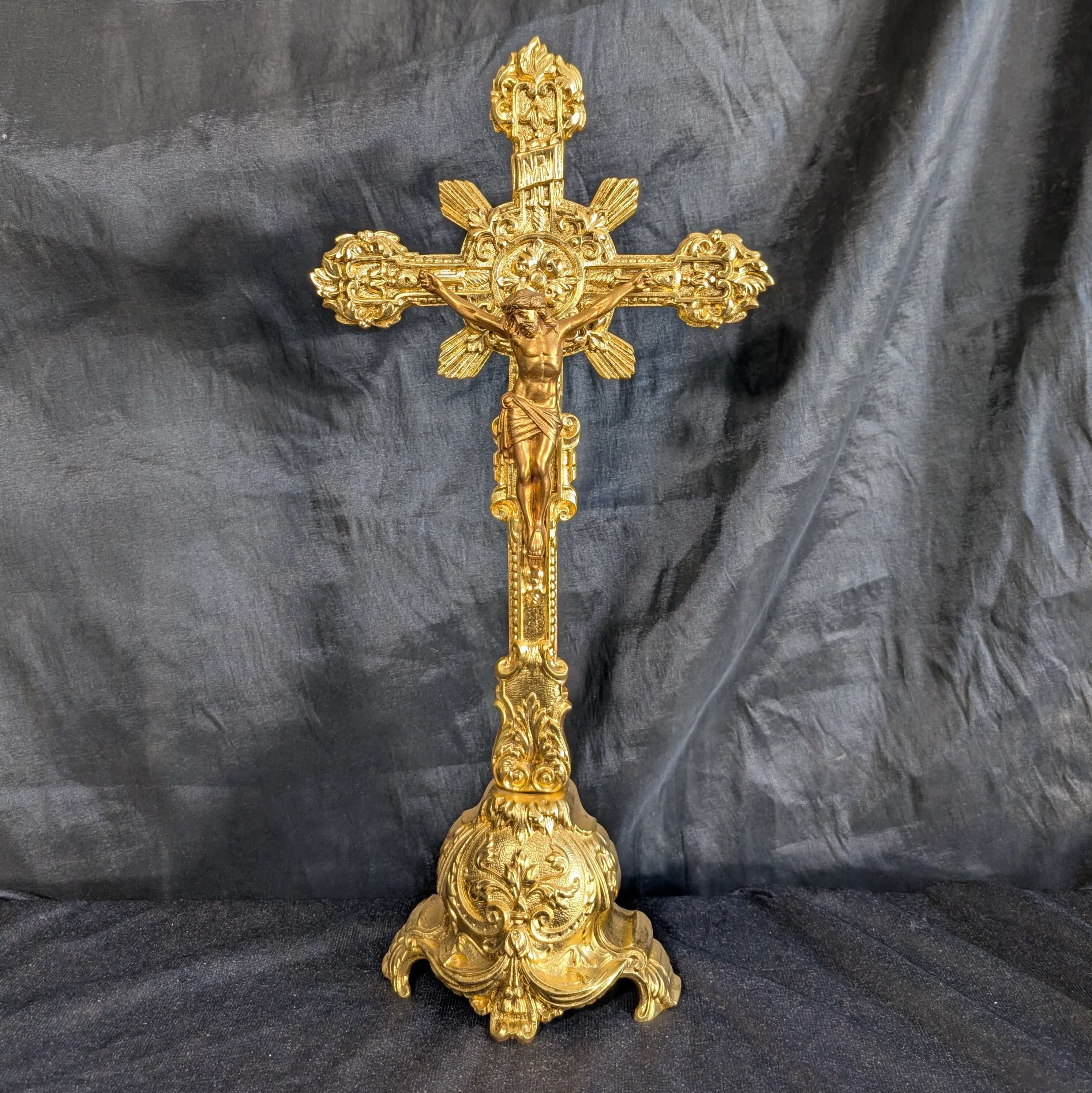 Our product shown on this page Mid- 19th Century French Highly Ornate 24 K Gold Gilt Bronze Altar Crucifix (SOLD) is currently available for hire.