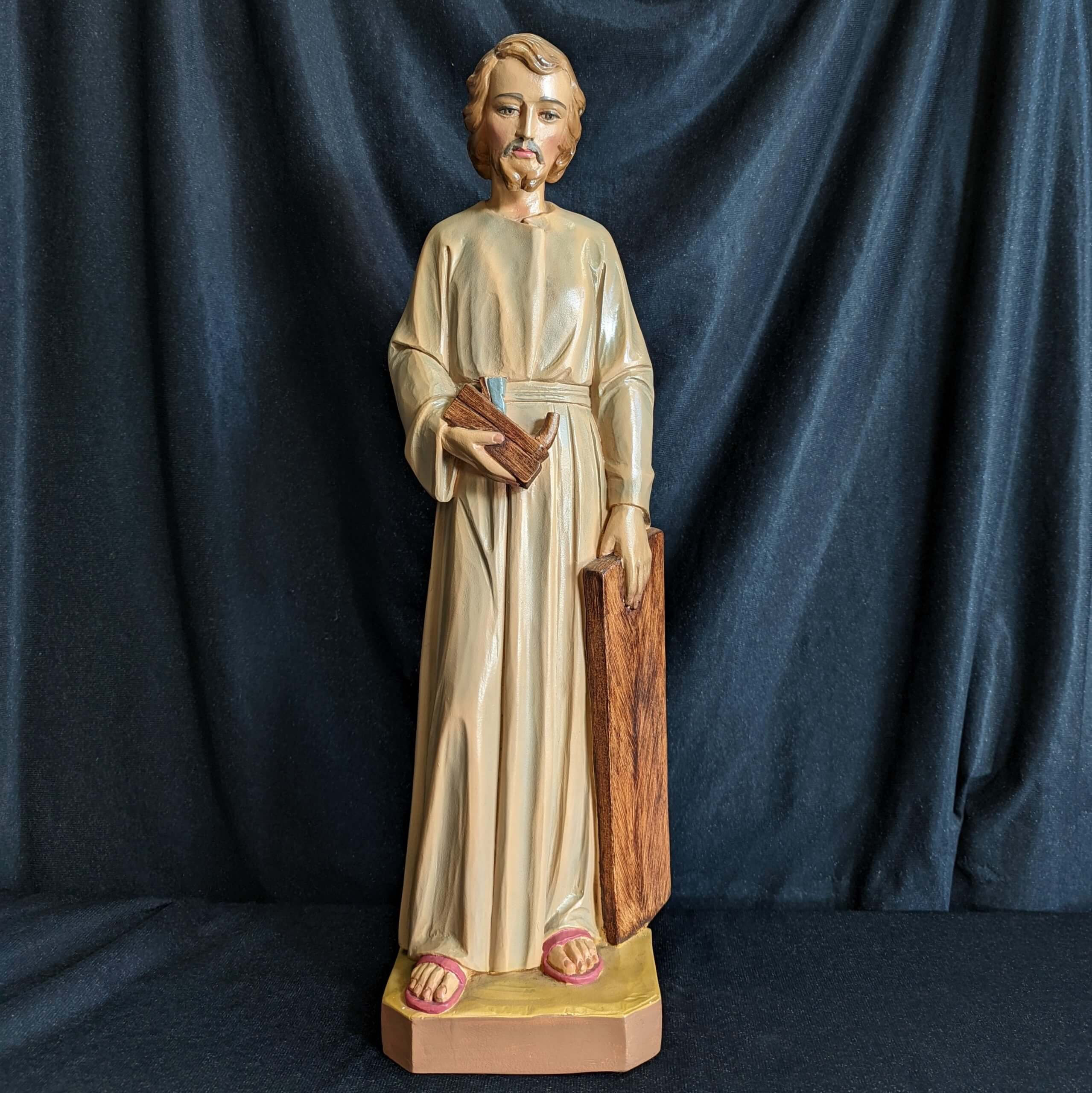Our product shown on this page Mid-Size Handpainted Contemporary Fibreglass Statue of St Joseph the Worker (SOLD) is currently available for hire.