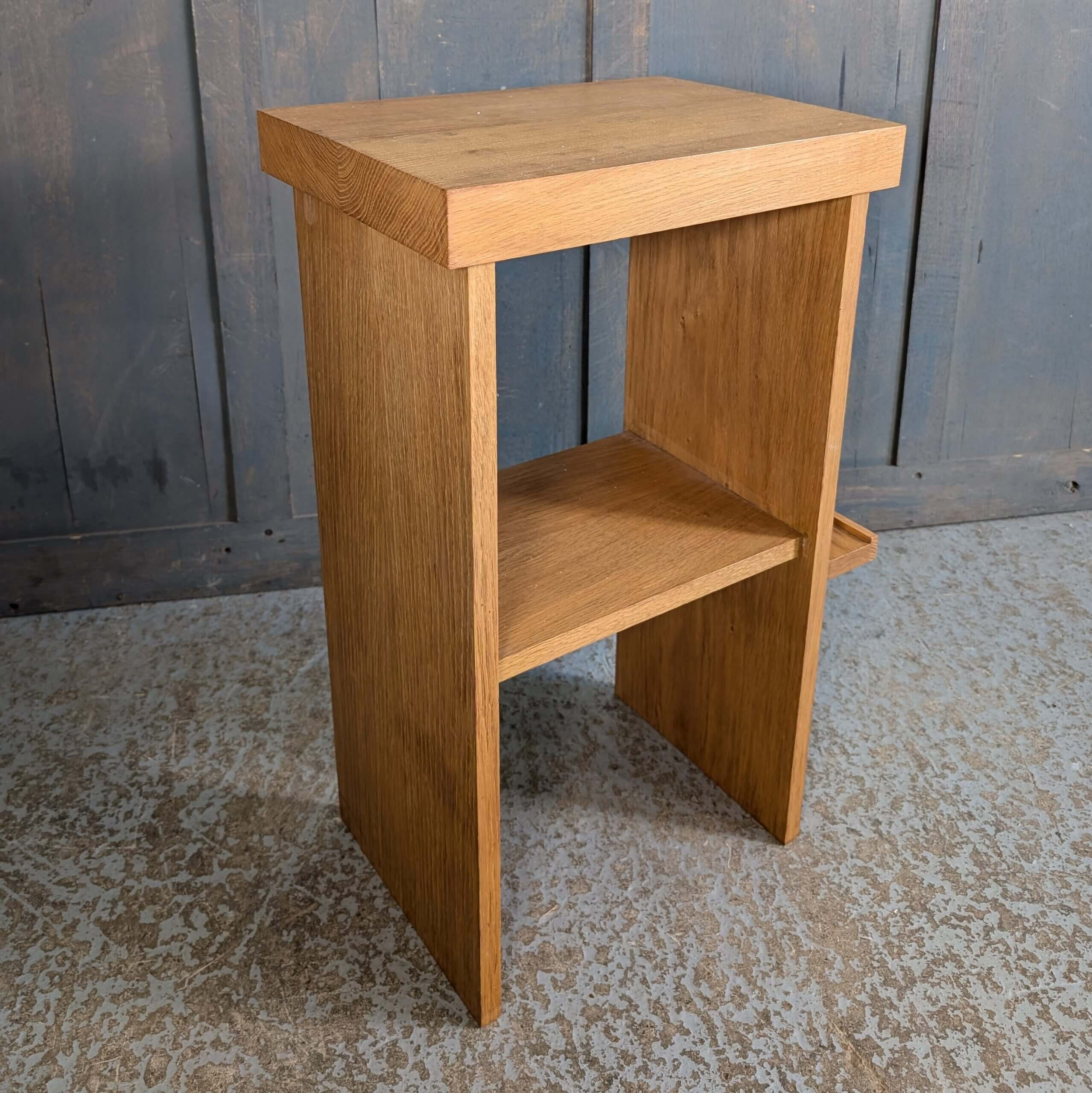 Our product shown on this page Modern Heavy Pale Oak Small Credence Table with Handy Shelf from St Barnabas Epsom (SOLD) is currently available for hire.