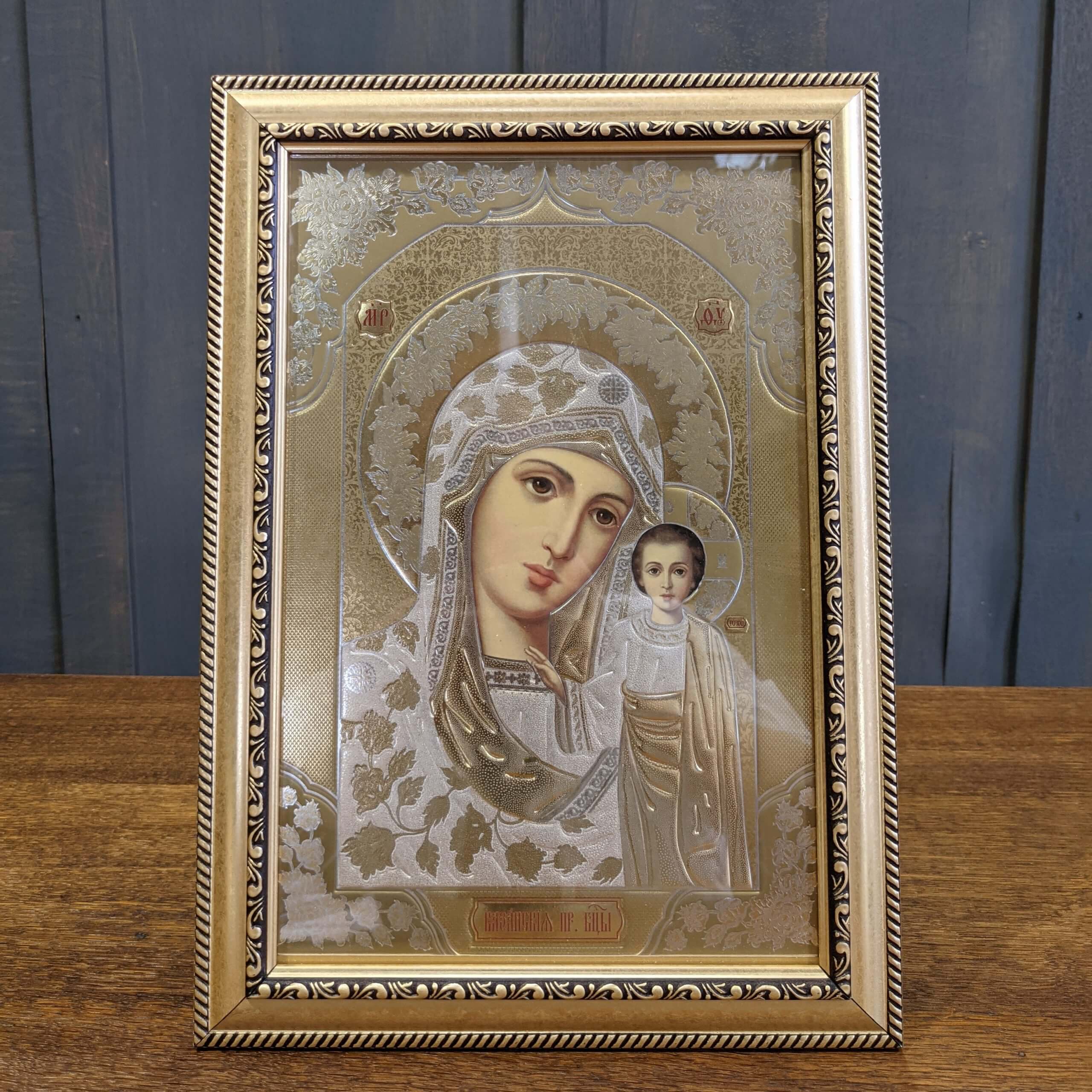 Our product shown on this page Modern Large Russian Gold Icon of the Madonna (SOLD) is currently available for hire.