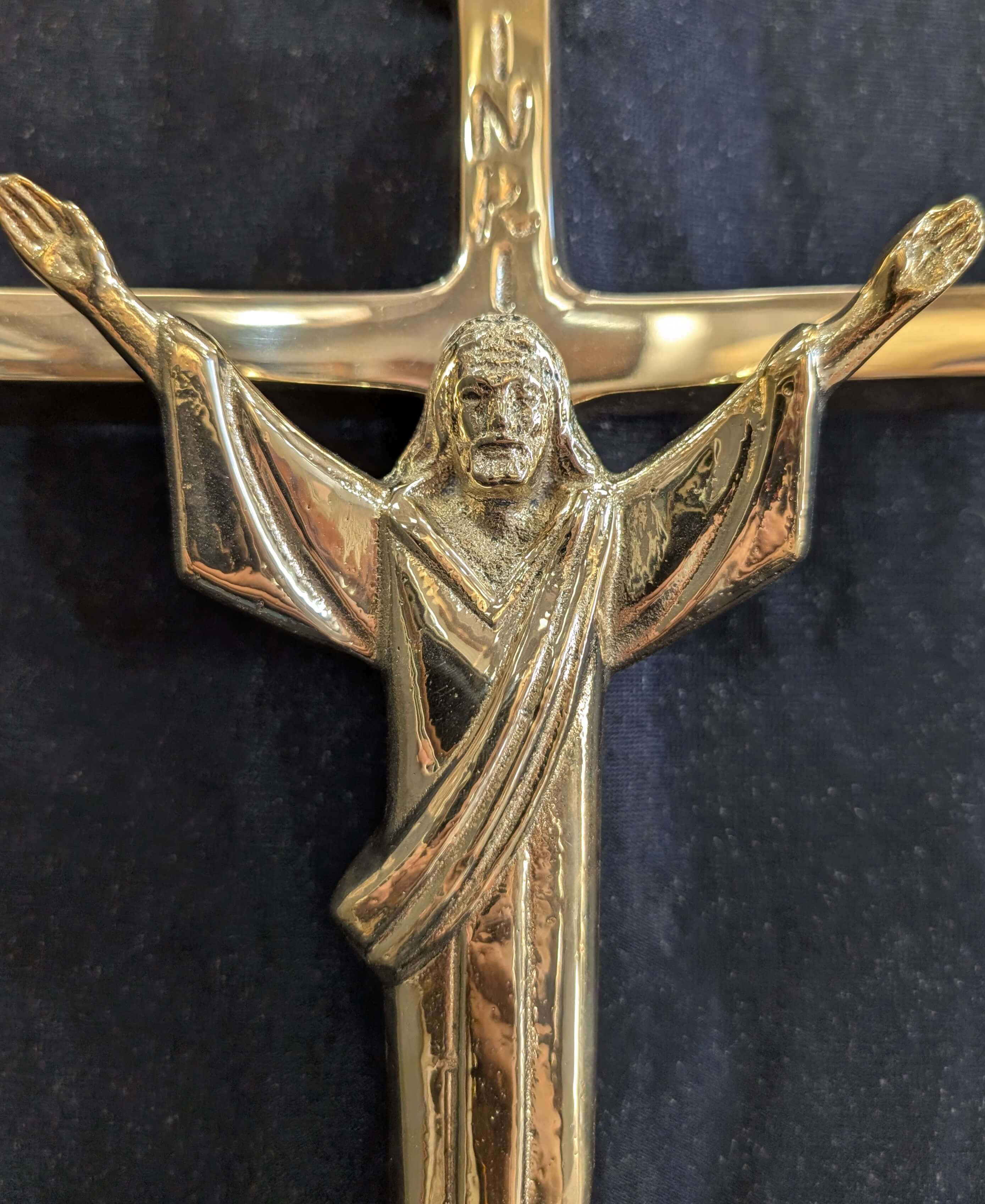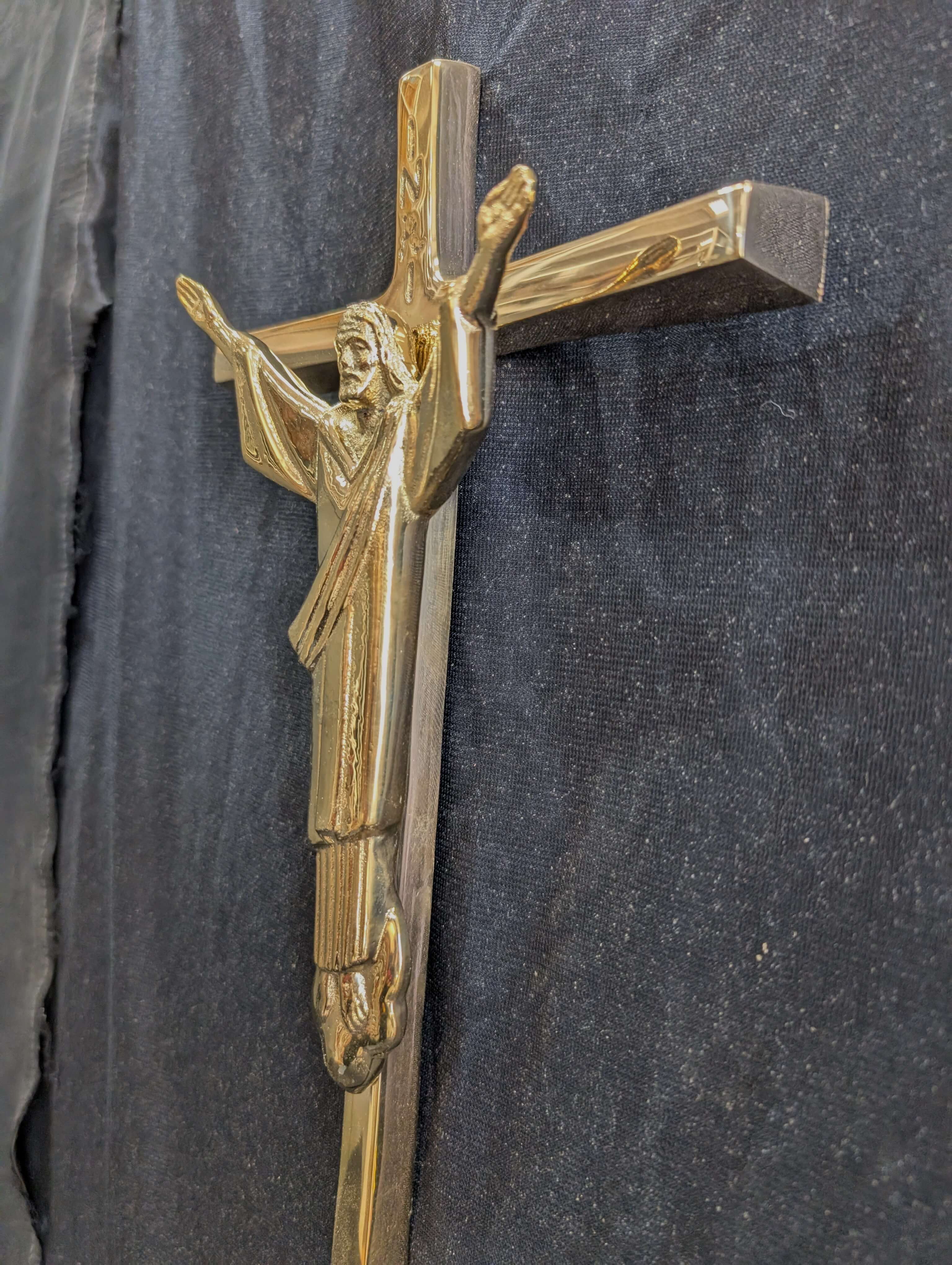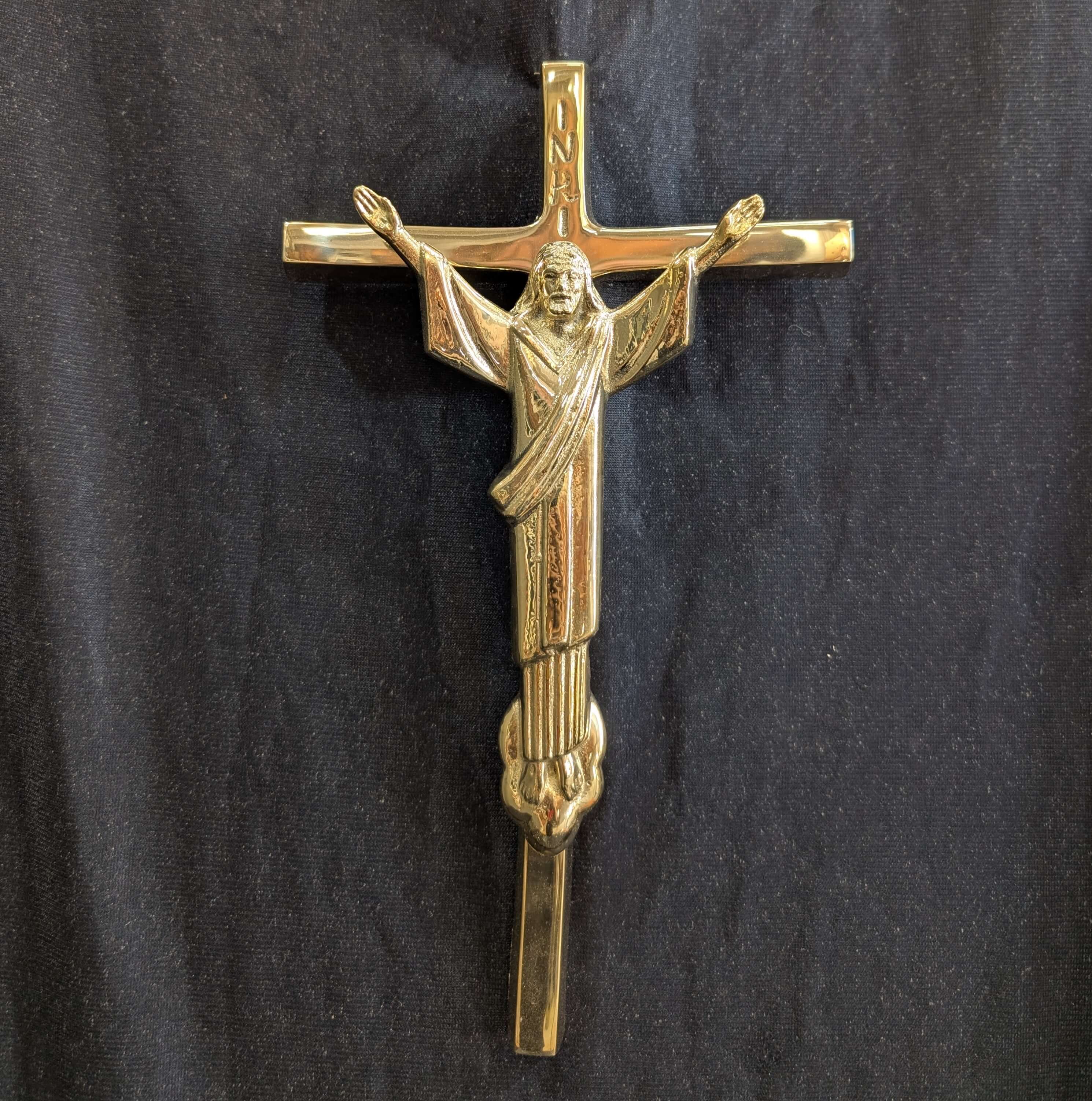 Our product shown on this page Modern Polished Brass ‘Christ the Redeemer’ Wall Hanging Crucifix RESERVED is currently available for hire.