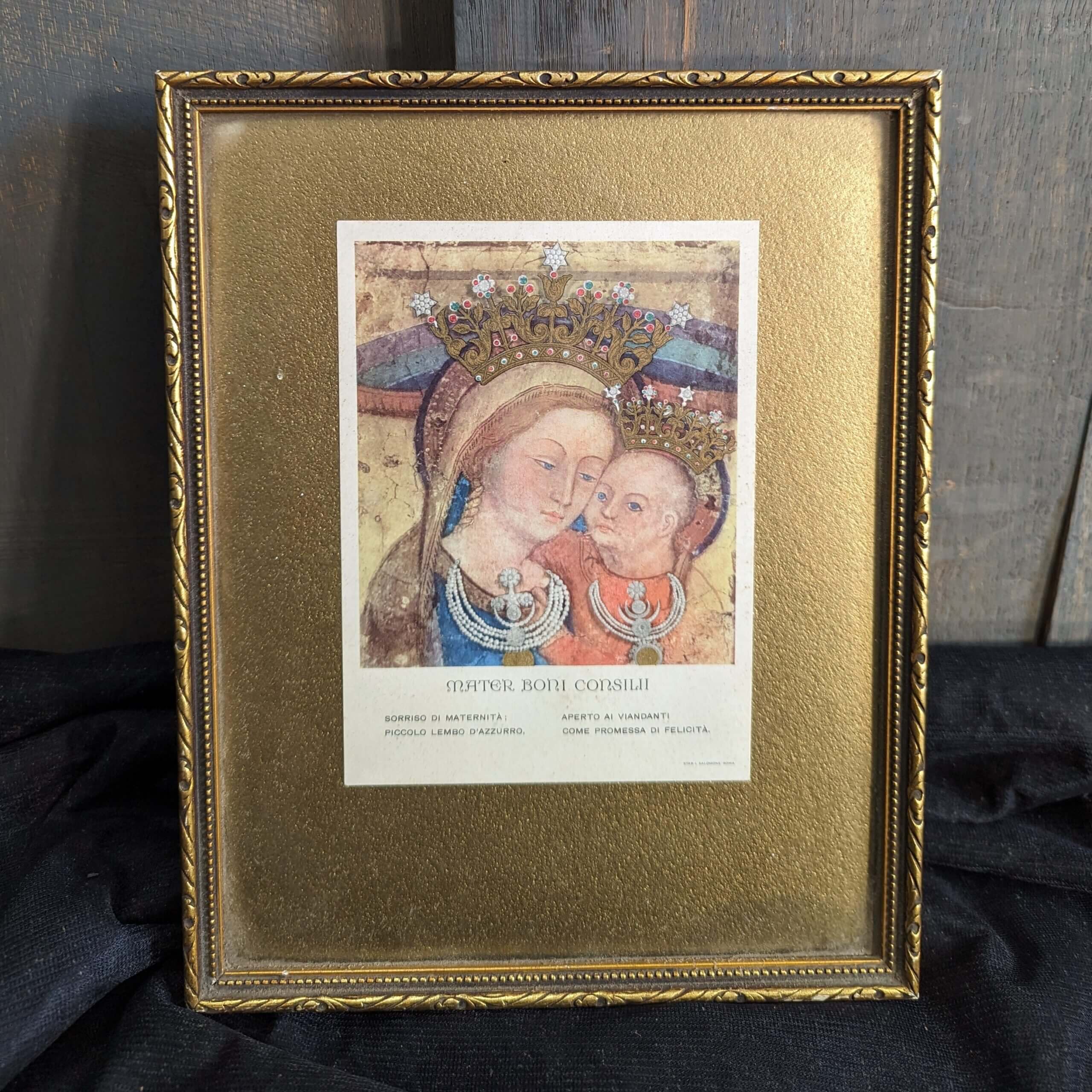 Our product shown on this page Mother of Good Counsel Small Framed Italian Print (SOLD) is currently available for hire.