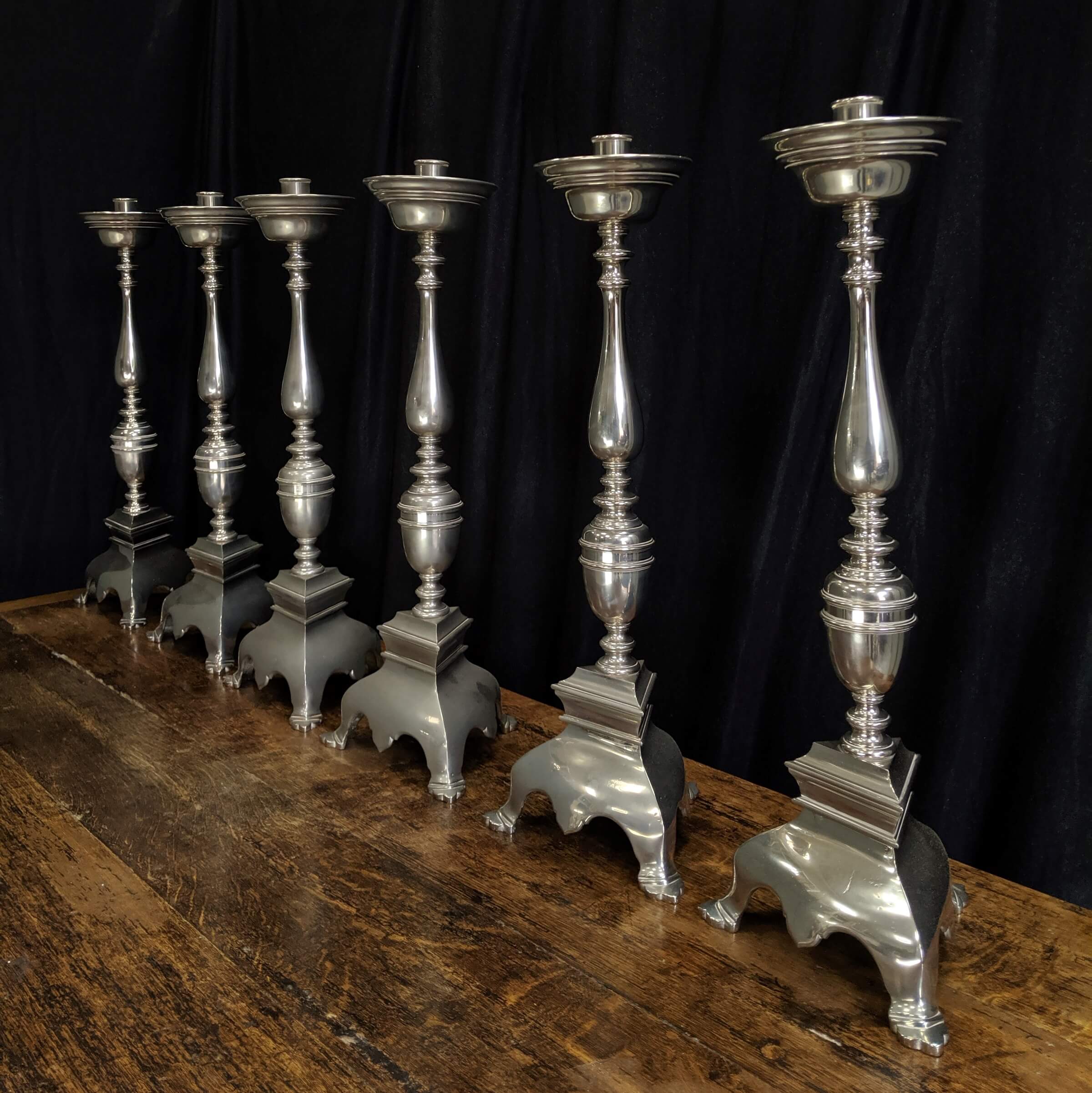 Original Antique English Georgian Style Silver Plated ‘Big Six’ Set of Altar Candlesticks (G) (SOLD)