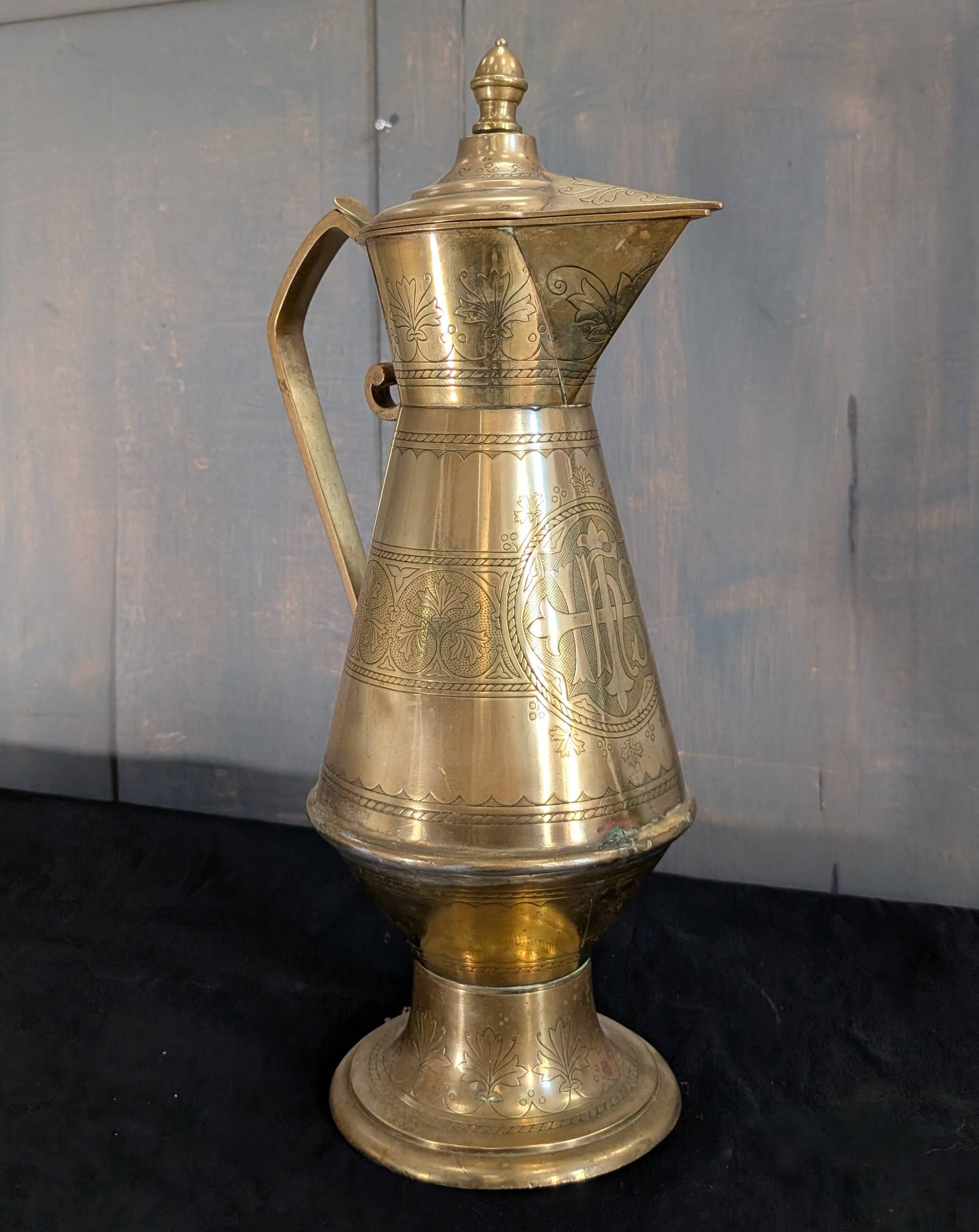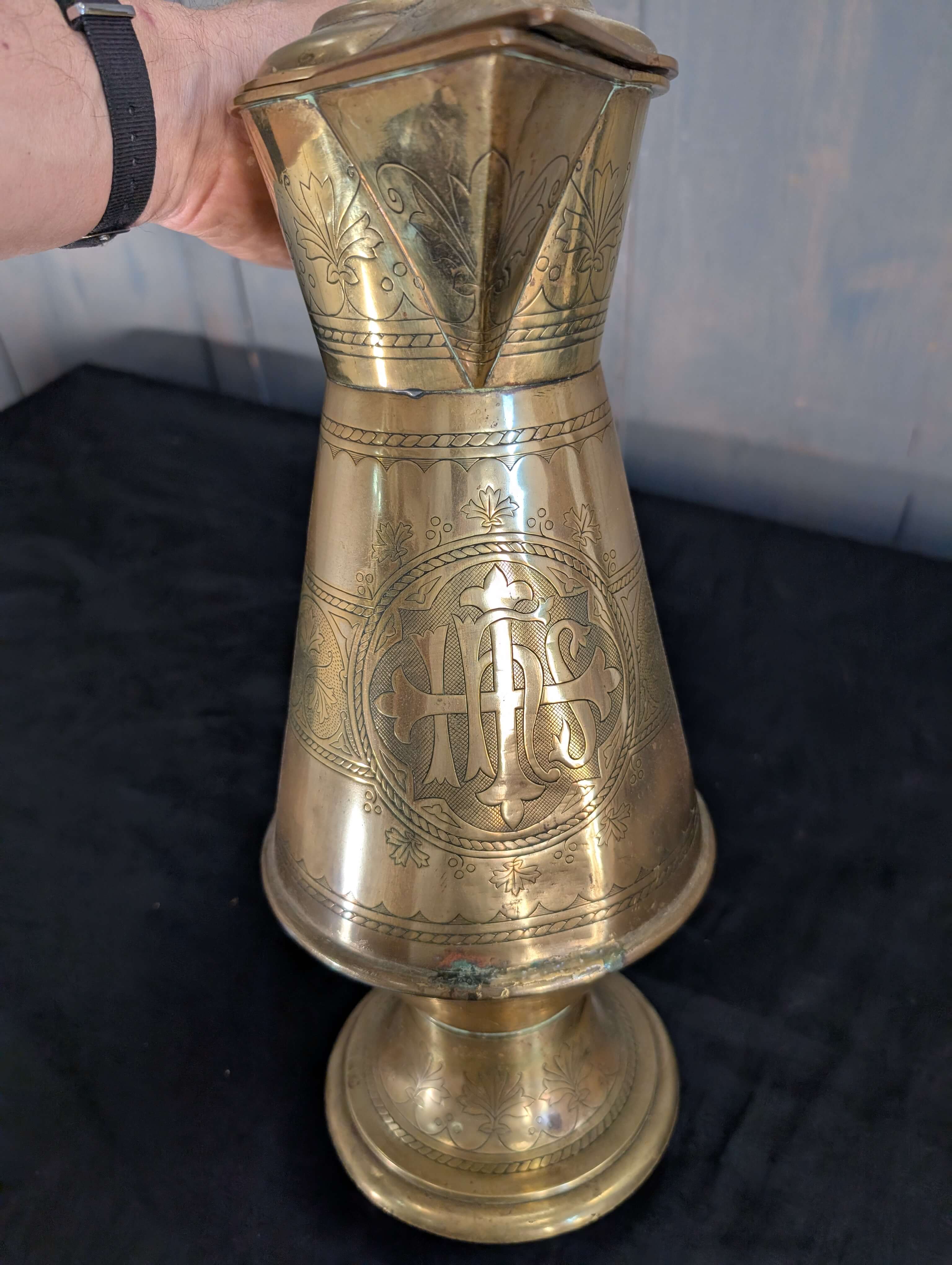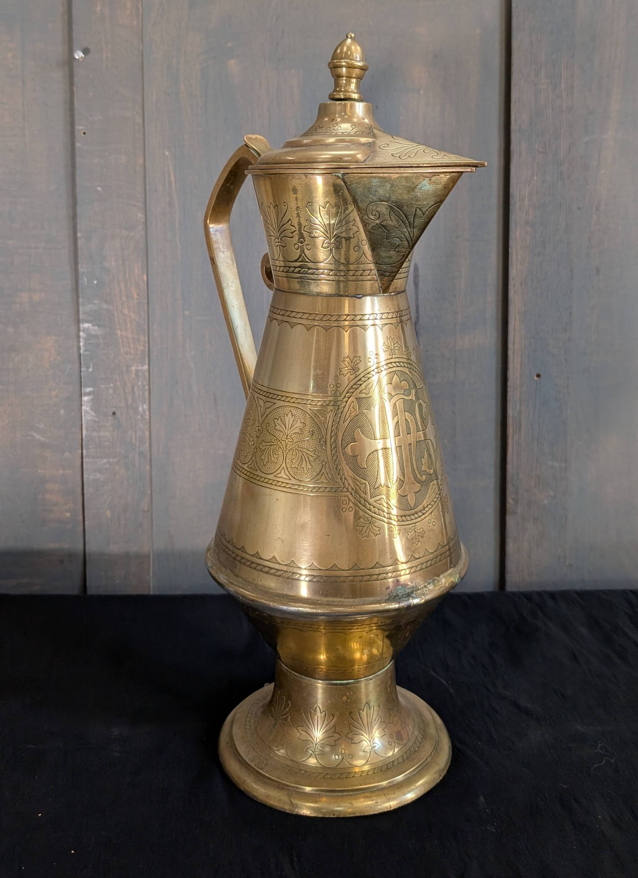 Our product shown on this page Ornate Highly Detailed Victorian Brass Baptismal Ewer Jug is currently available for hire.