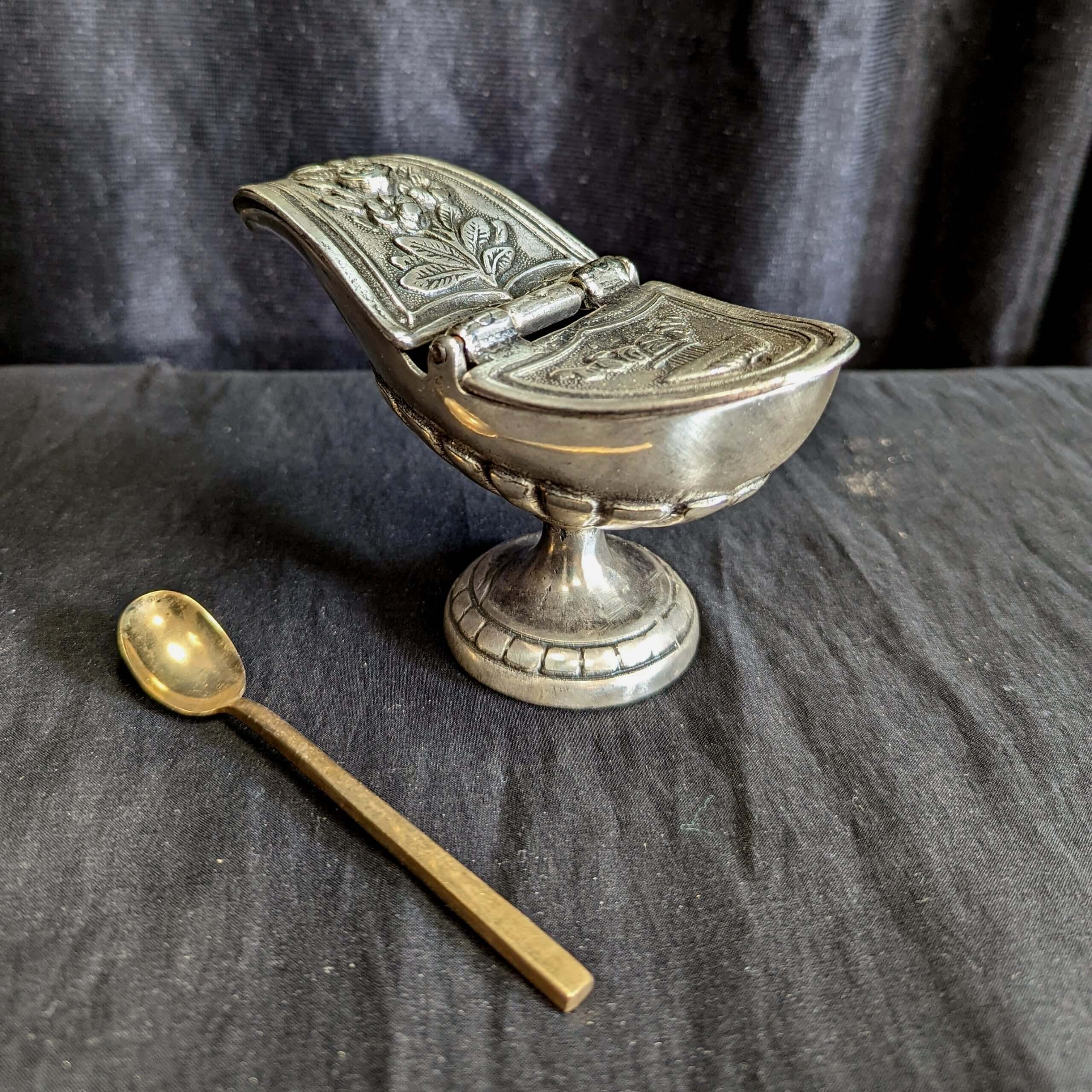 Our product shown on this page Ornate & Interesting Heavy Vintage Plated Brass Incense Boat with Spoon (SOLD) is currently available for hire.