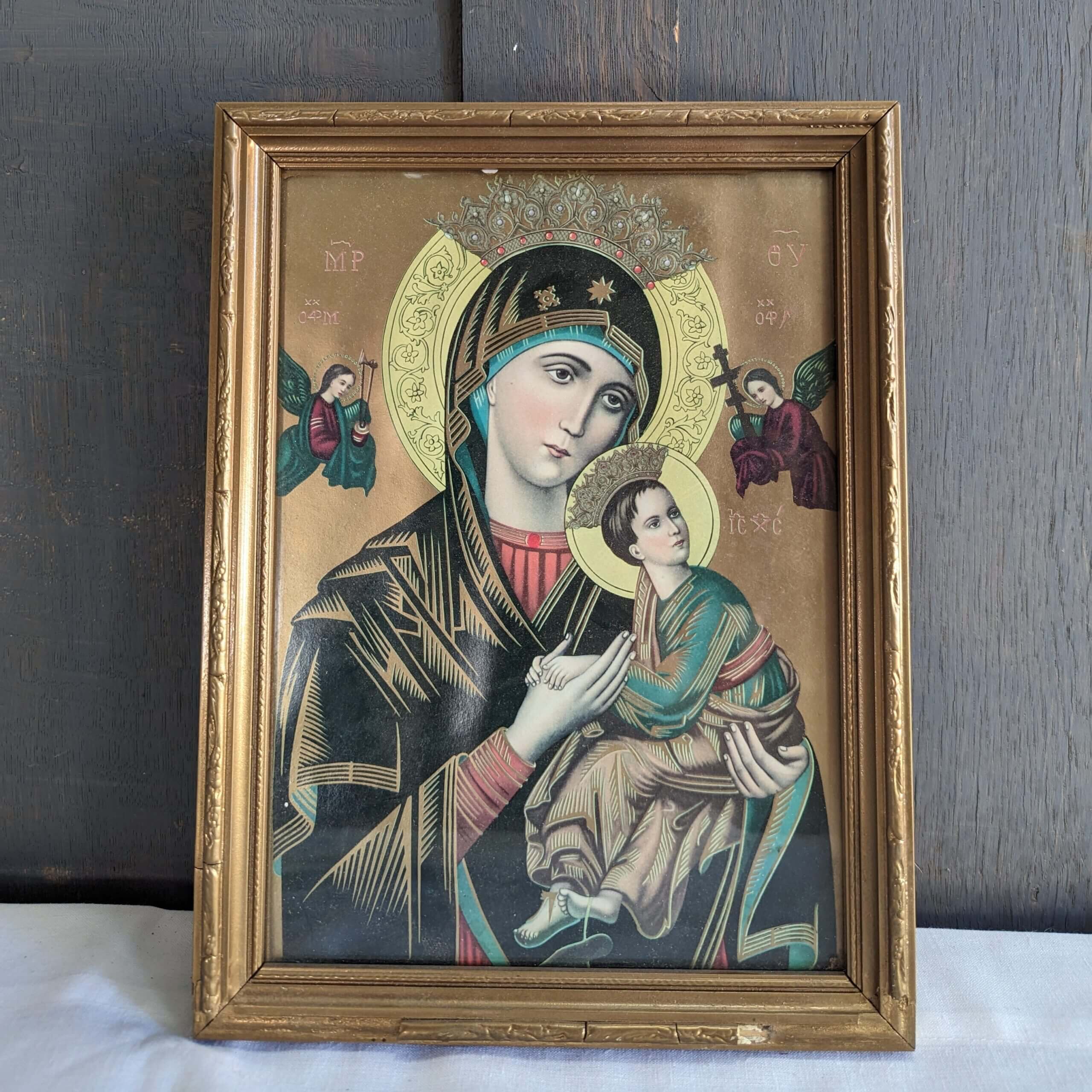 Our product shown on this page Our Lady of Perpetual Help Gold Framed Vintage Print (SOLD) is currently available for hire.