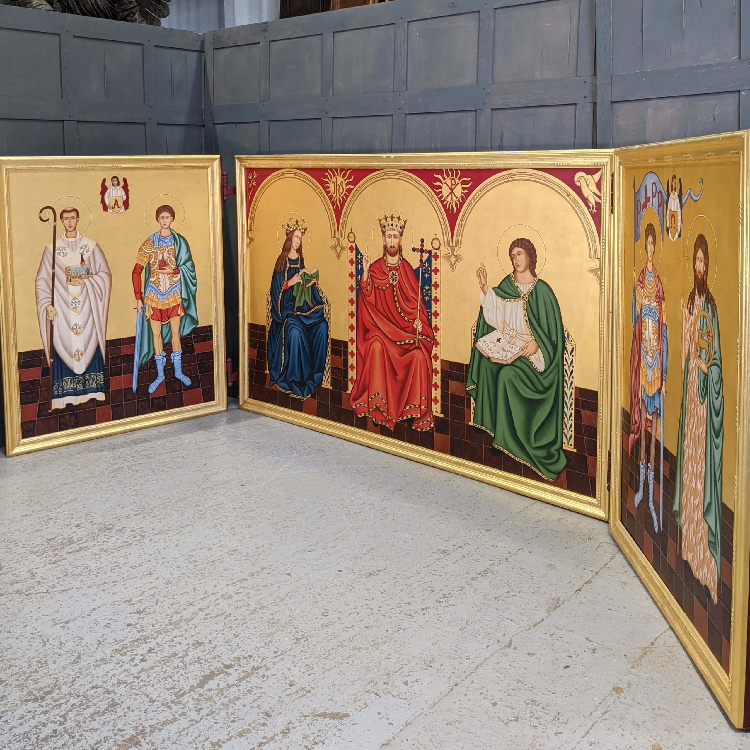 Outsize Handpainted Golden Triptych with Christ & Saints (SOLD)