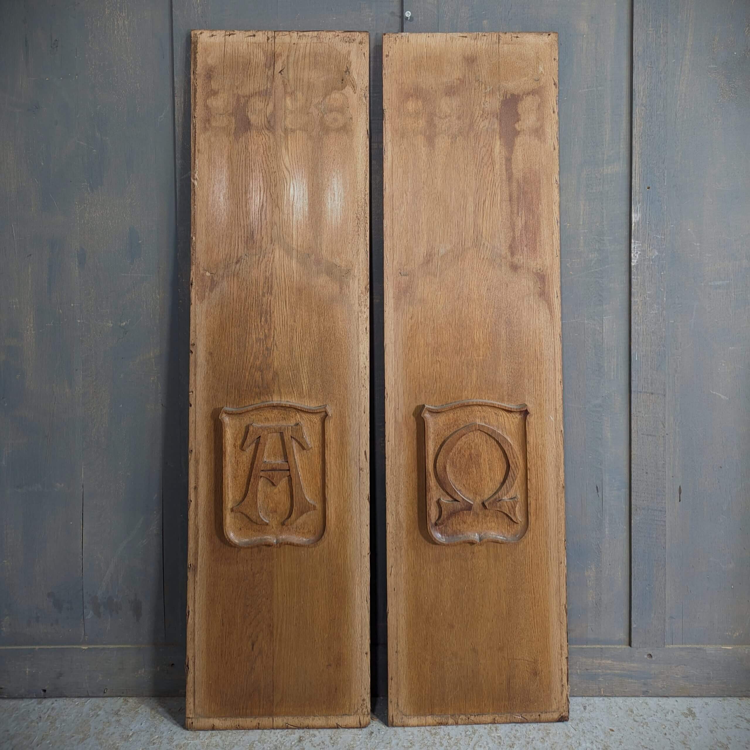 Pair of Antique Oak Alpha & Omega Panels from a Reredos (SOLD)