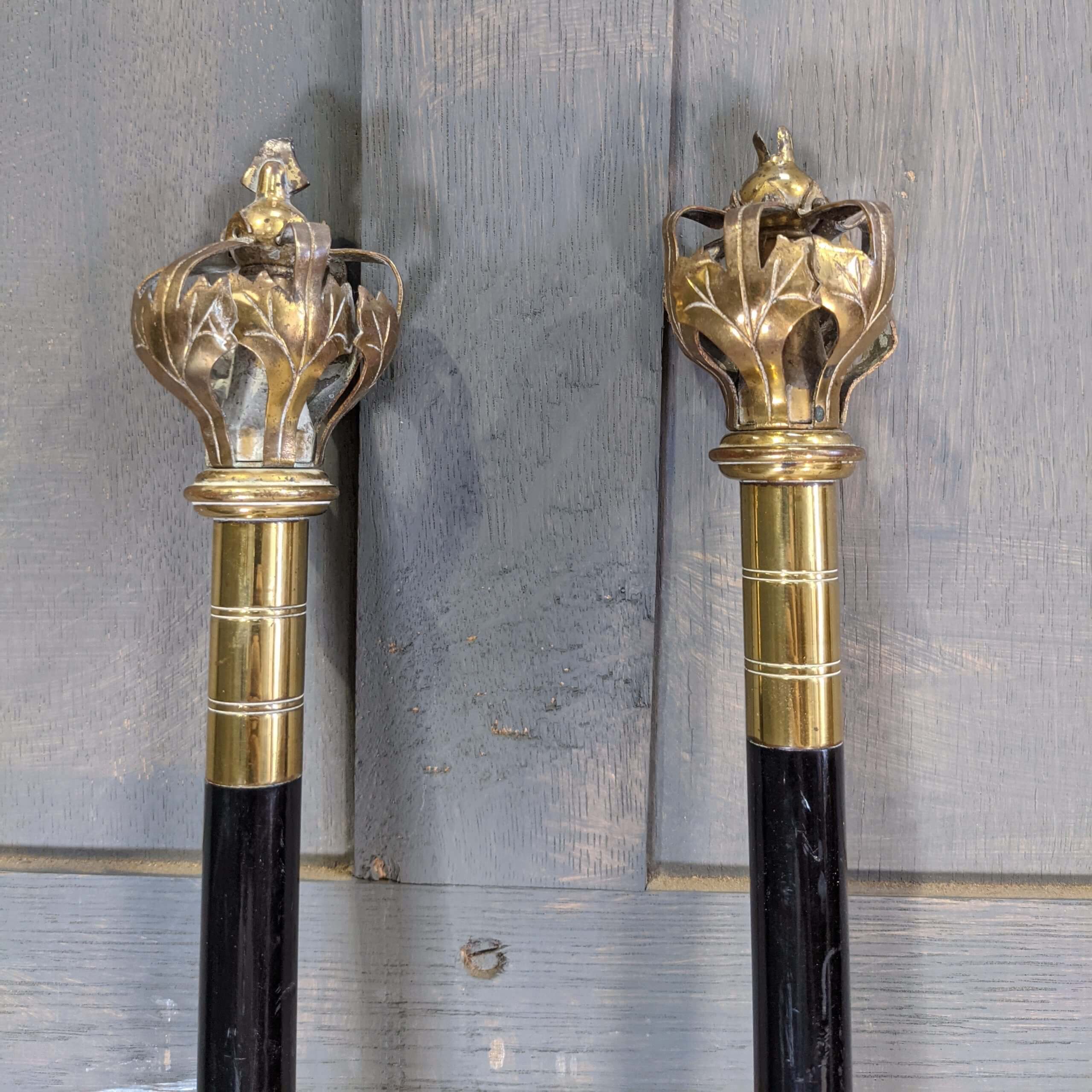 Pair of Brass & Lacquered Oak Wardens Staves with Crowns (SOLD)