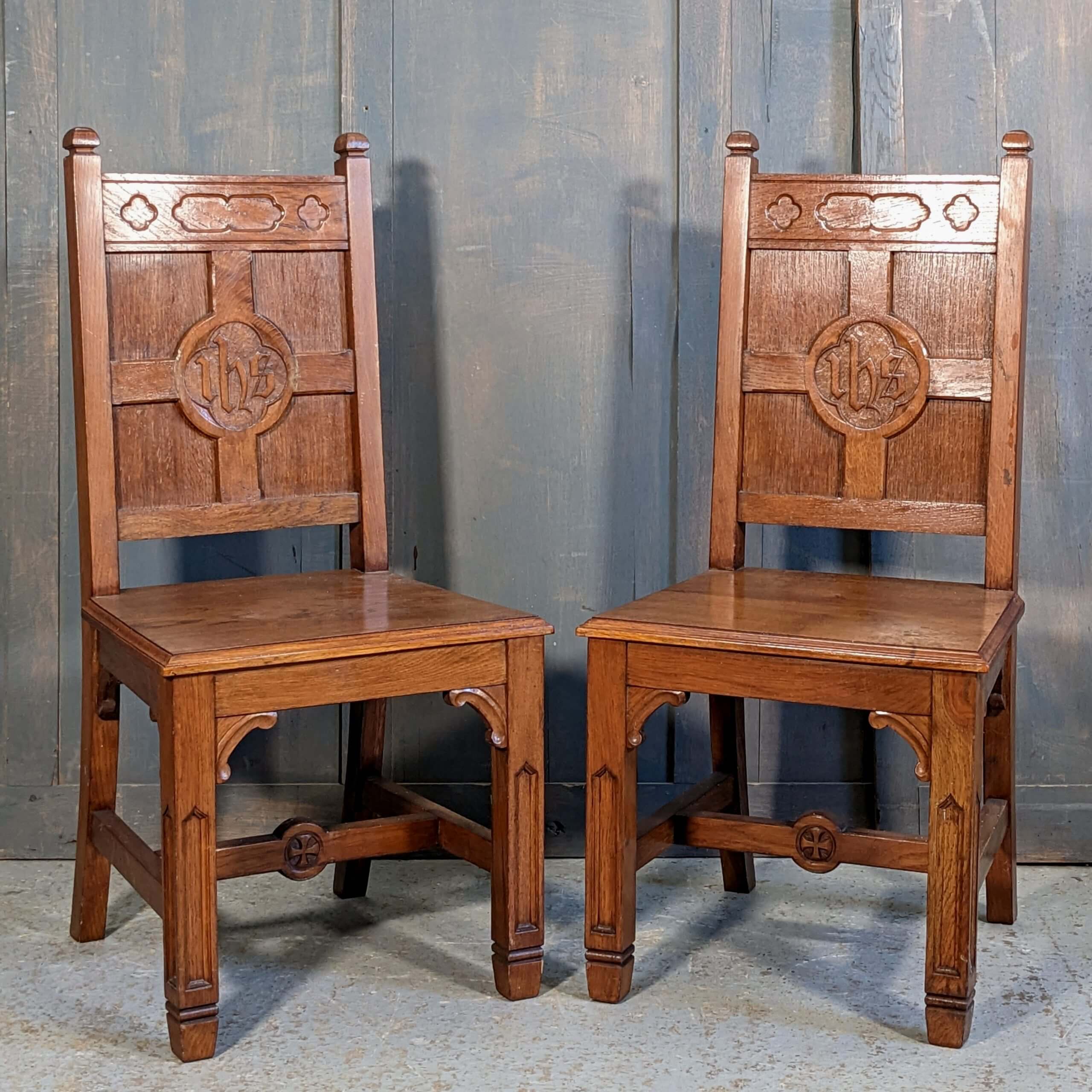 Two fine clergy chairs from this tiny church near Cromer in Norfolk.  Seat Height 44cm  Seat Depth 38cm