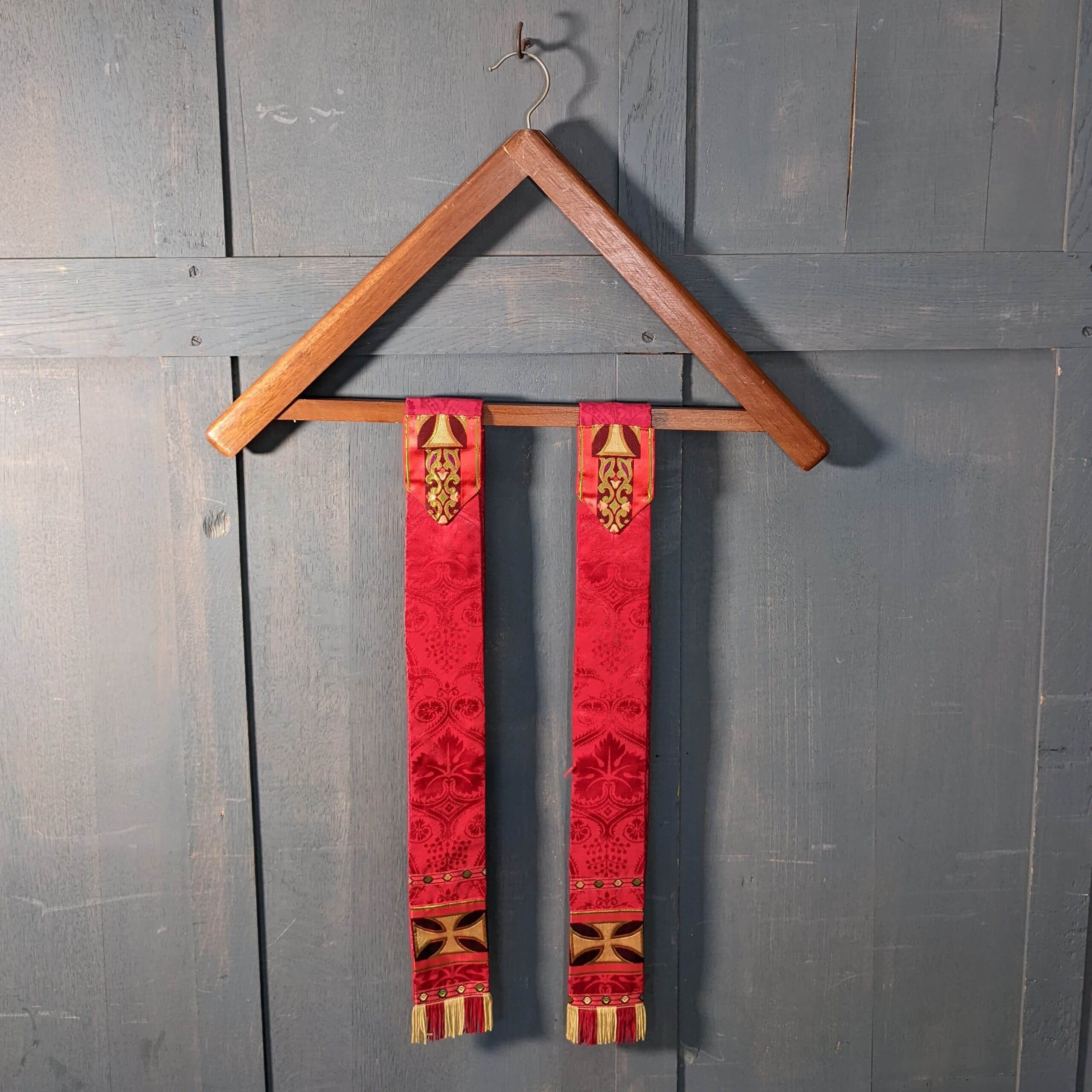 Our product shown on this page Pair of Vintage Red Damask Maniples with Crosses & Two Tone Fringing (SOLD) is currently available for hire.