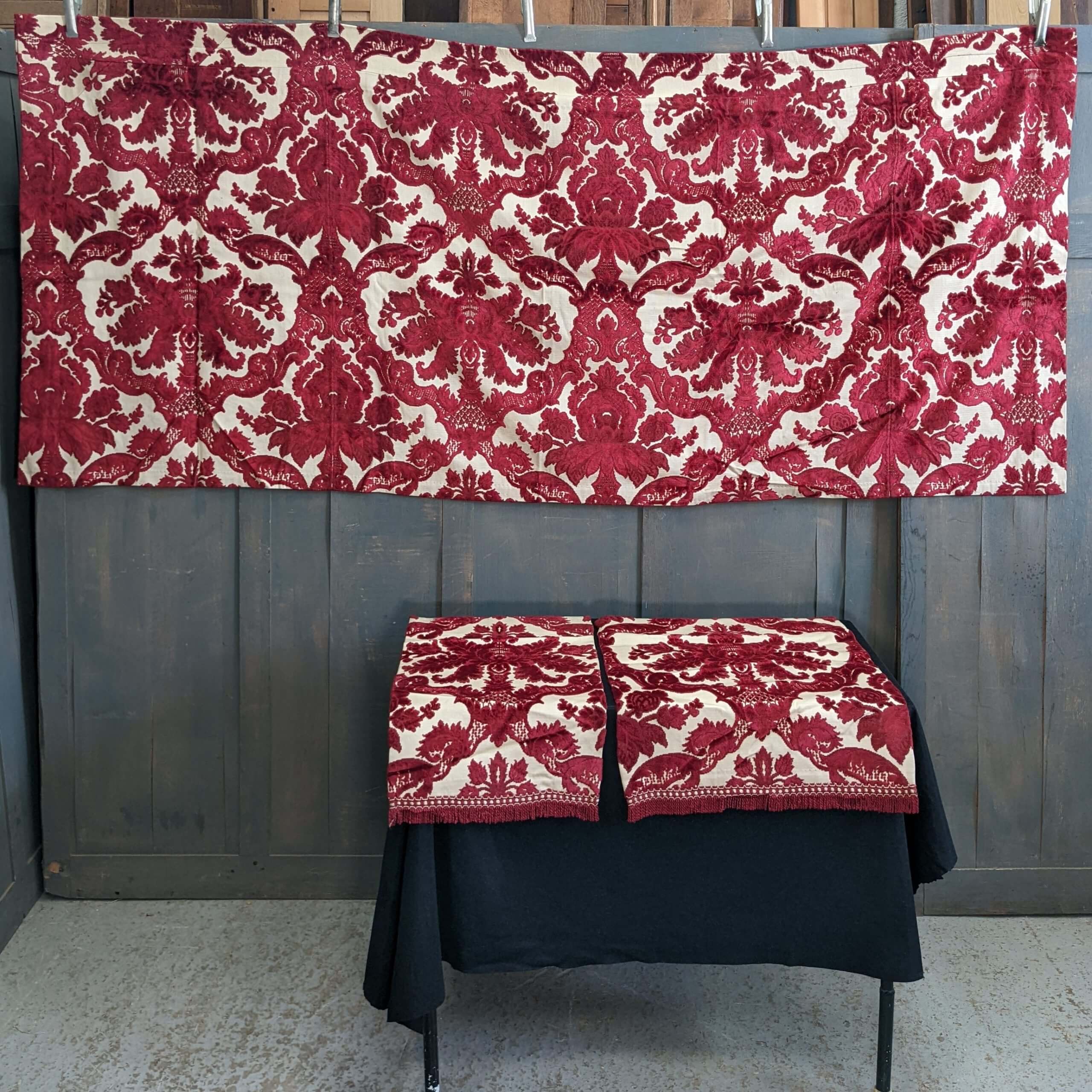Our product shown on this page Raspberry Cream Felt Brocade Altar Frontal with Matching Lectern Falls (SOLD) is currently available for hire.