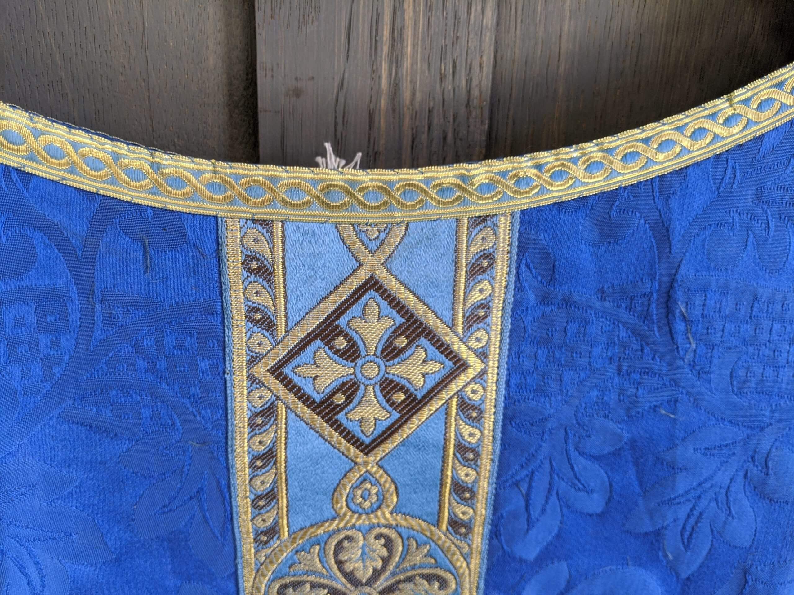 Our product shown on this page ‘Servers Tunic Royal Blue’ with Gold Detail is currently available for hire.