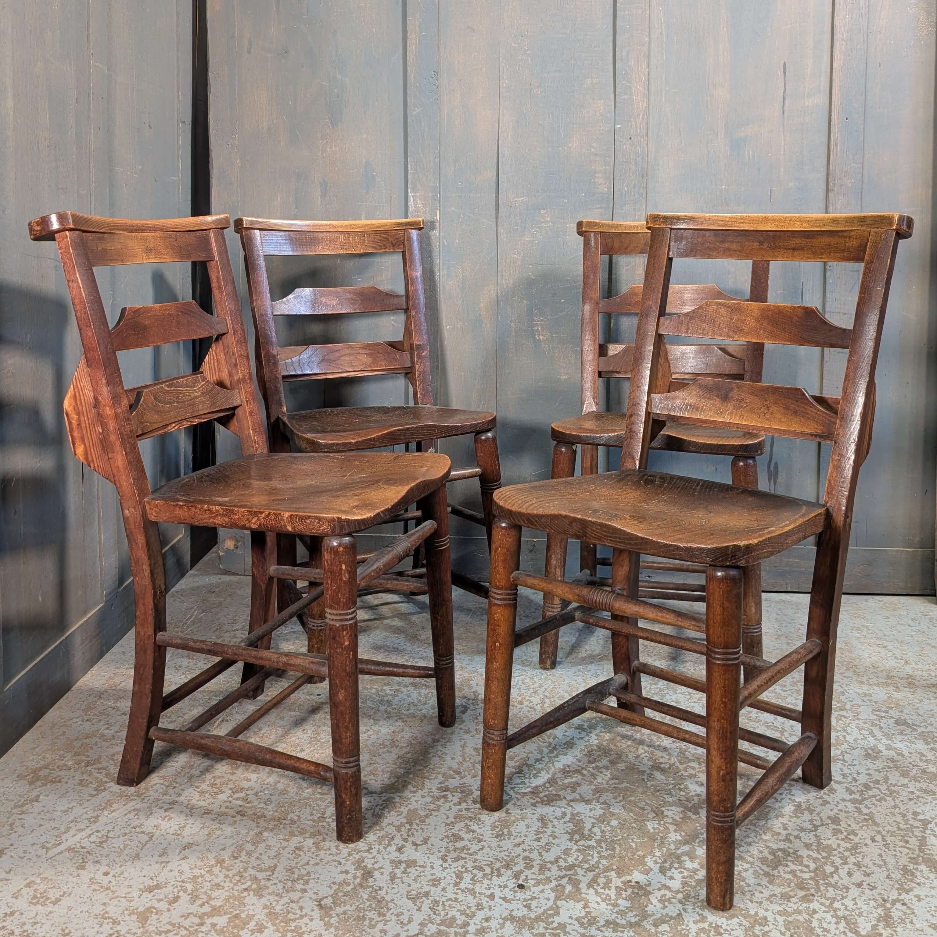 Our product shown on this page Set of 4 1910’s Antique Medium Dark Elm & Beech Ladderback Church Chapel Chairs from St Paul’s Daybrook is currently available for hire.