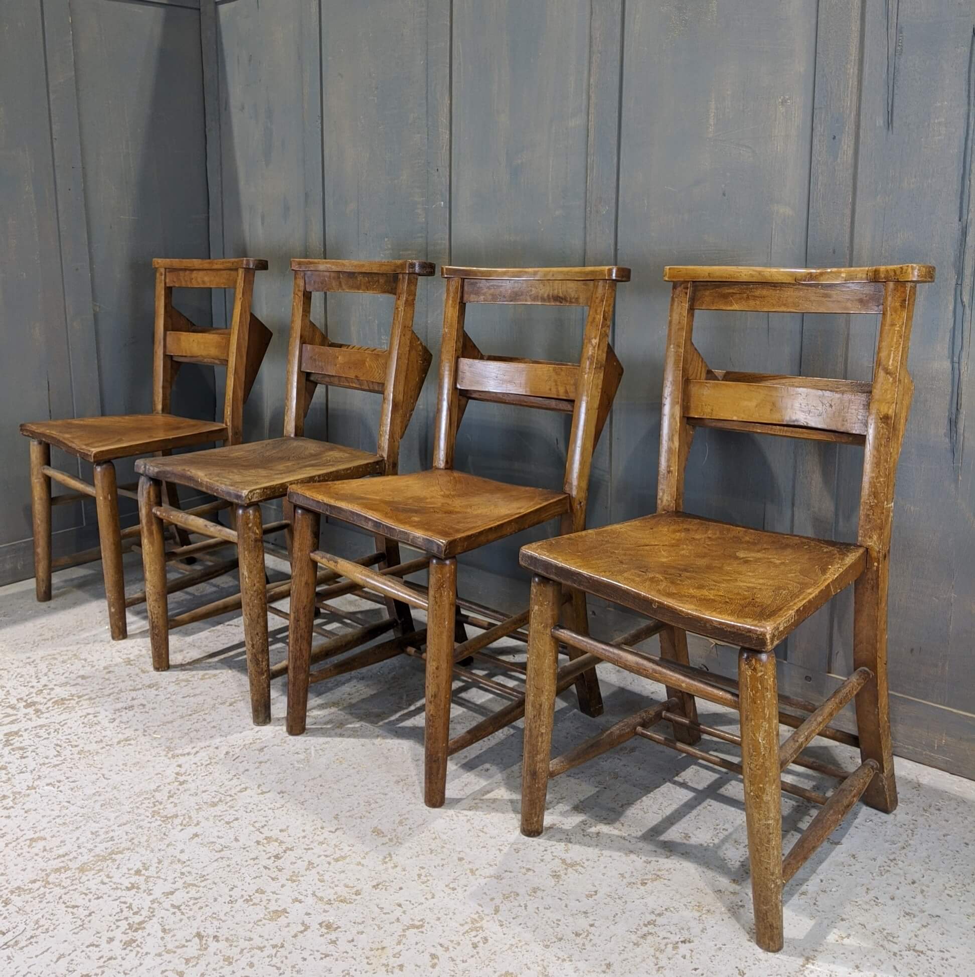 Our product shown on this page Set of 4 Antique Torquay Elm & Beech Church Chapel Chairs ‘T’ (SOLD) is currently available for hire.