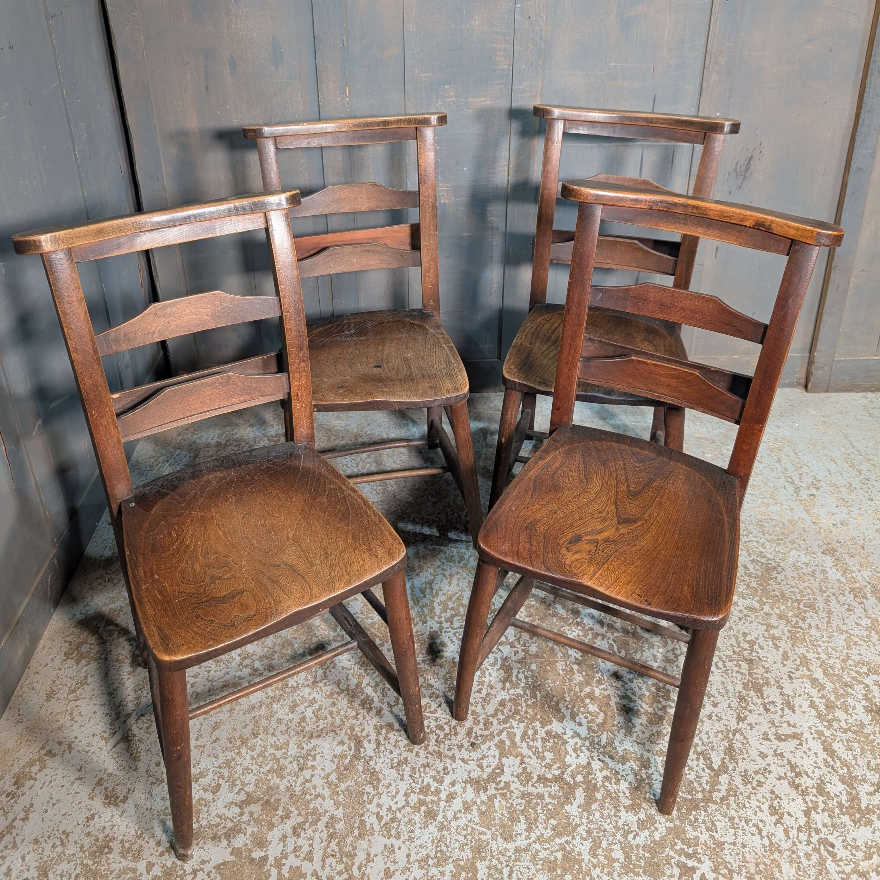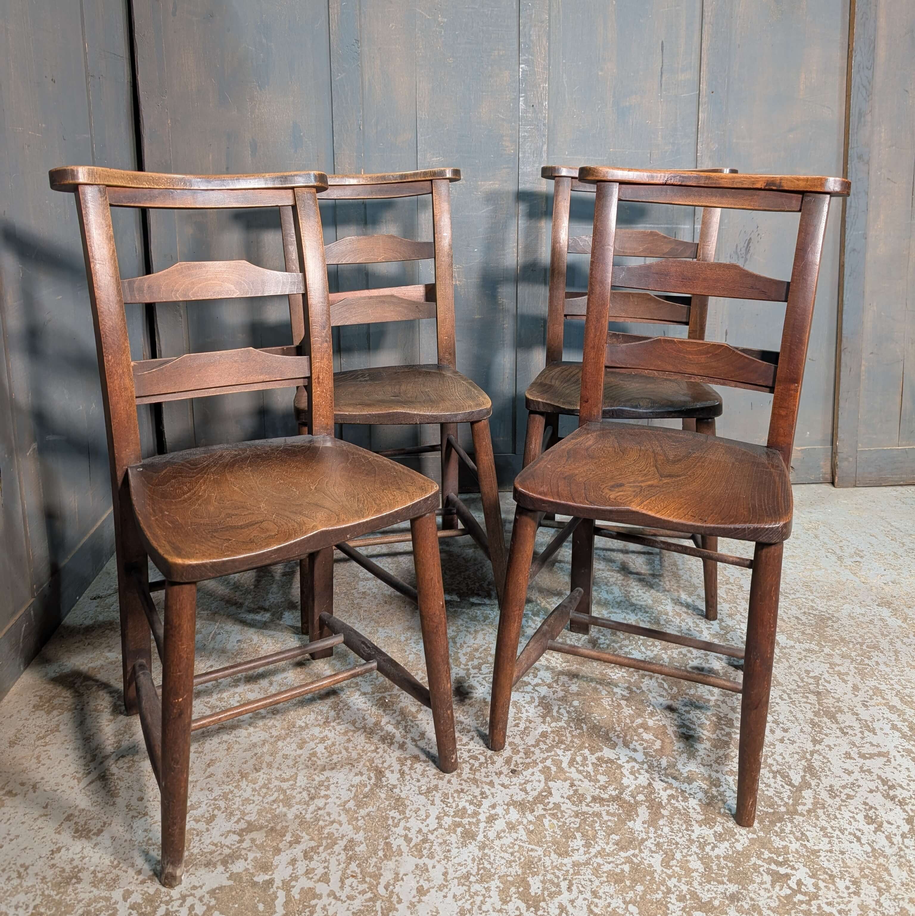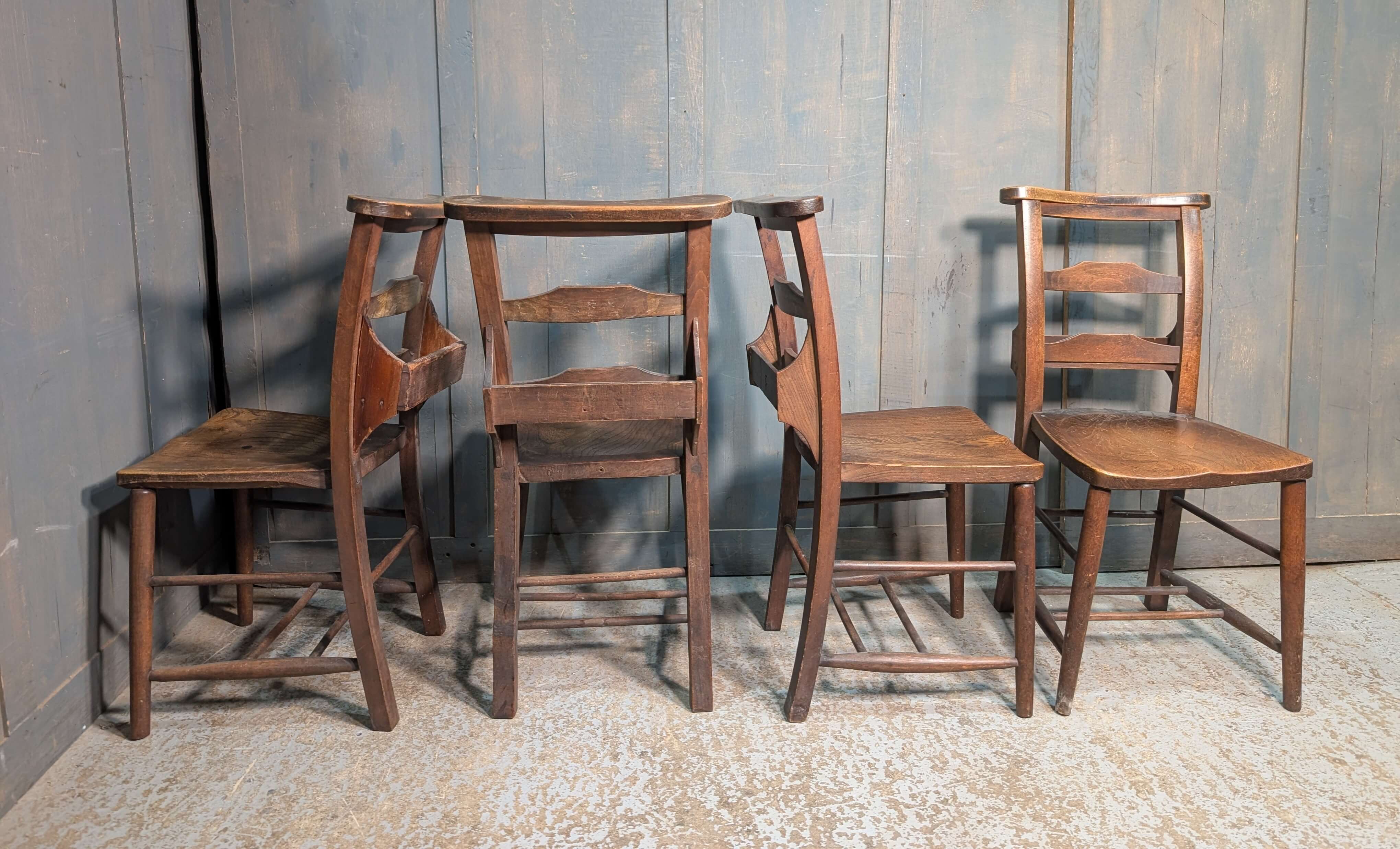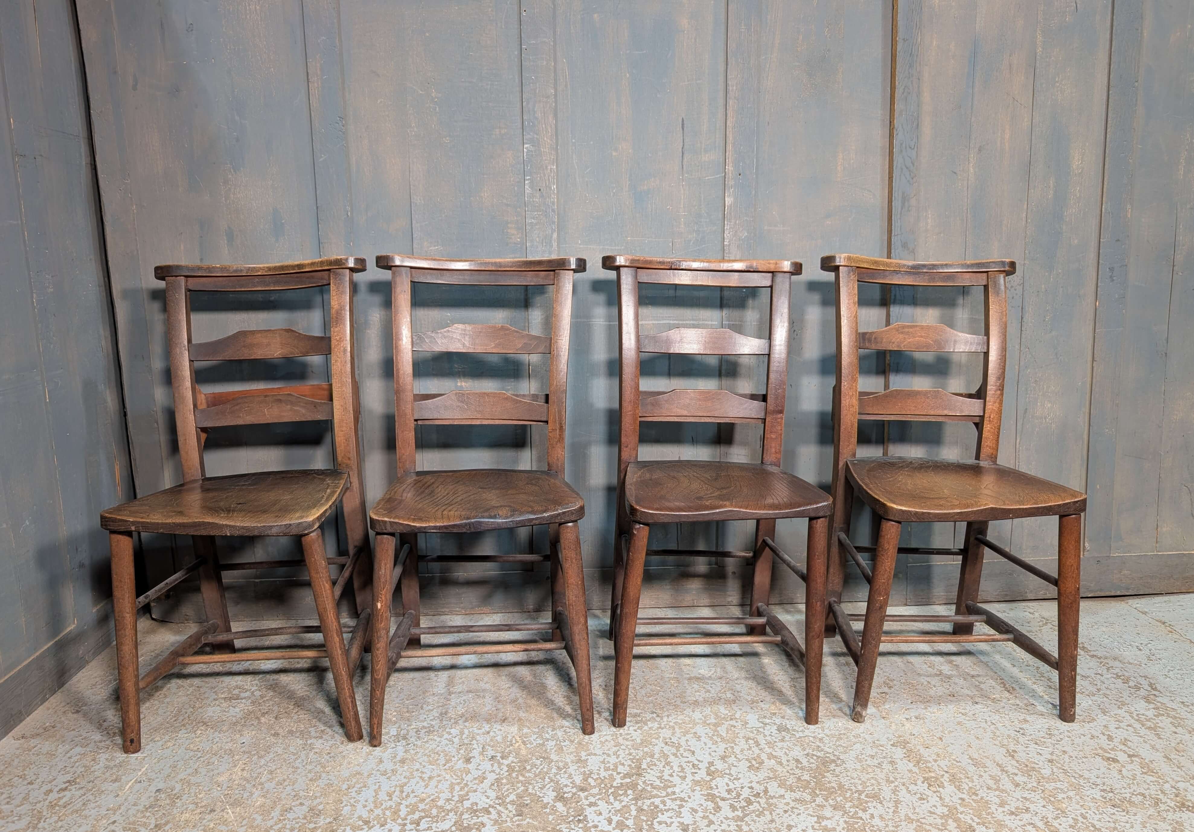 Our product shown on this page Set of 4 Beautiful Colour Antique Double Pilgrim Ladder Back Church Chapel Chairs from St Columbas Bradford (SOLD) is currently available for hire.
