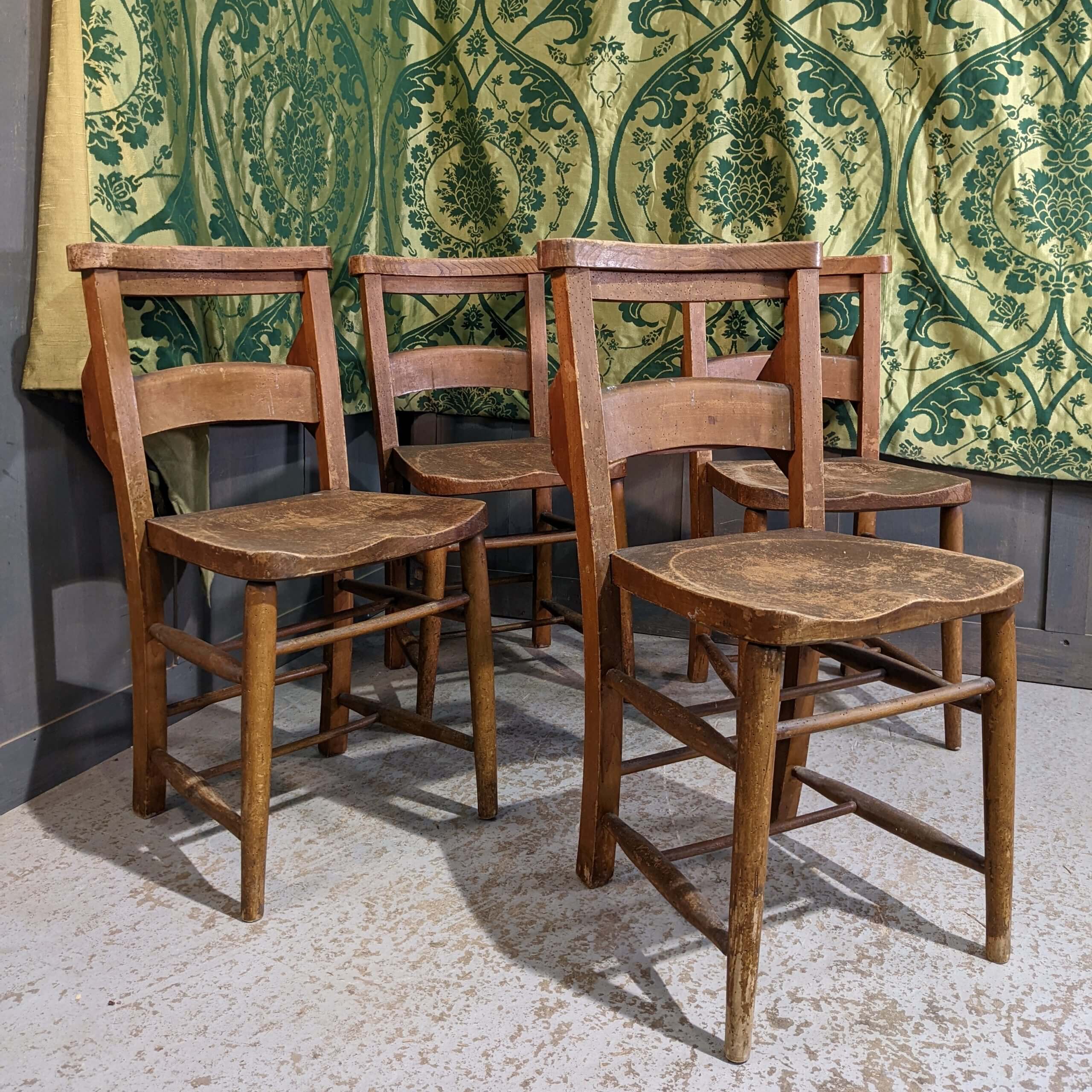 Set of 4 North Wales Distressed Character Driven Antique Church Chapel Chairs (SOLD)