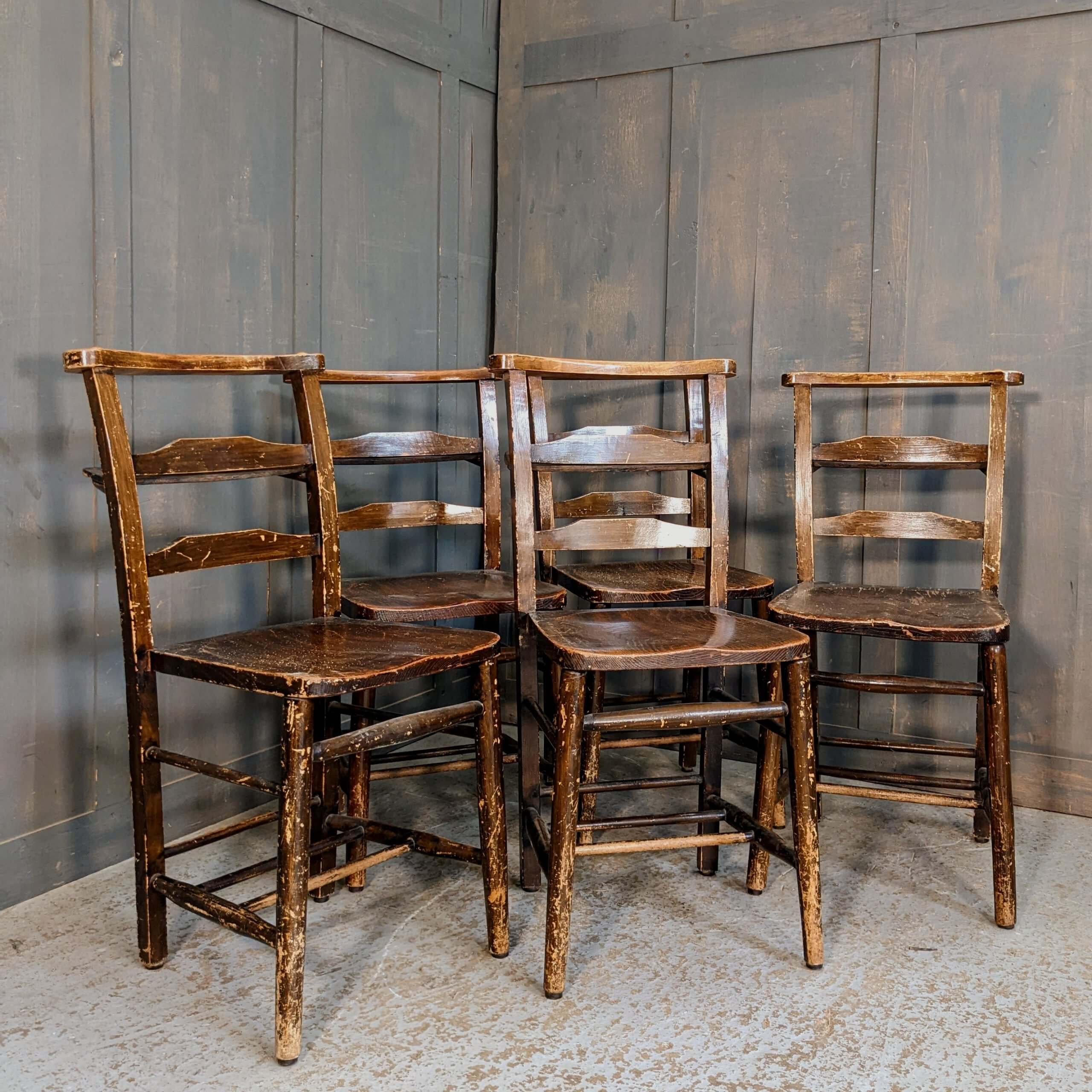 Our product shown on this page Set of 5 Double Pilgrim Ladderback Distressed Finish Church Chapel Chairs (SOLD) is currently available for hire.