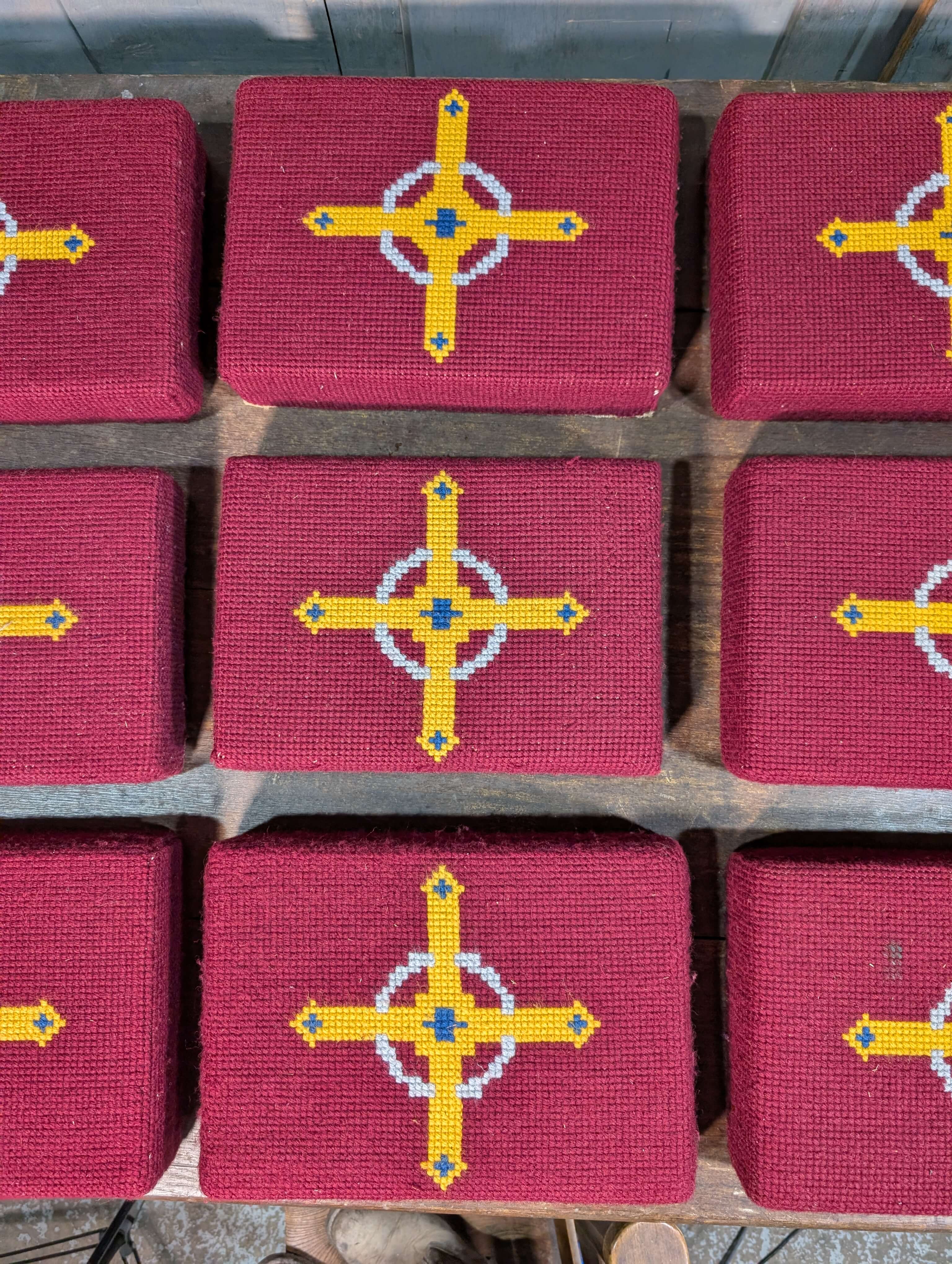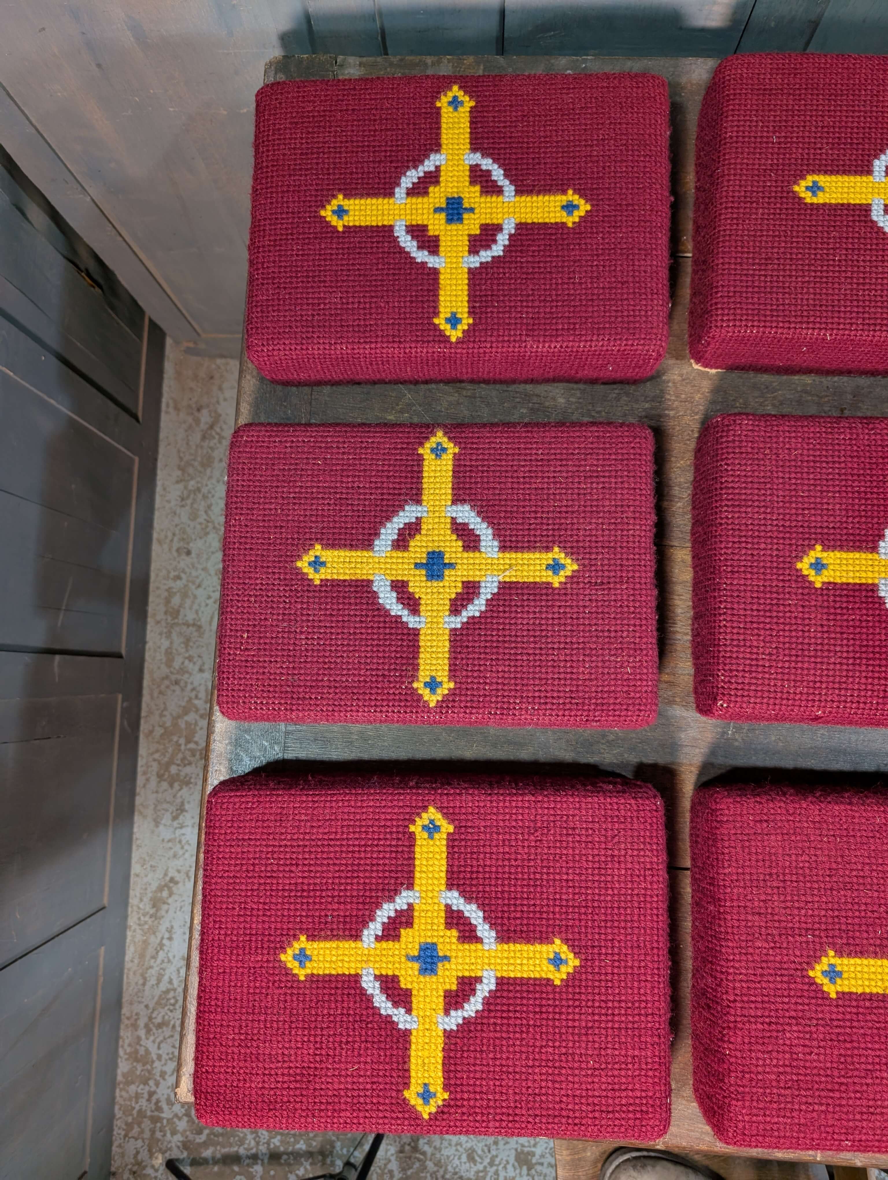 Our product shown on this page Gold Cross on Burgundy Church Hassocks Kneelers Cushions is currently available for hire.