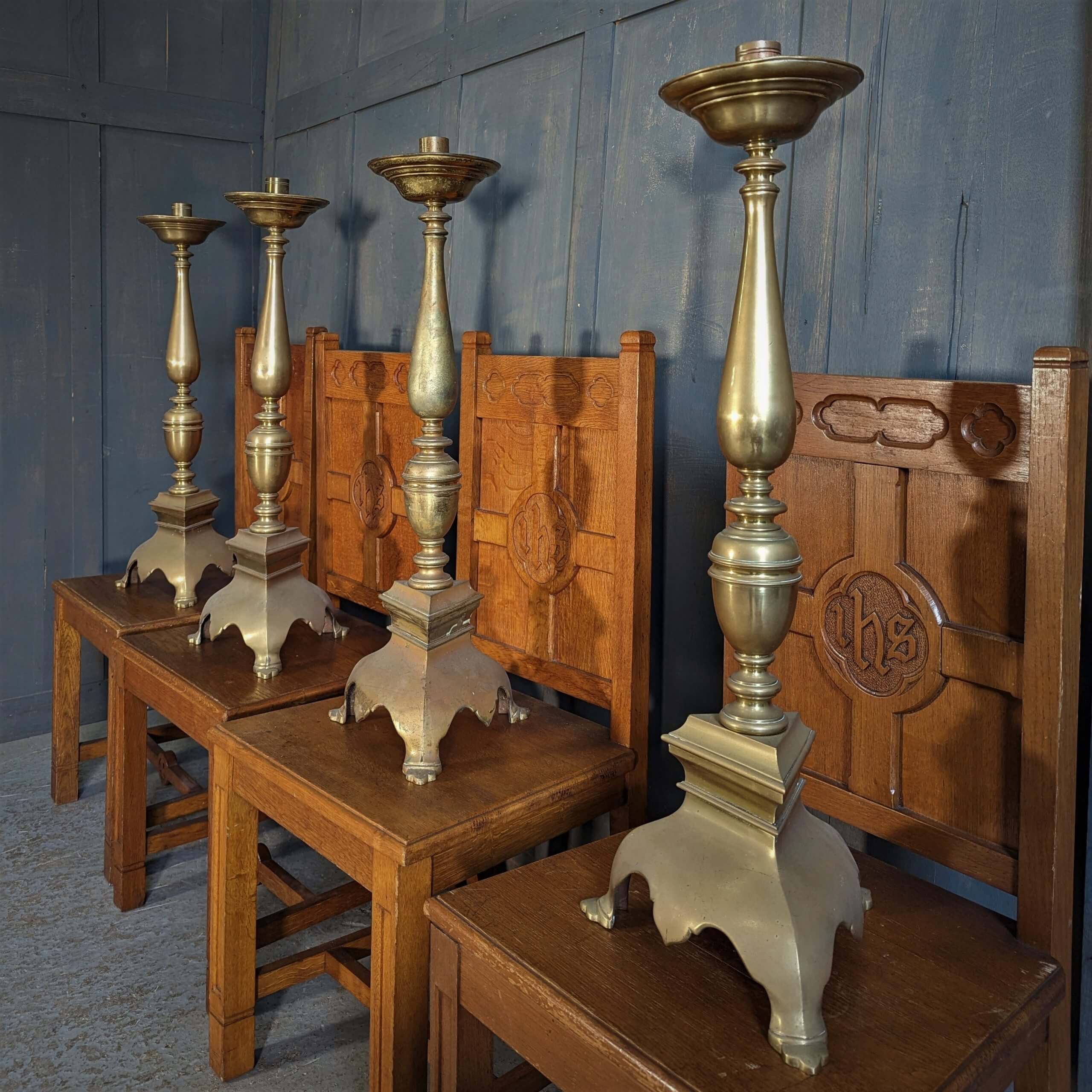 Our product shown on this page Set of Four Large Heavy Weighted Vintage Brass Altar Candlesticks (SOLD) is currently available for hire.