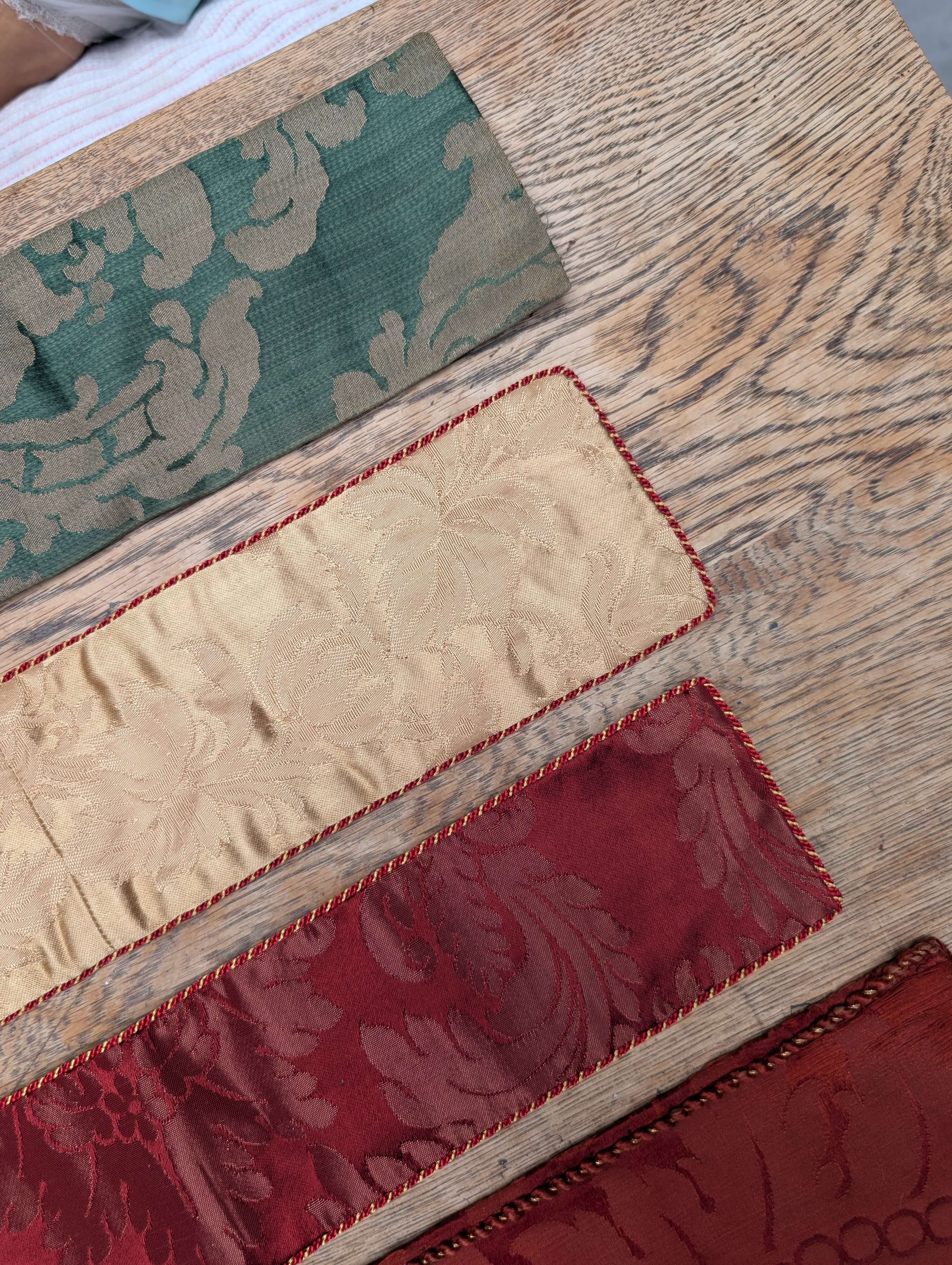 Our product shown on this page Seven Assorted Vintage Silk Apparells for Amices is currently available for hire.