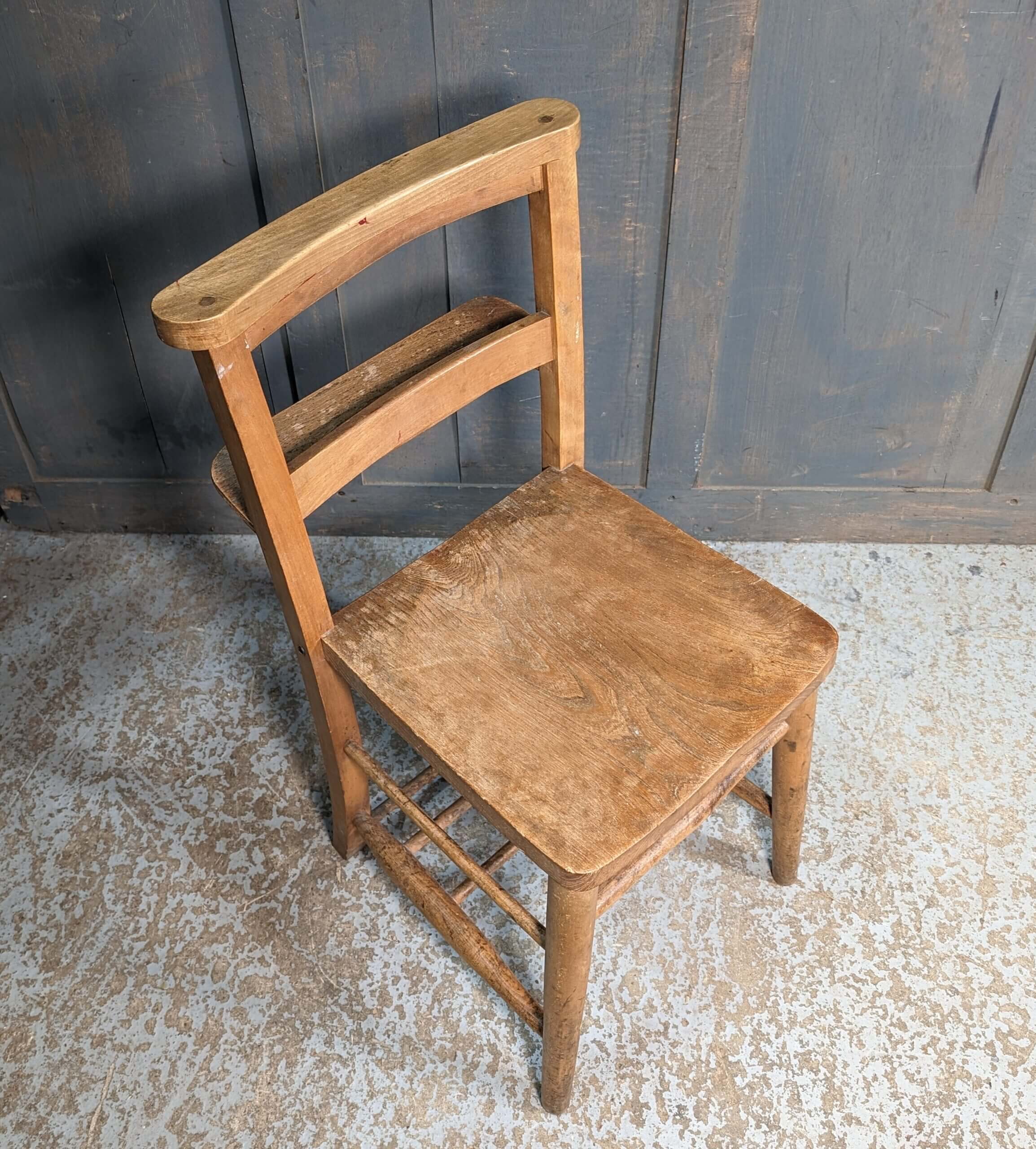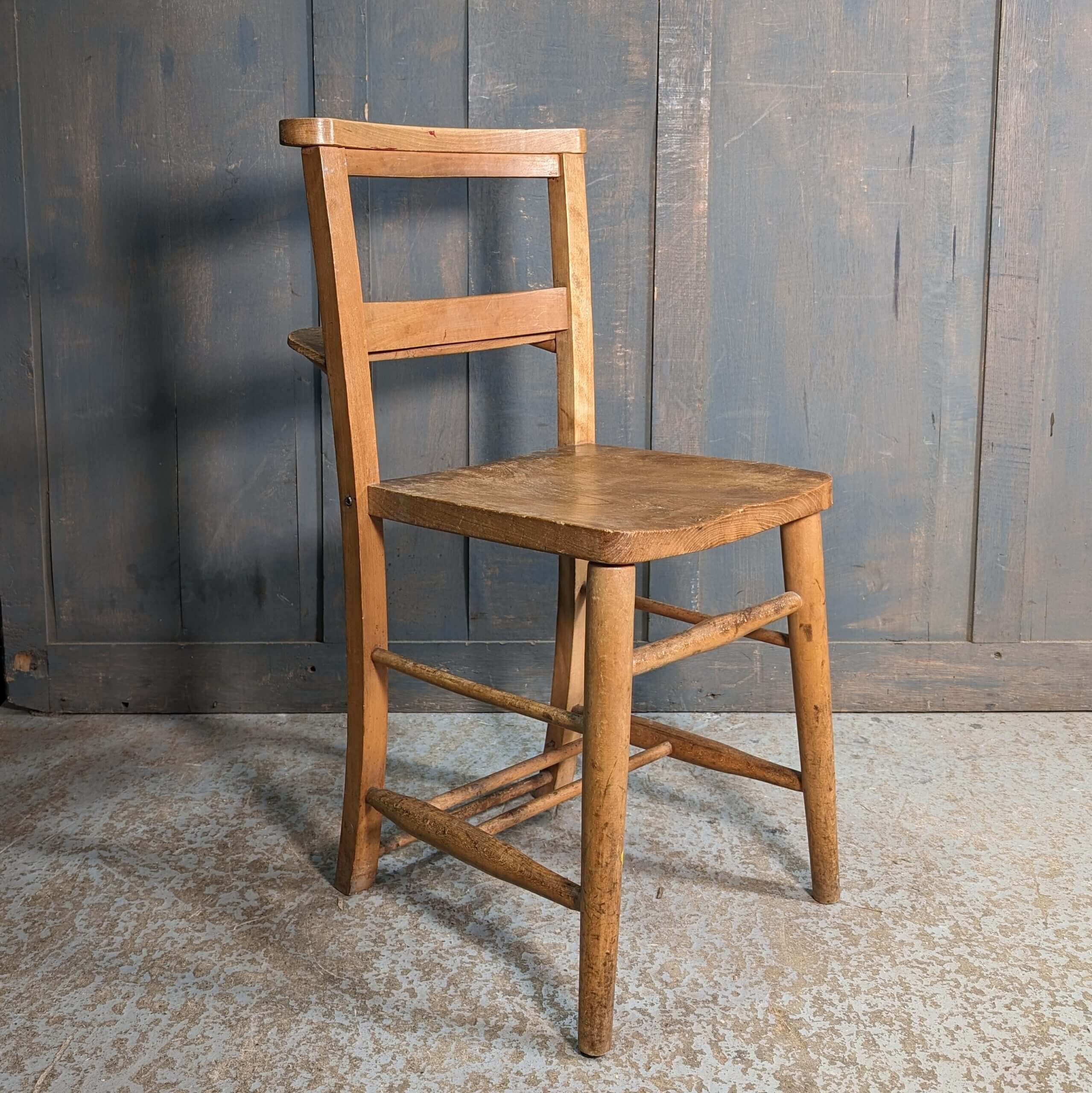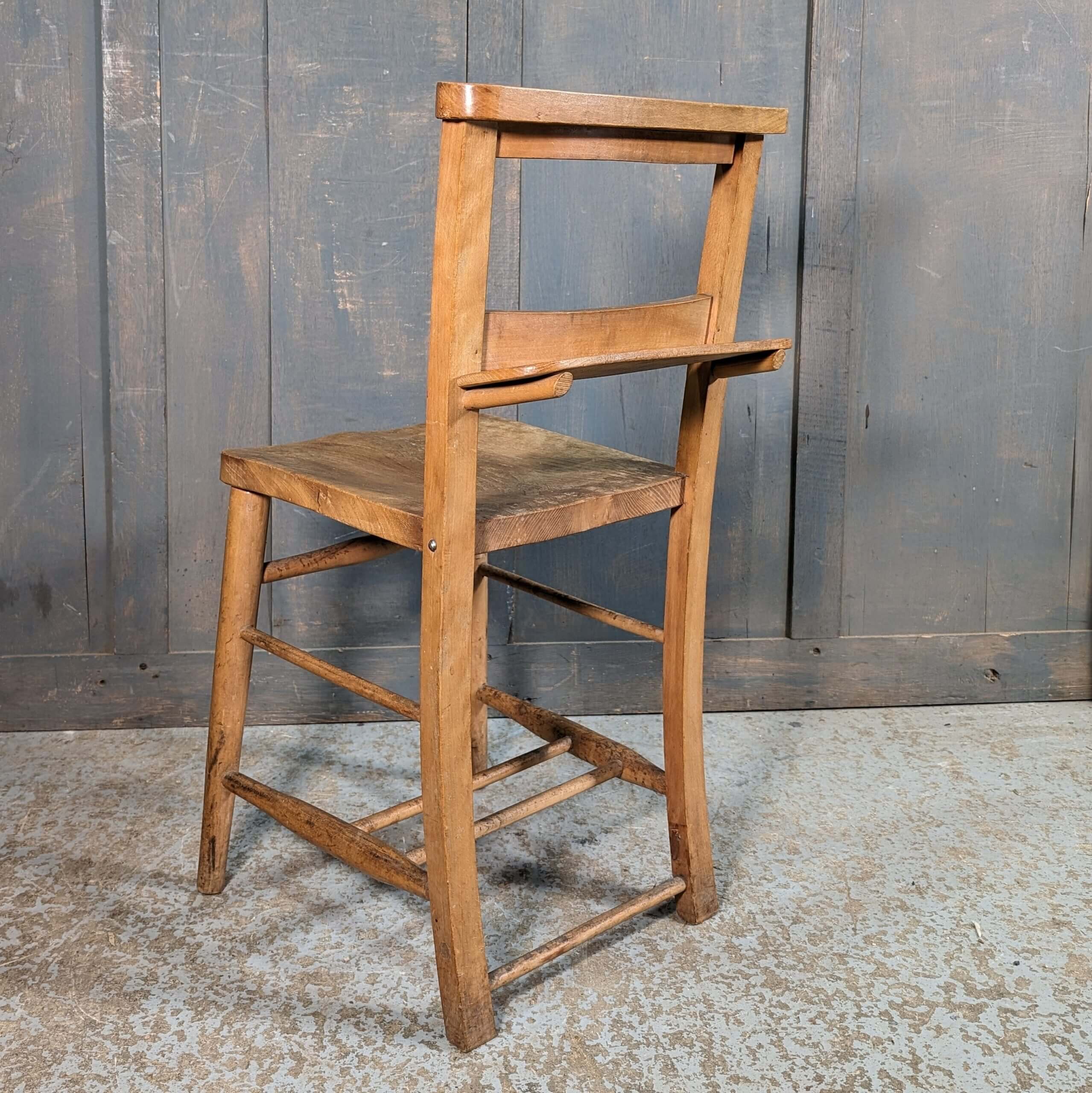Our product shown on this page Simple ‘Bible Shelf’ Post-War Elm & Beech Church Chapel Chairs is currently available for hire.